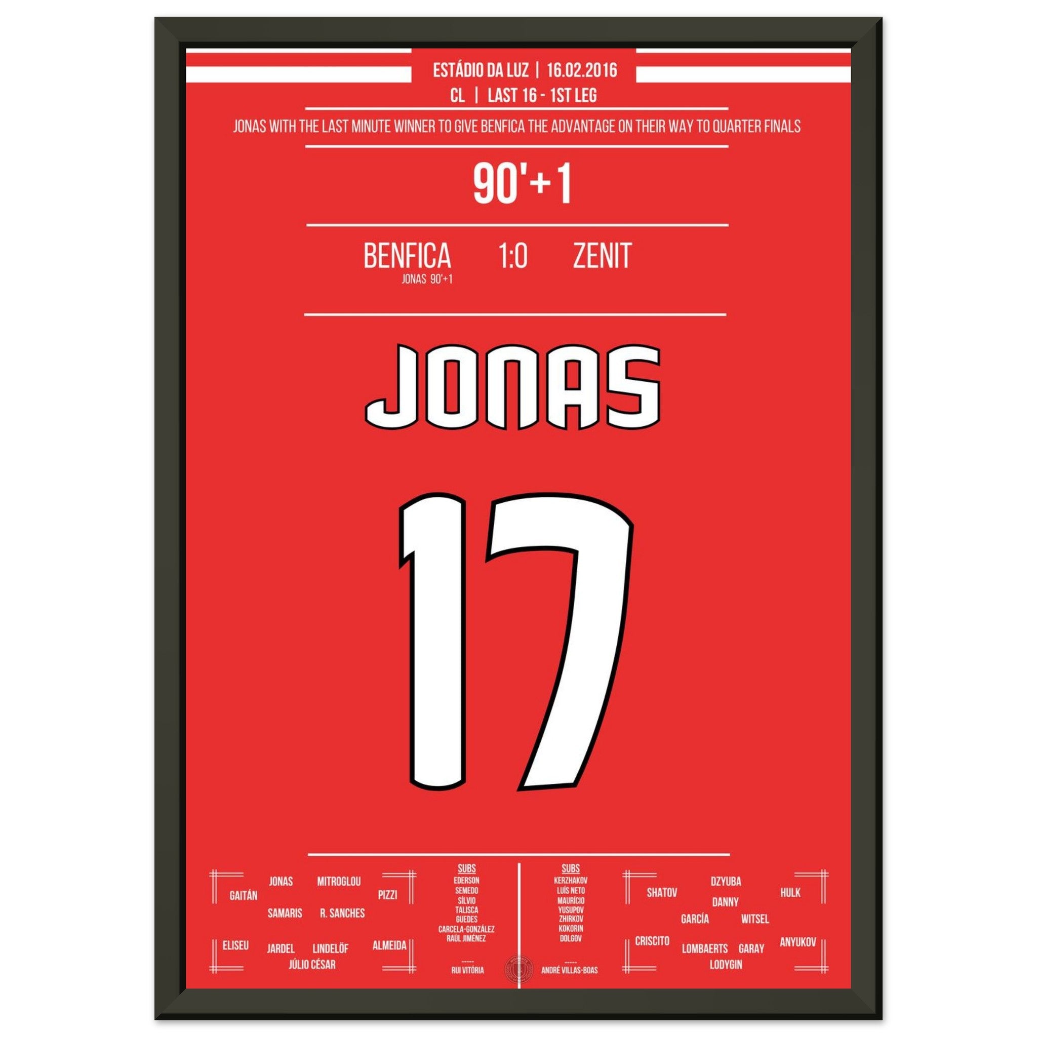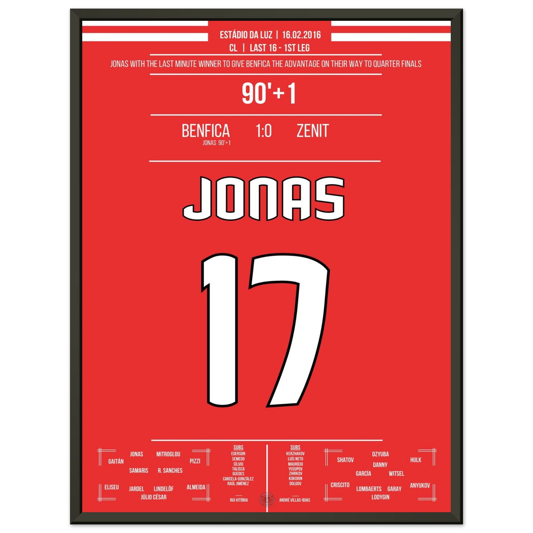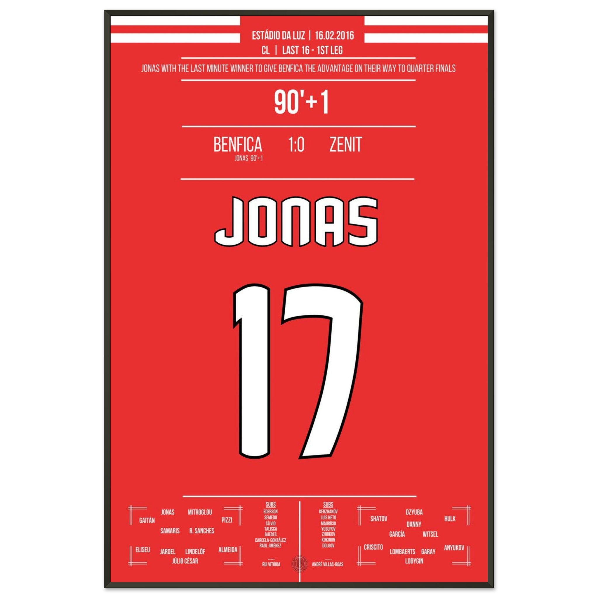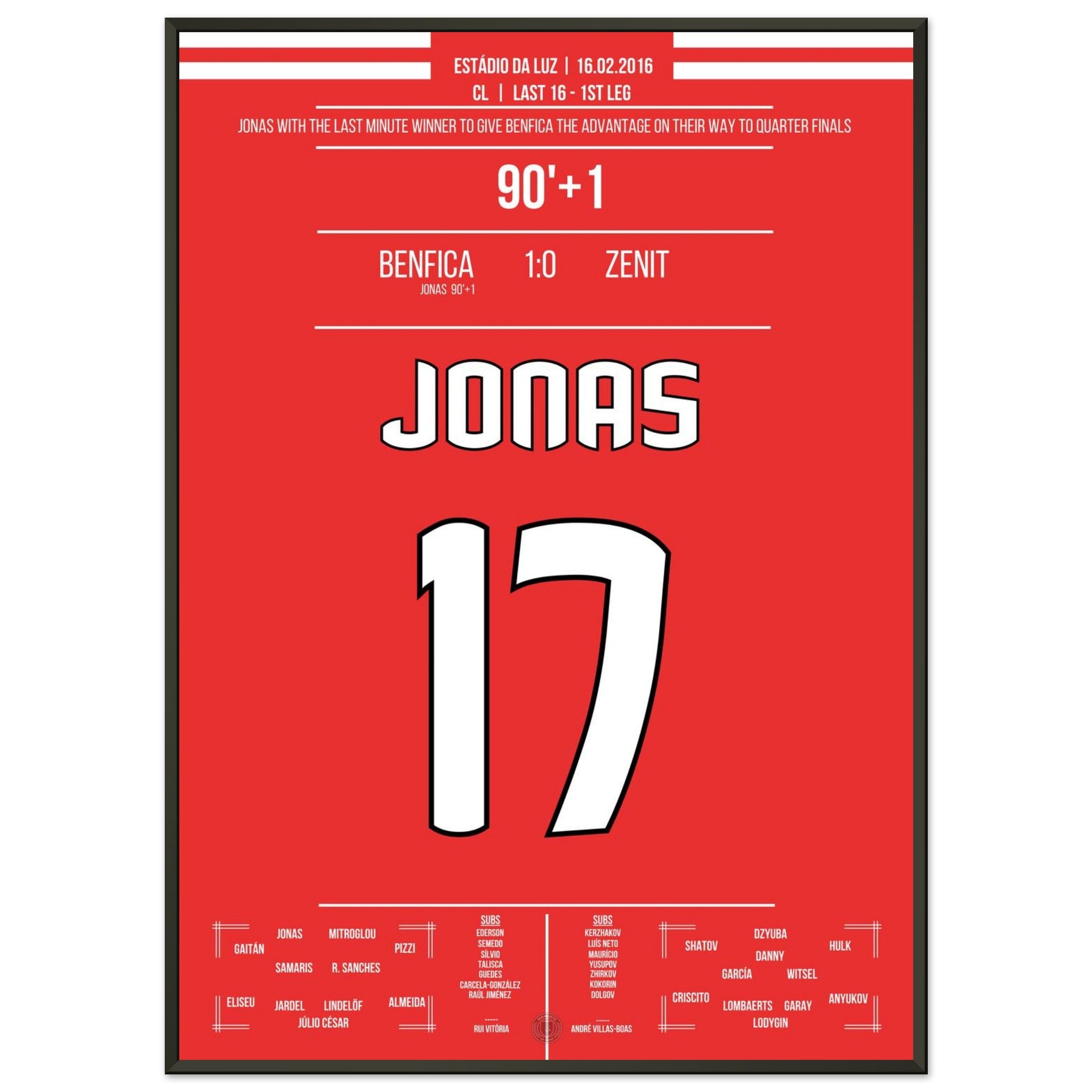 Jonas heads Benfica to victory in the Champions League first leg against Zenit.