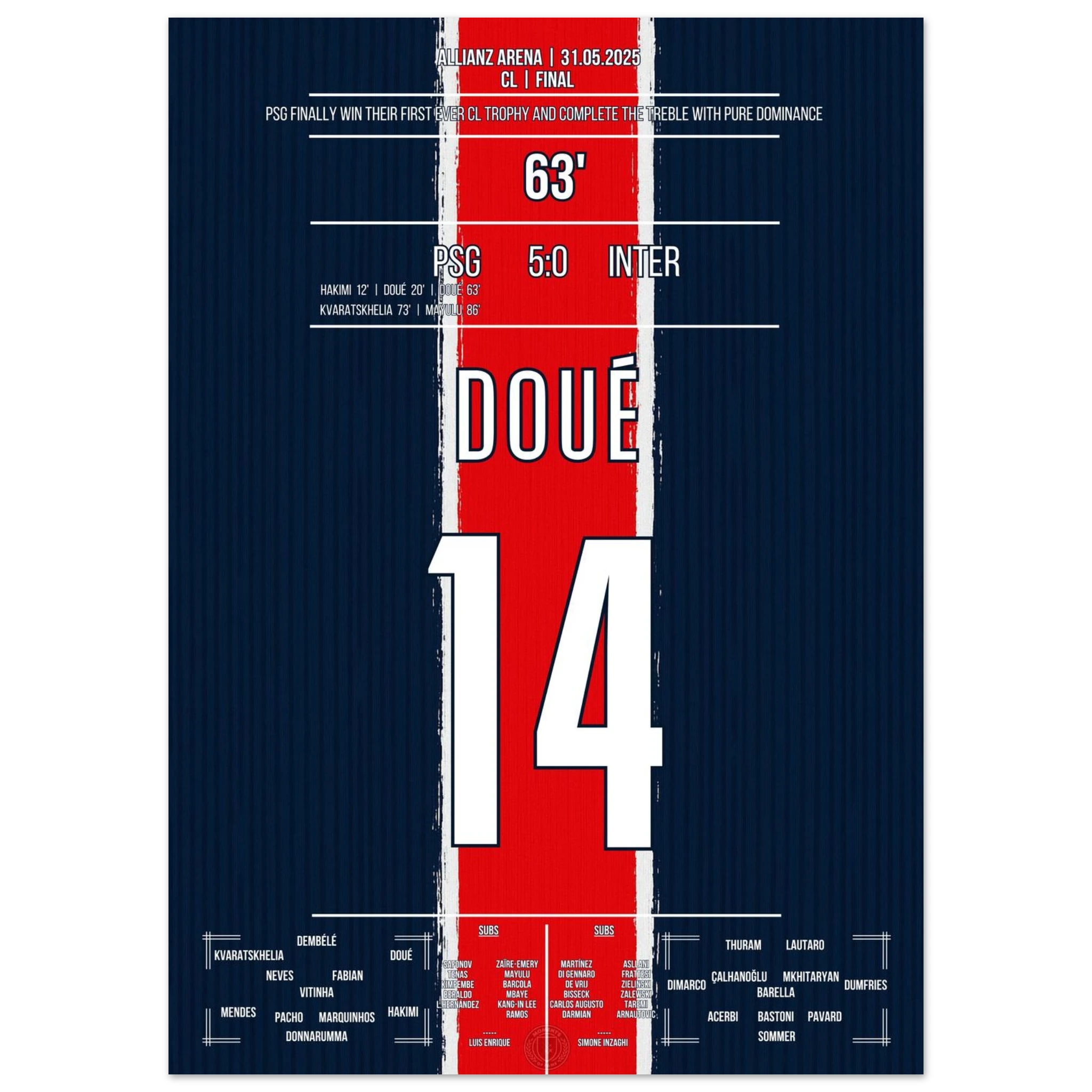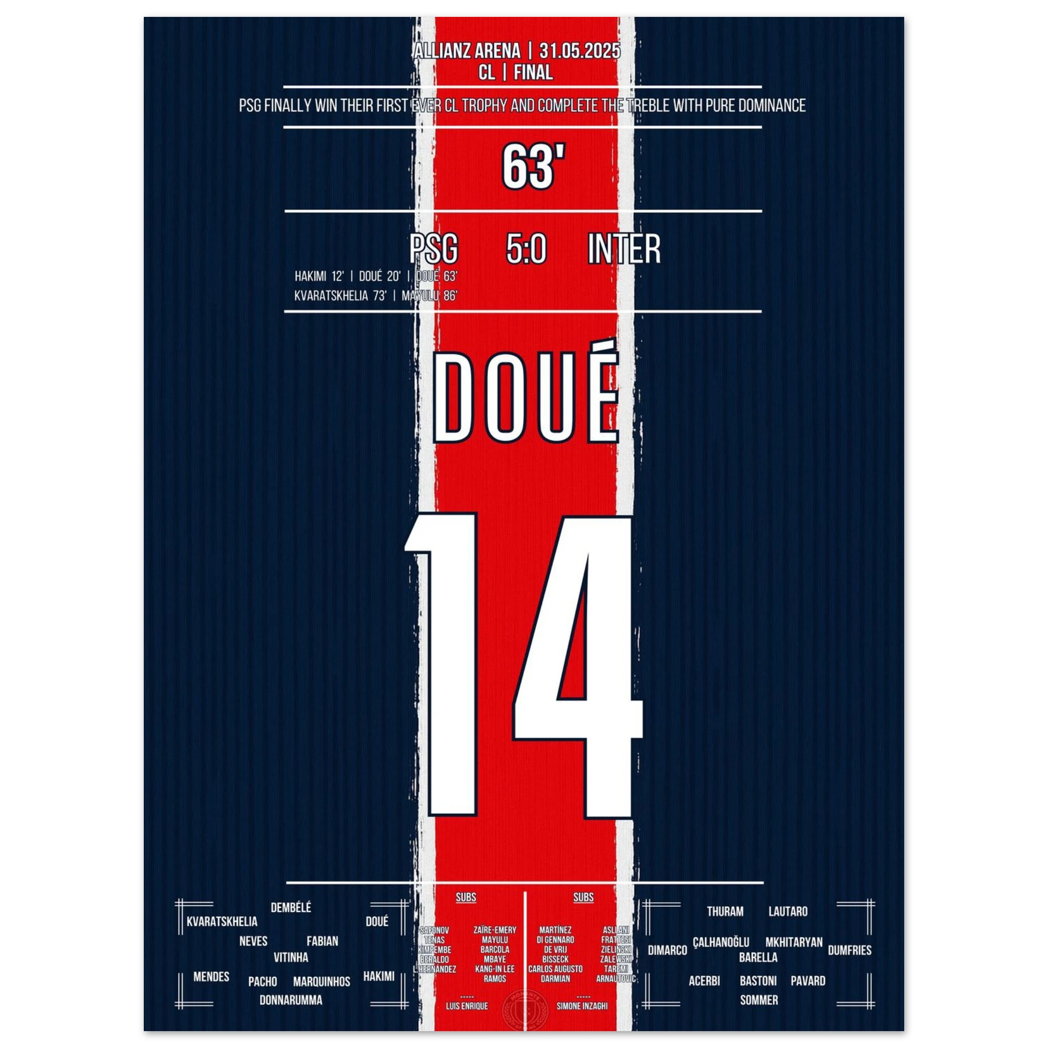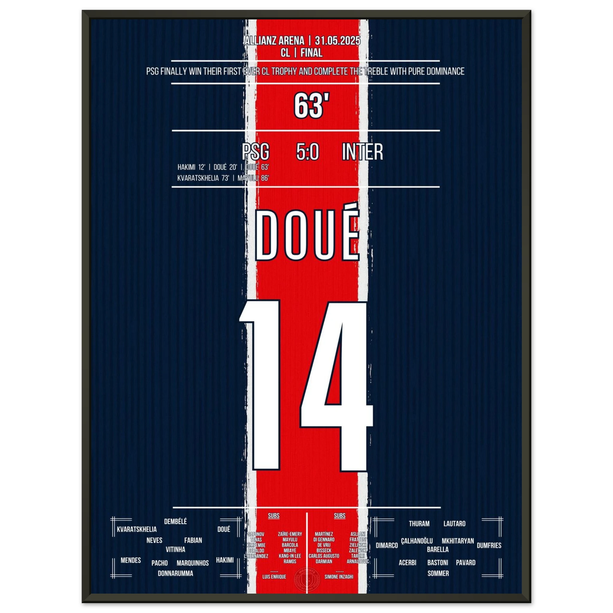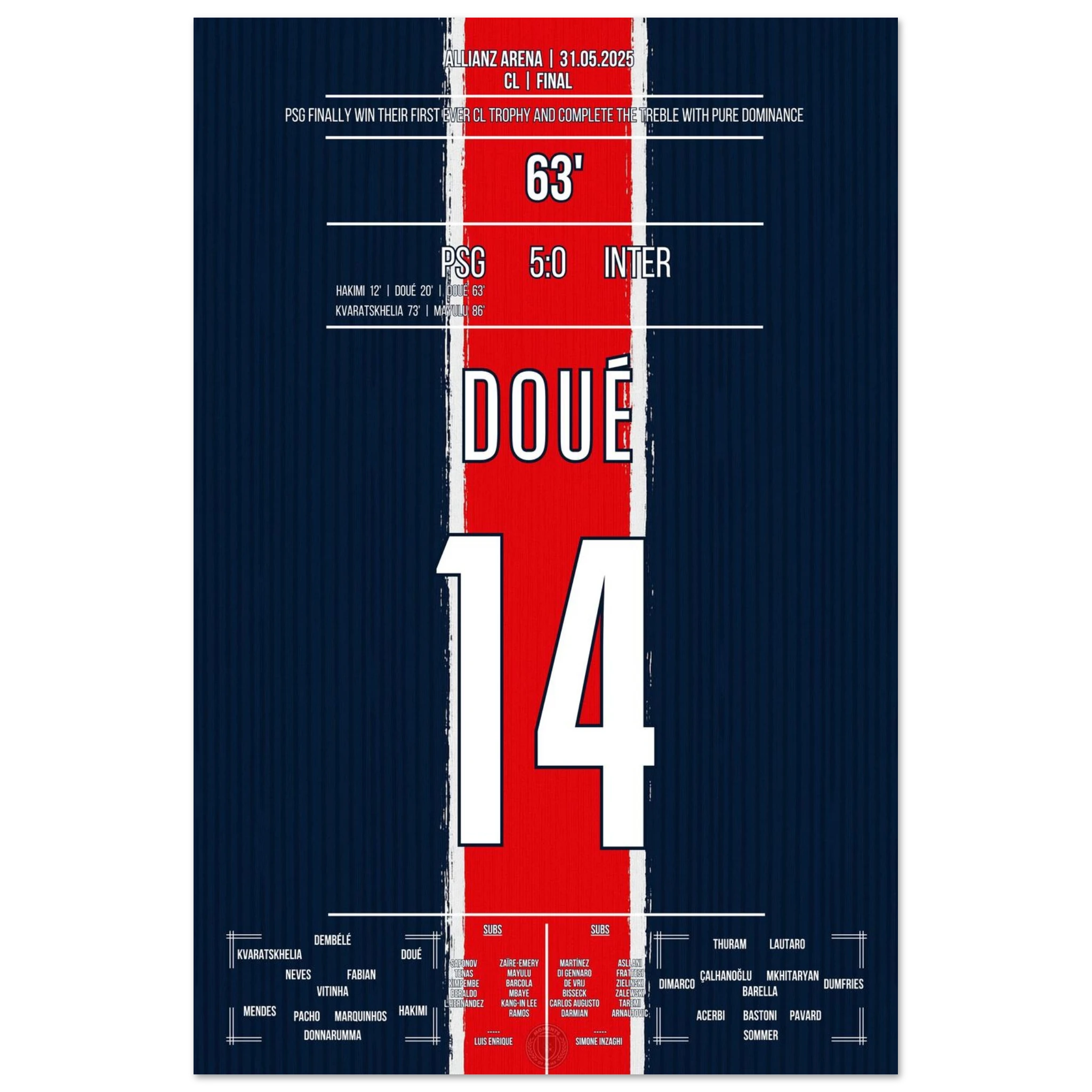 Vendor:MomentsOfFame<tc>Two goals for the ages: Doué gives Paris immortal glory in Munich! </tc>