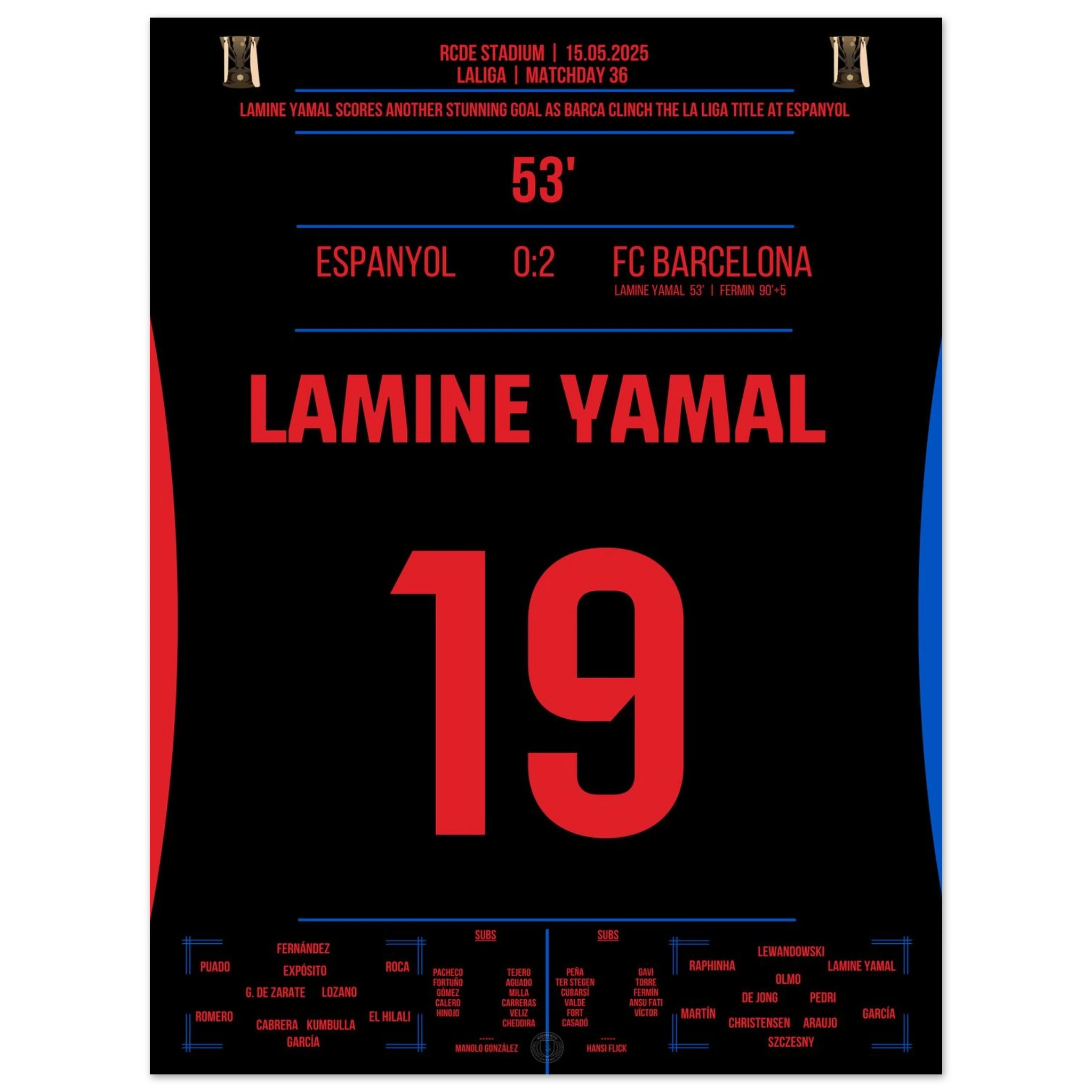 Lamine Yamal fires Barcelona to the championship in the derby at Espanyol.
