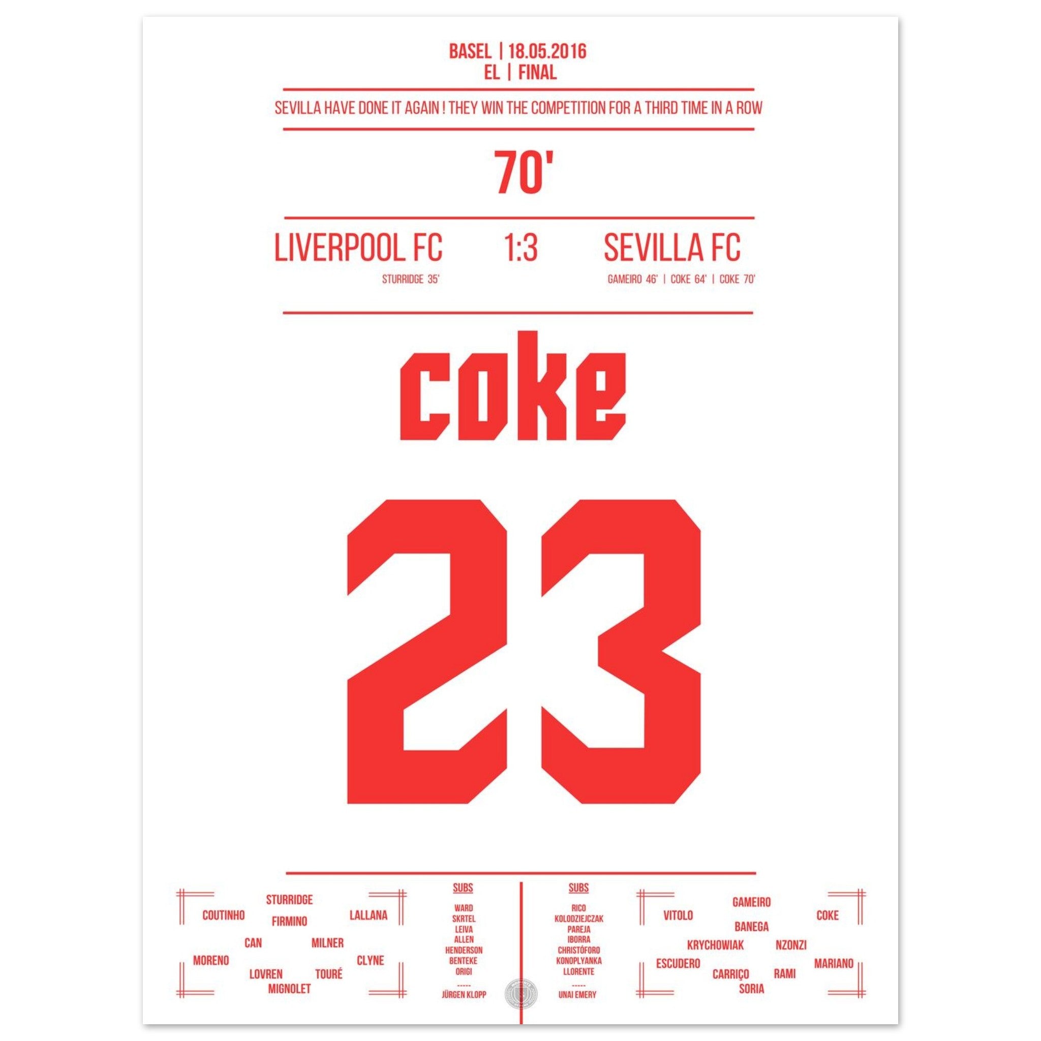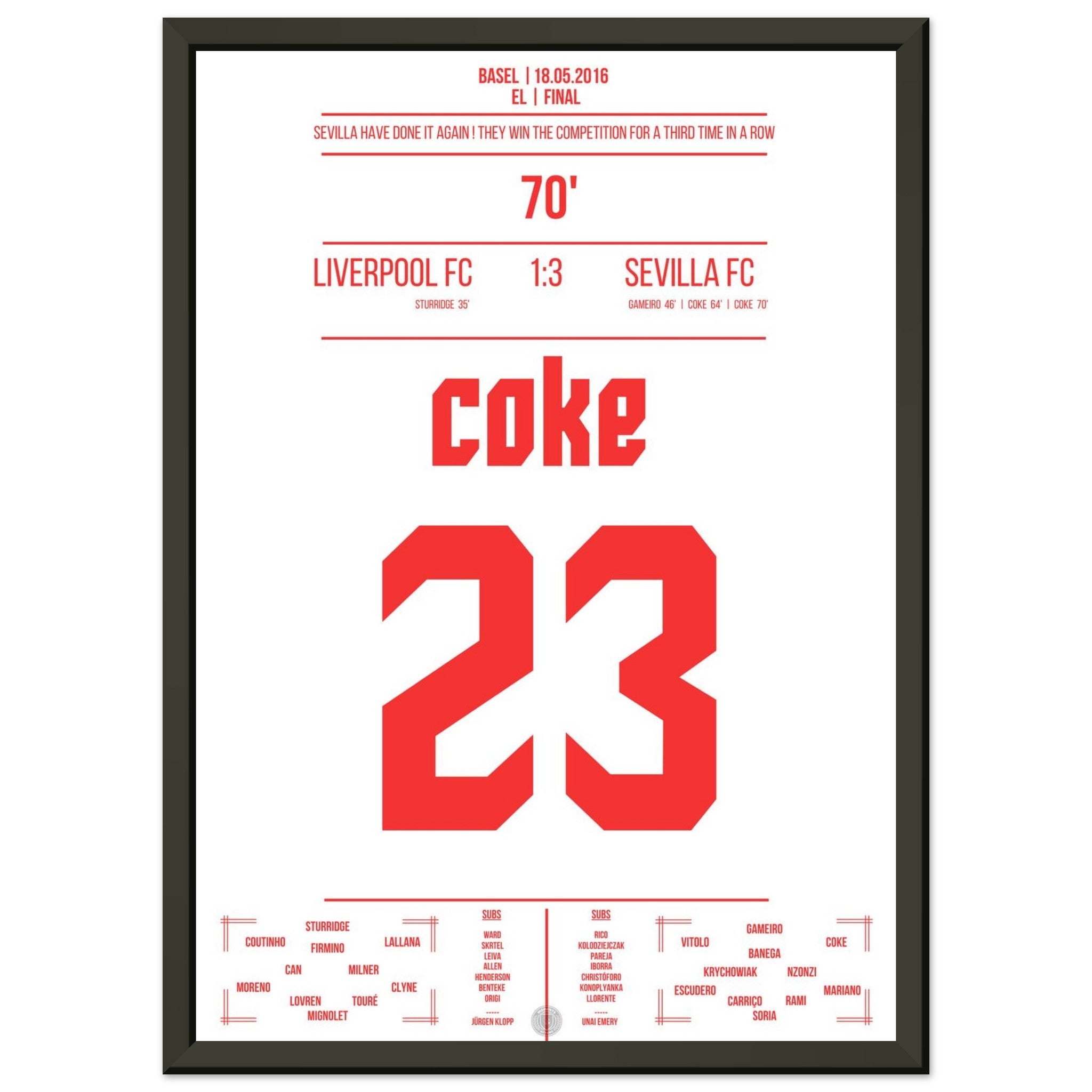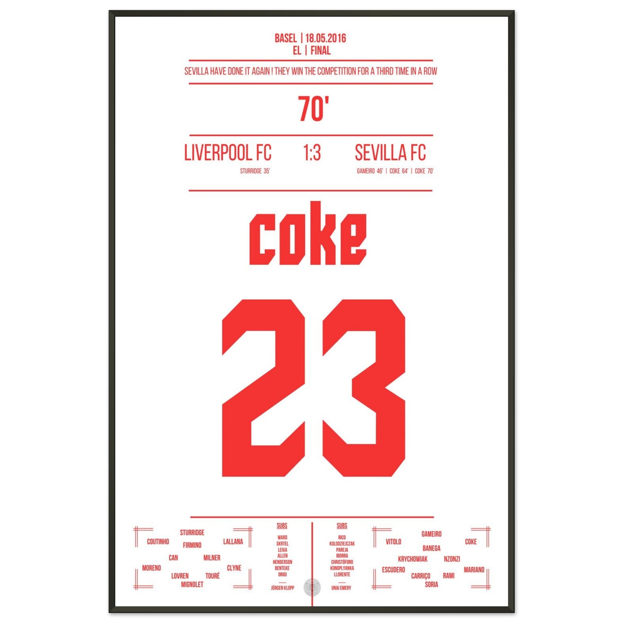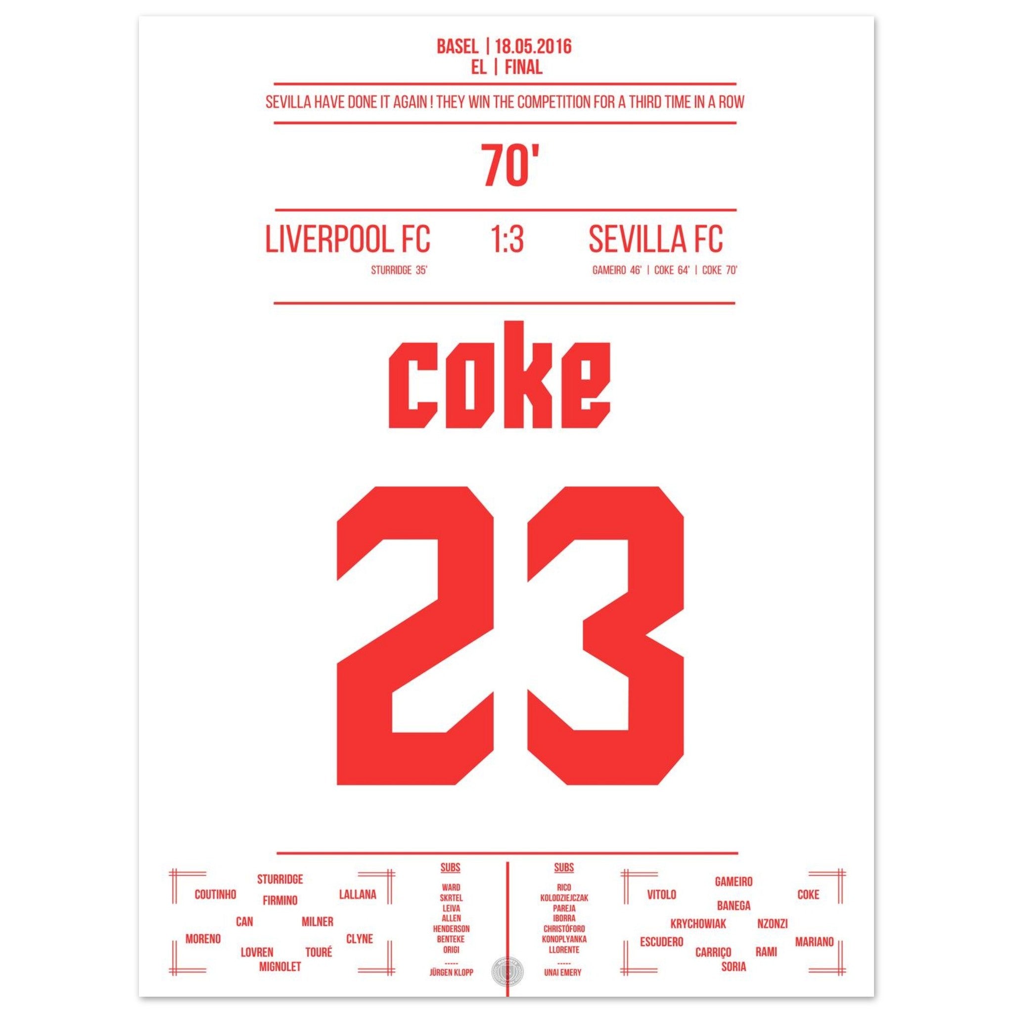 Sevilla wins the title for the third time in a row.