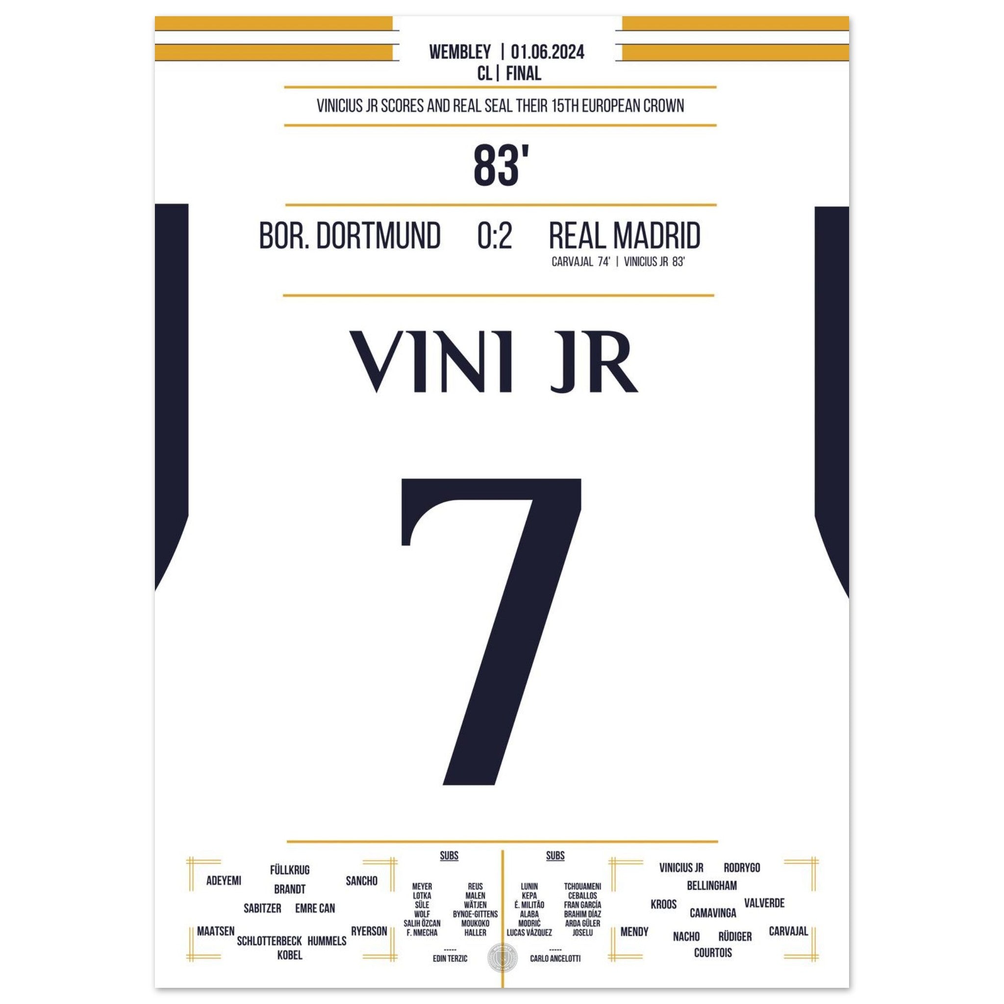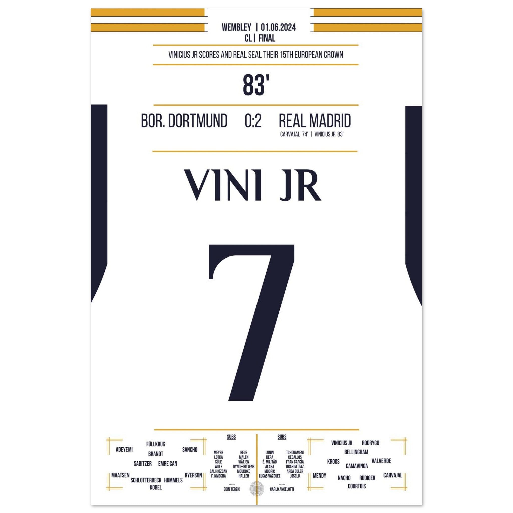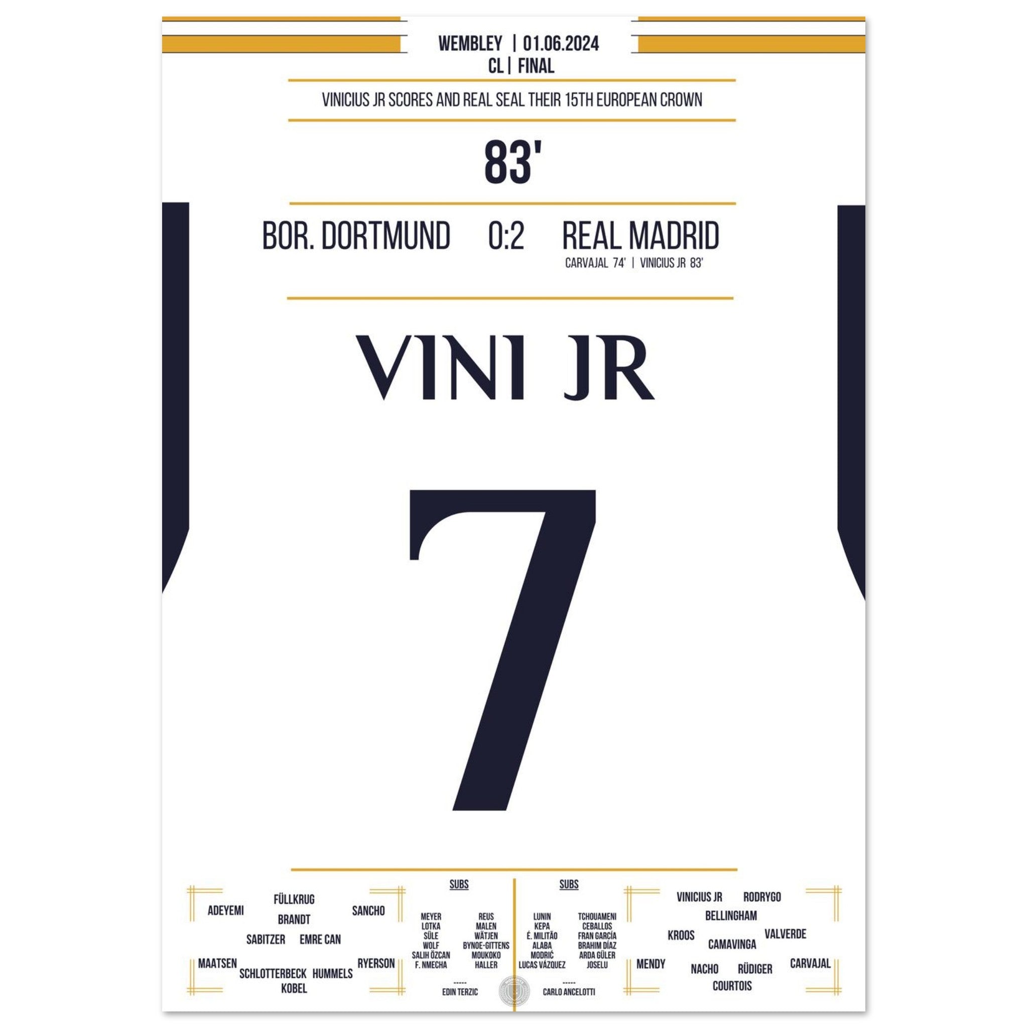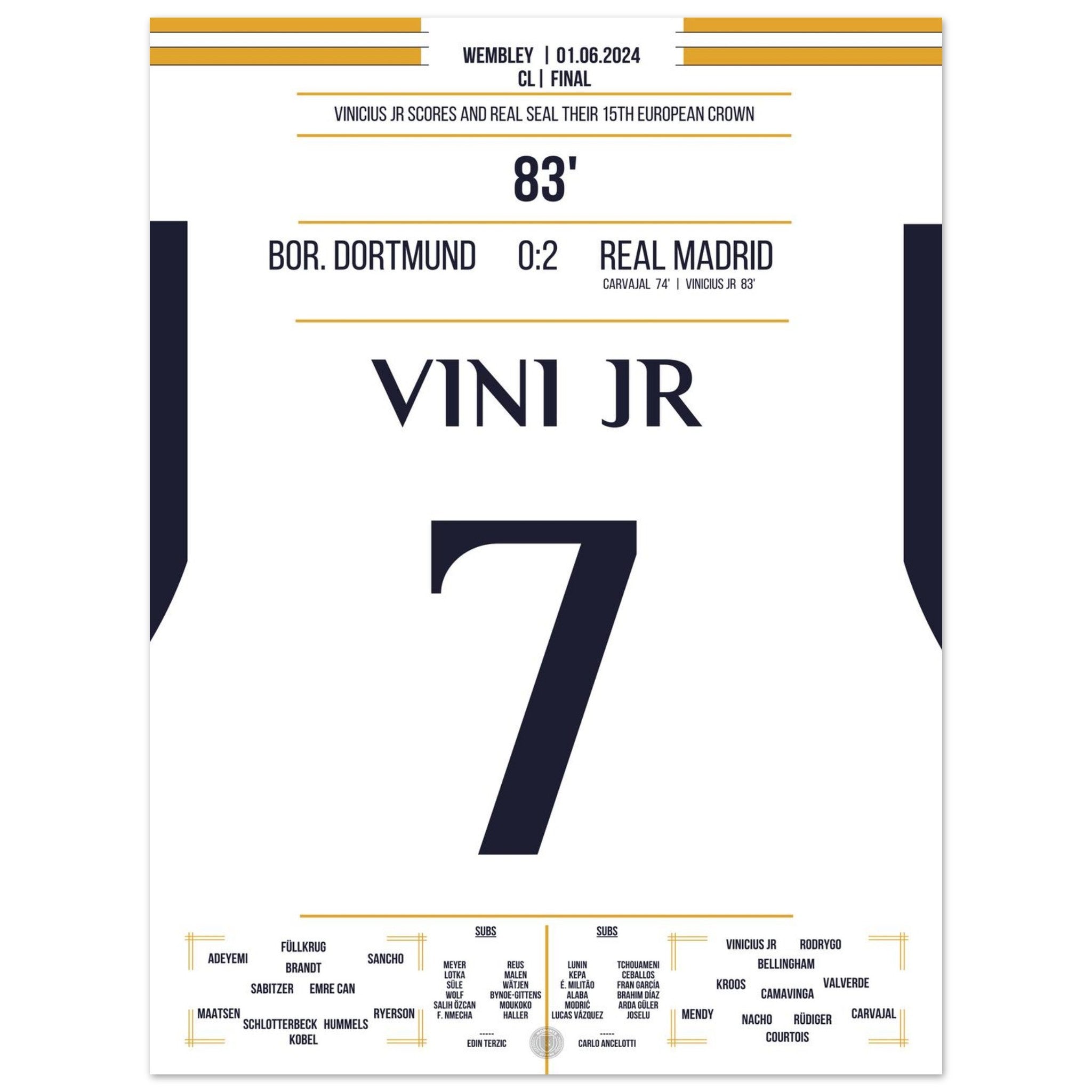 Vinicius Jr scores and Real secures the 15th CL title in the club's history.
