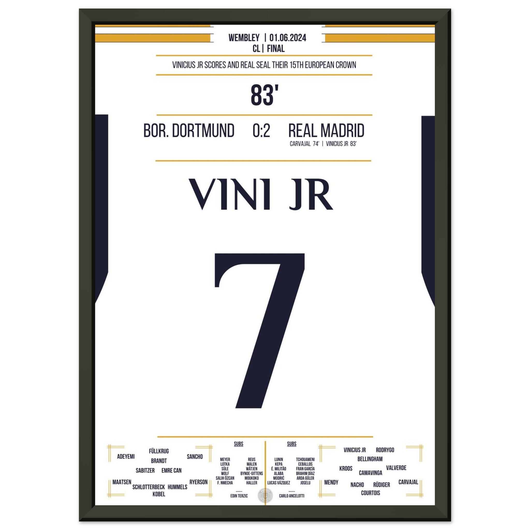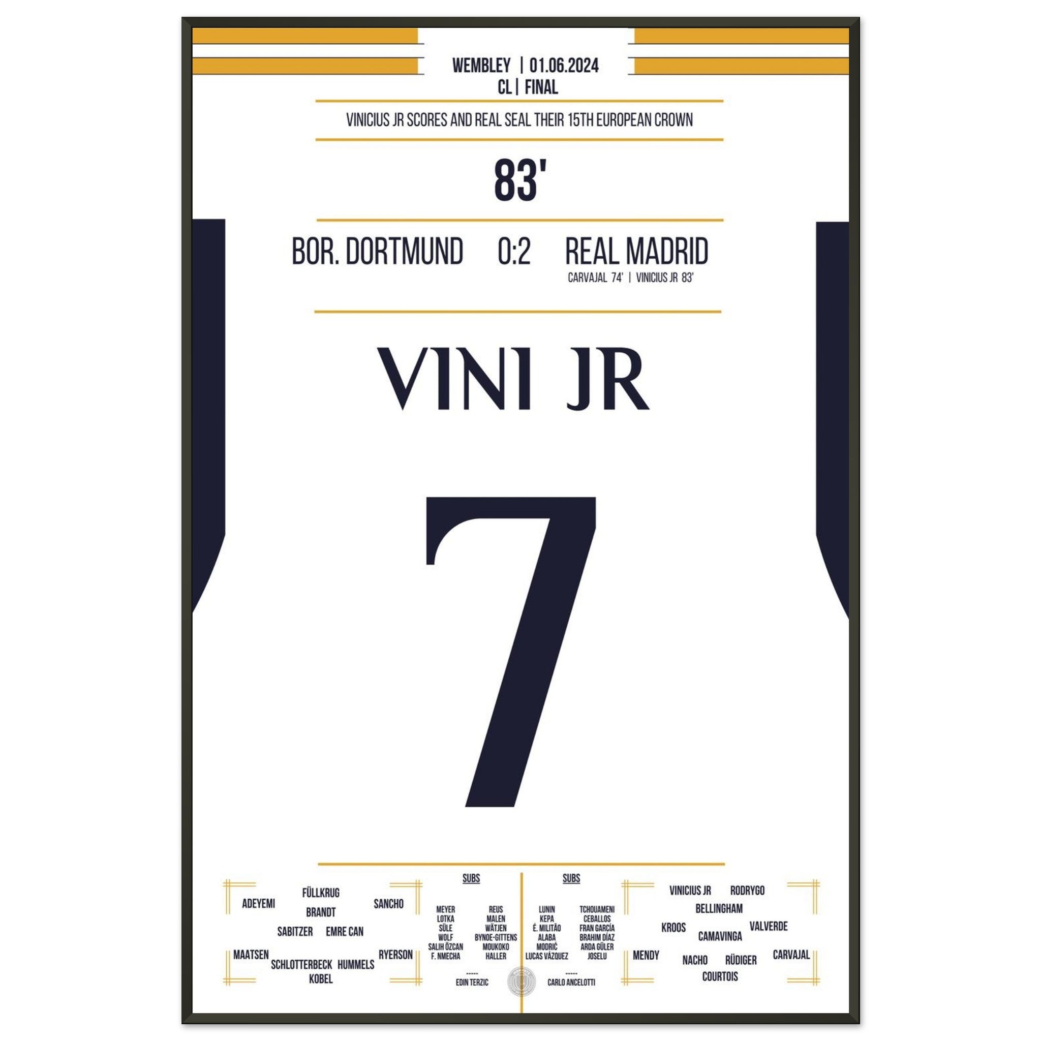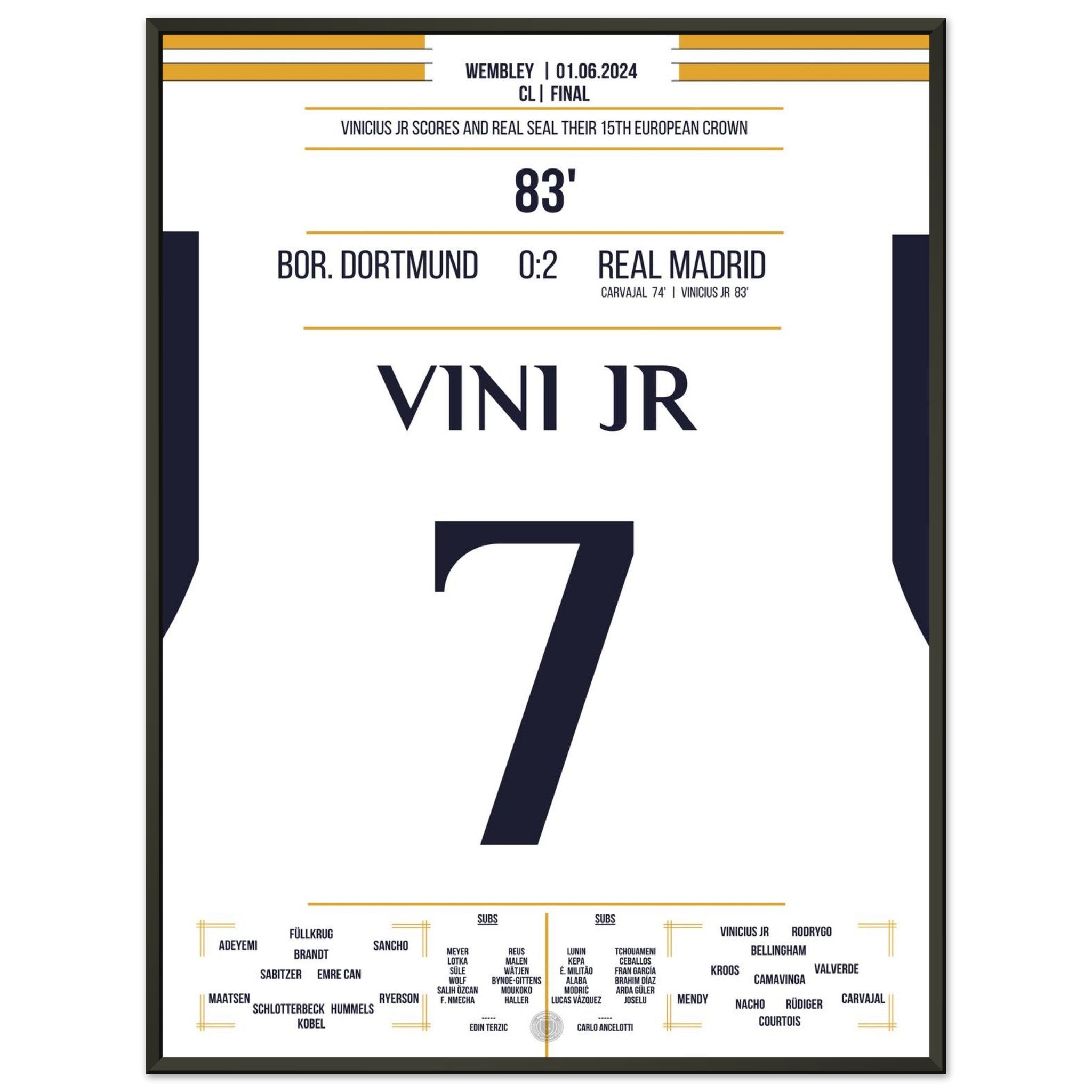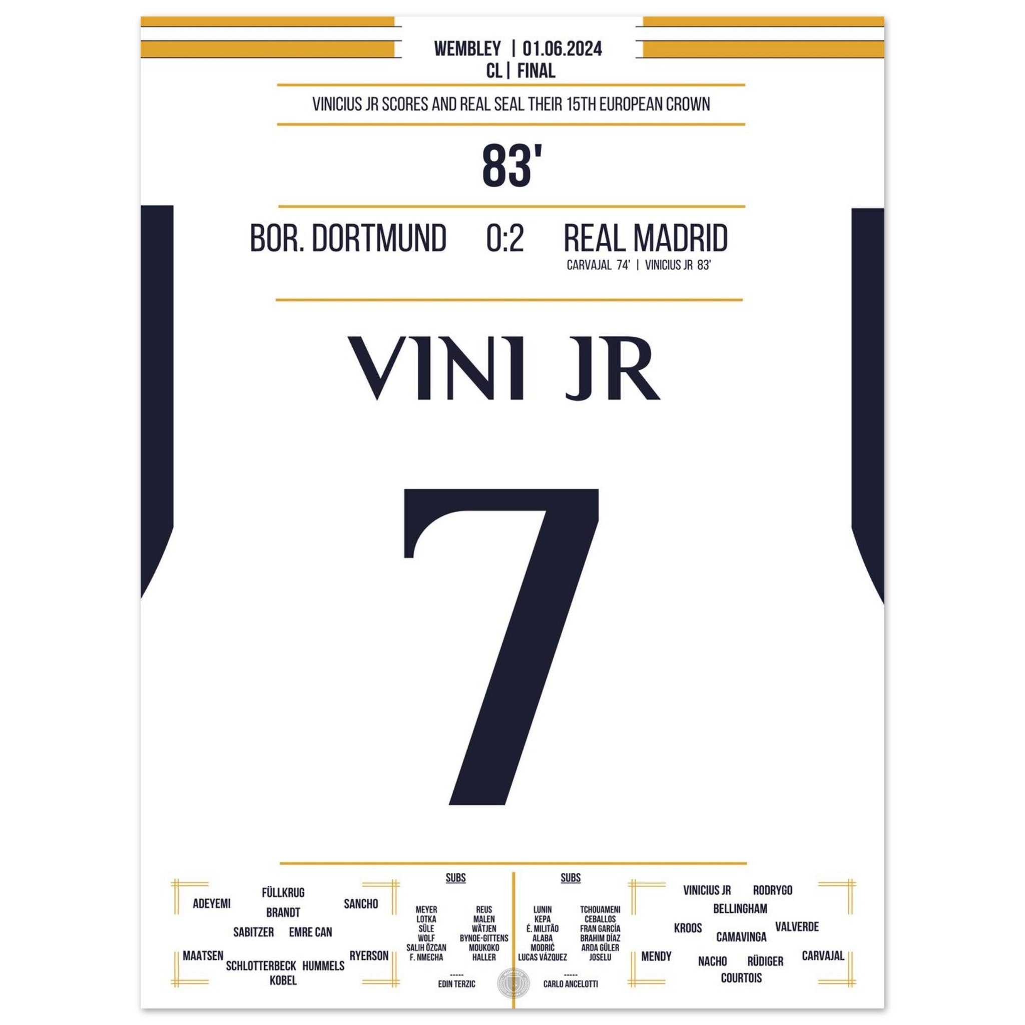 Vinicius Jr scores and Real secures the 15th CL title in the club's history.