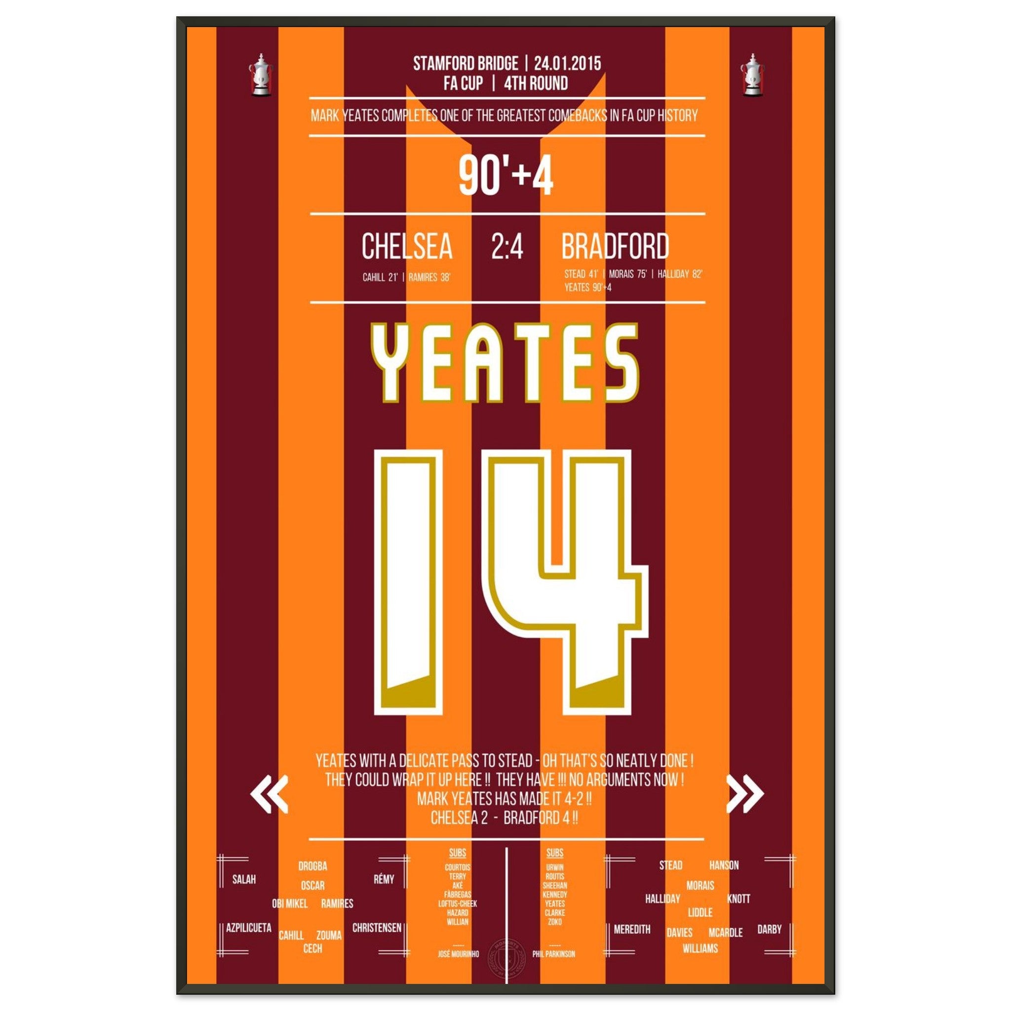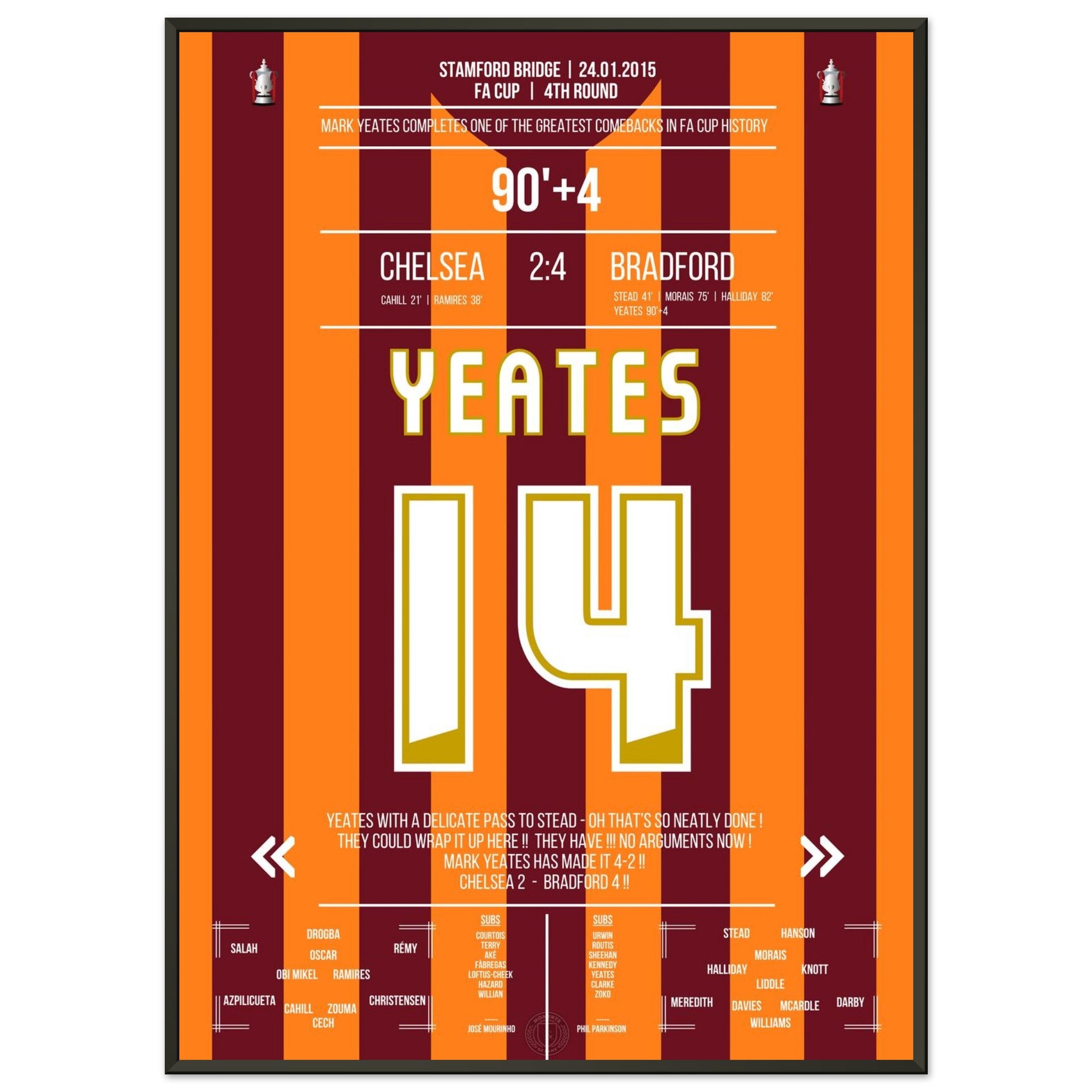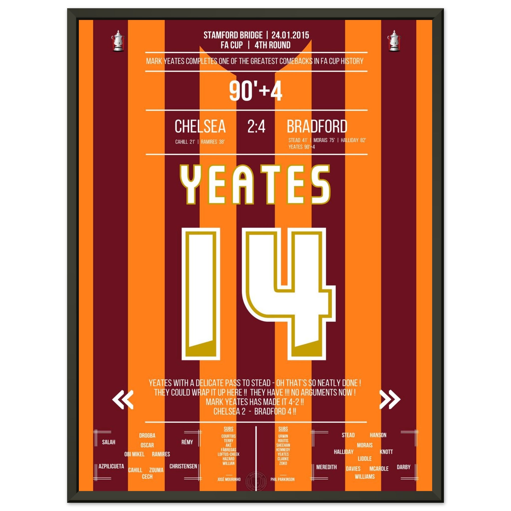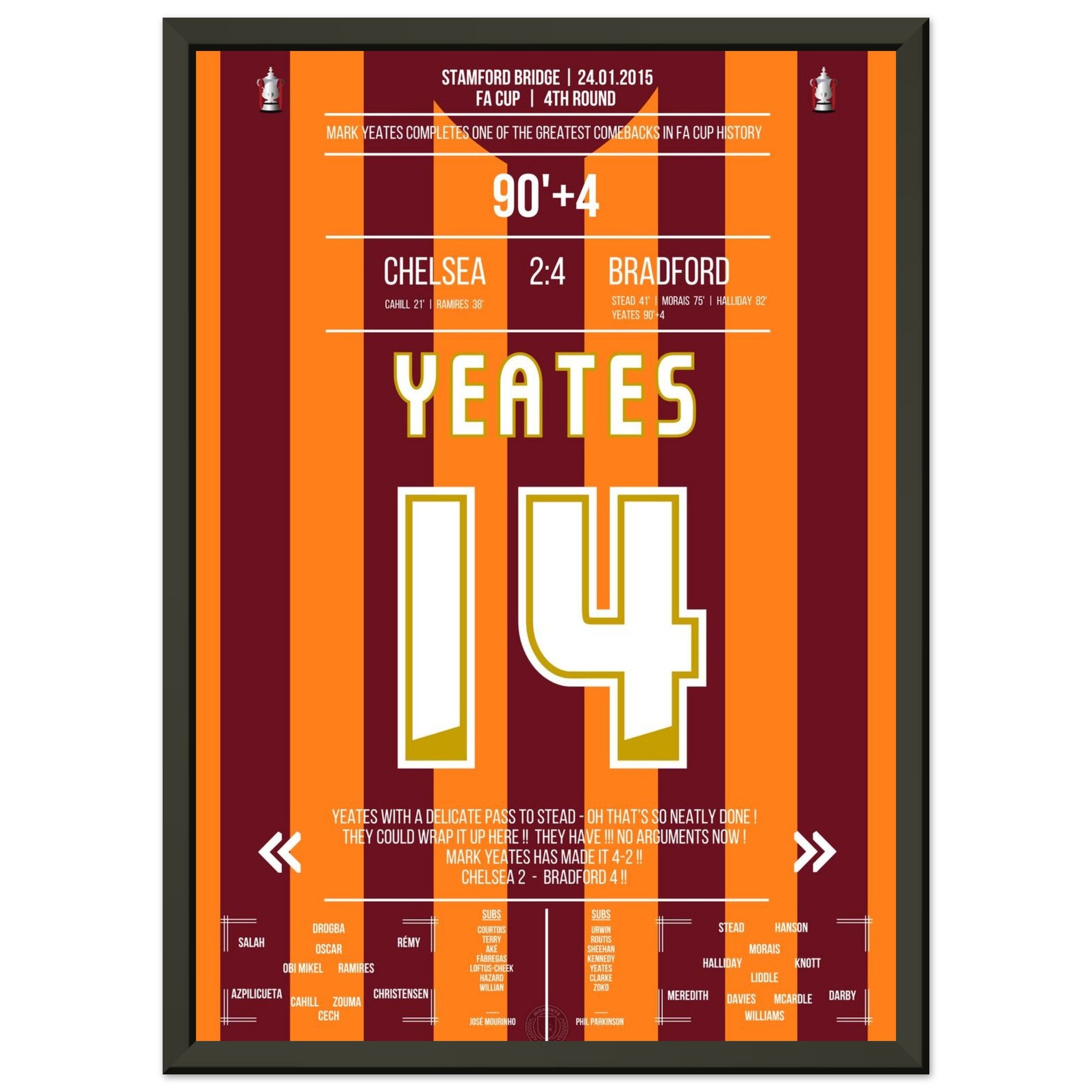 You can be assured that each poster and frame is shipped in sturdy packaging to ensure it arrives in pristine condition. It's the perfect addition to any football fan's collection or the perfect gift for that diehard football fan in your circle of friends or family.