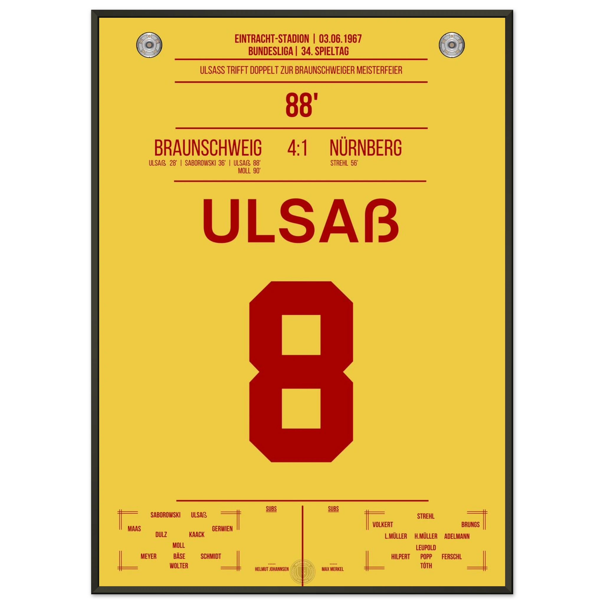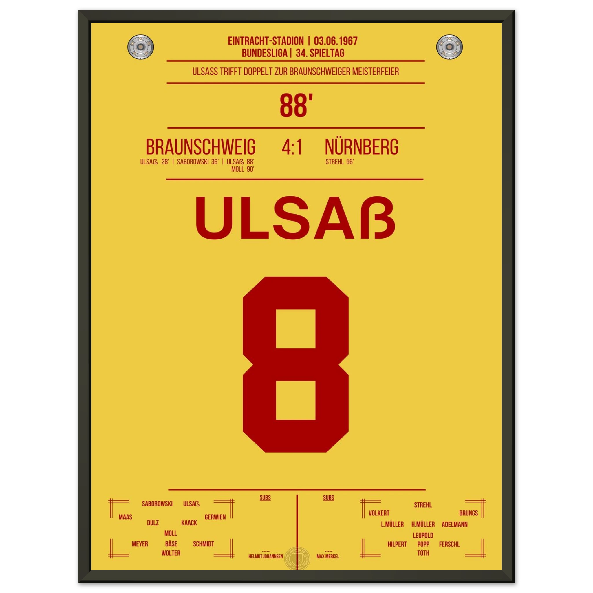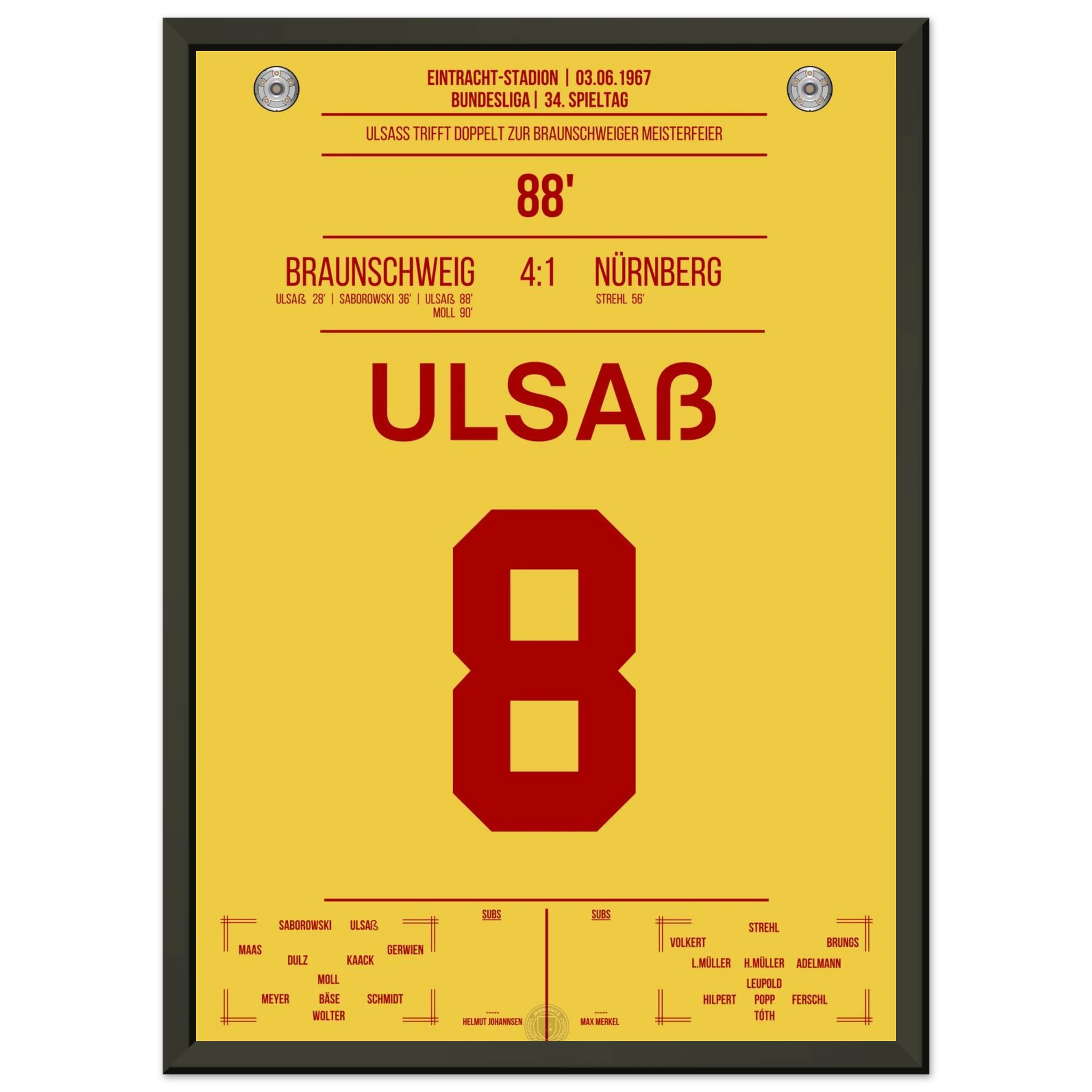 Ulsaß trifft in der 88. Minute und sichert Braunschweig damit den entscheidenden Sieg. Mit diesem historischen Erfolg krönt sich der Klub erstmals zur Deutschen Meisterschaft – ein legendärer Moment!