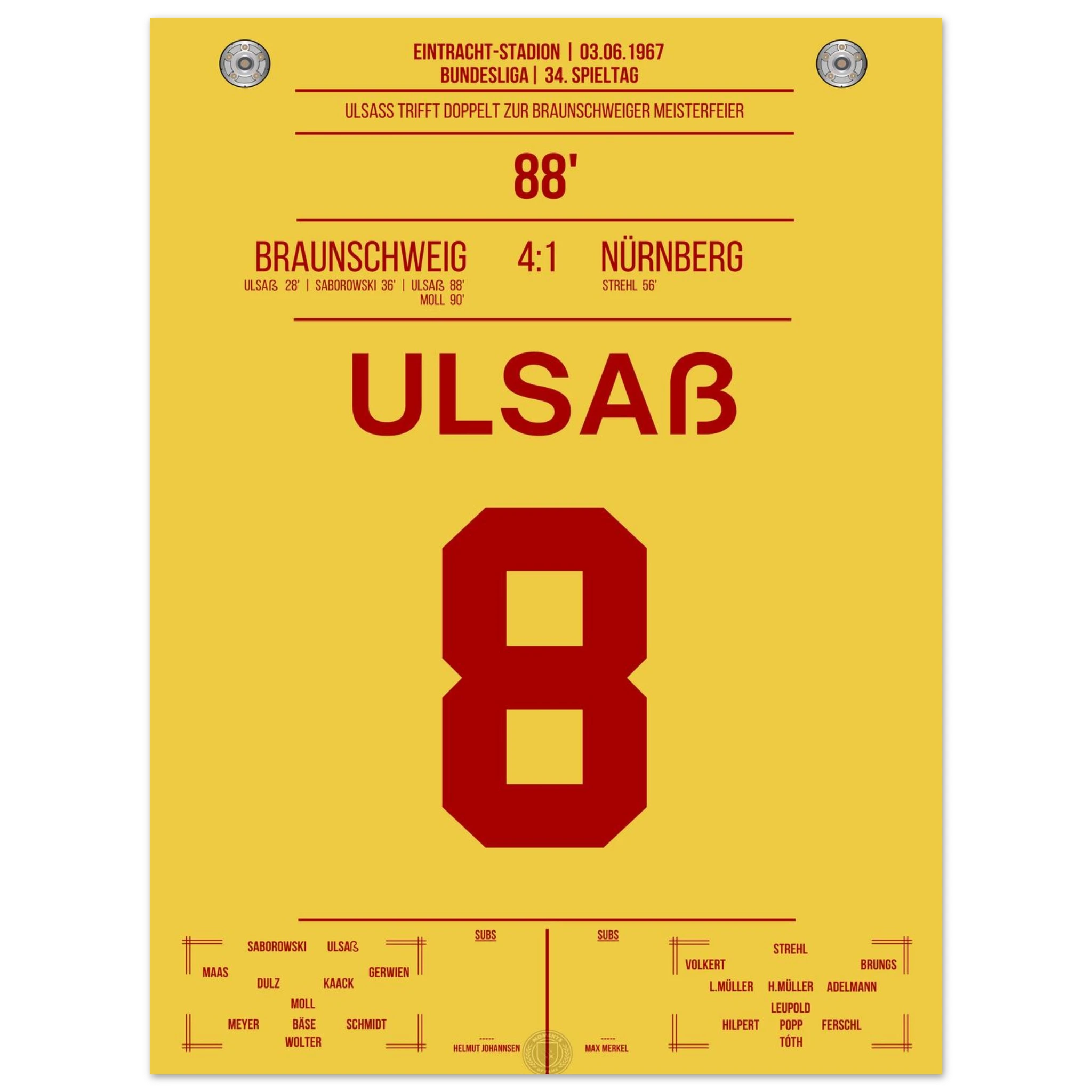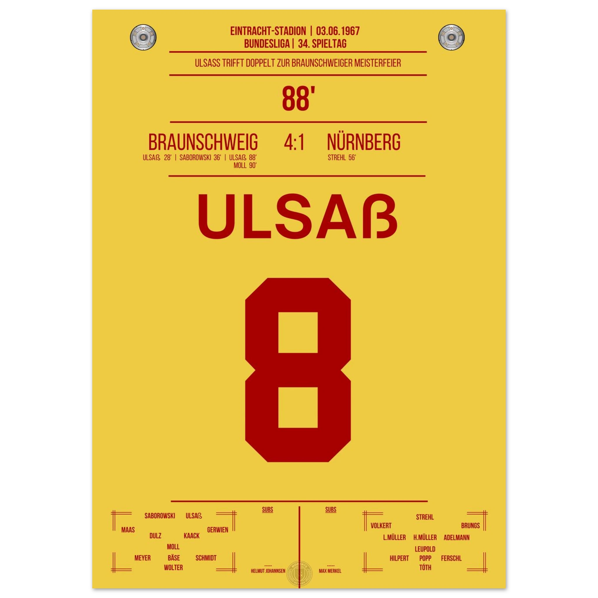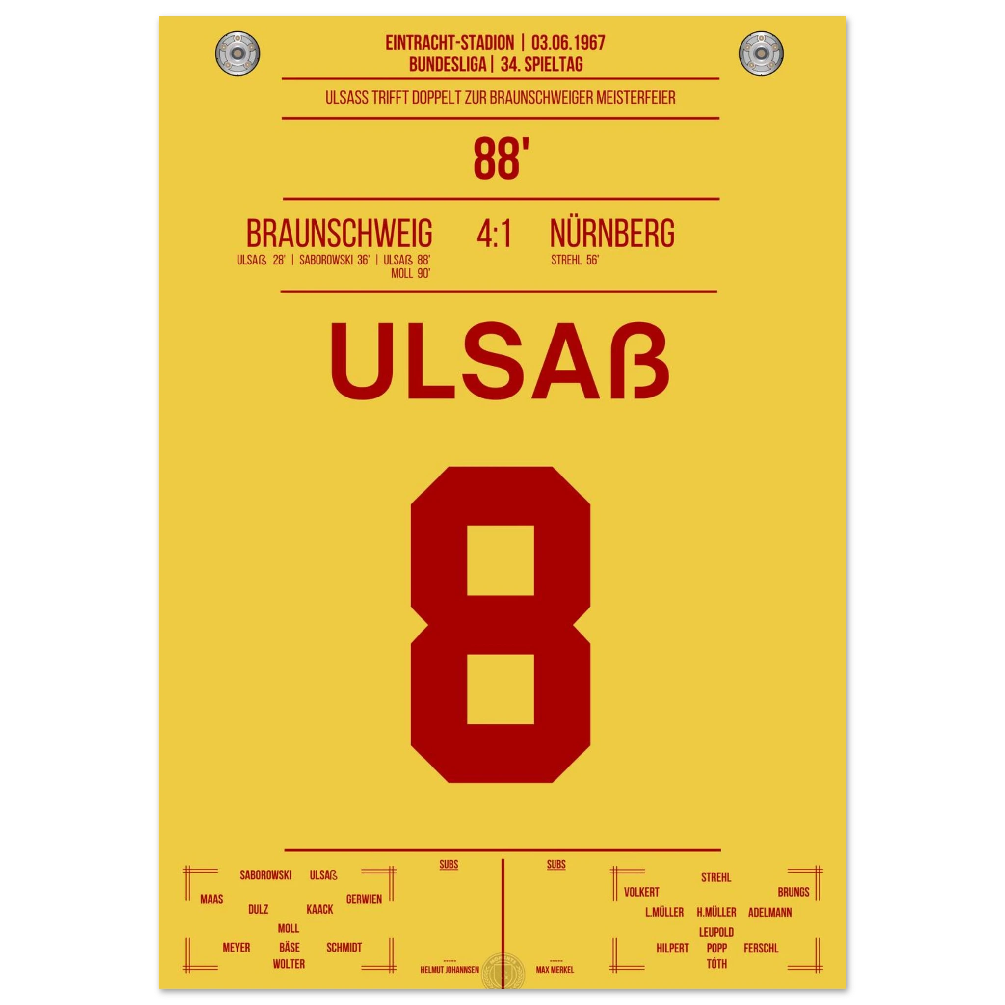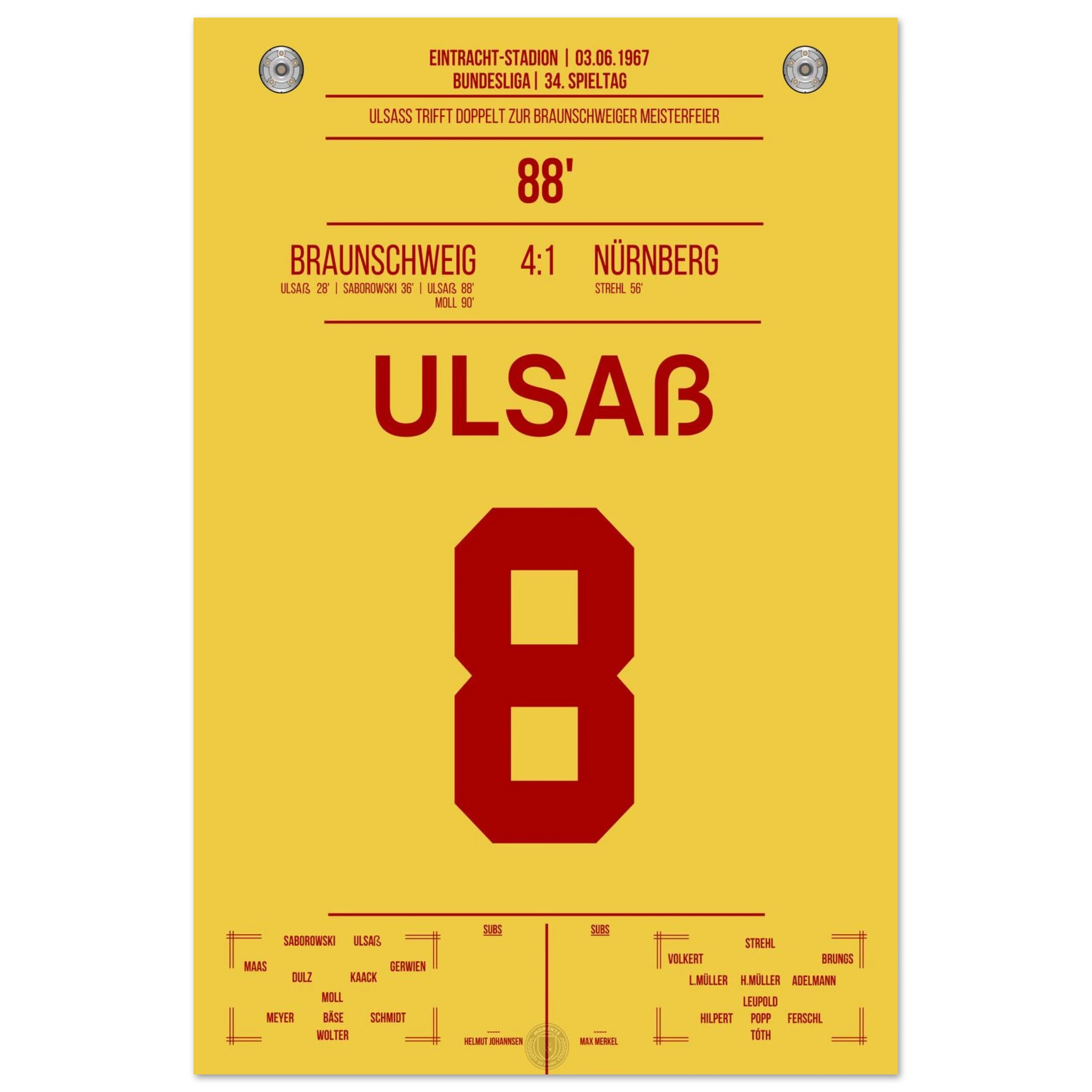 Ulsaß trifft in der 88. Minute und sichert Braunschweig damit den entscheidenden Sieg. Mit diesem historischen Erfolg krönt sich der Klub erstmals zur Deutschen Meisterschaft – ein legendärer Moment!