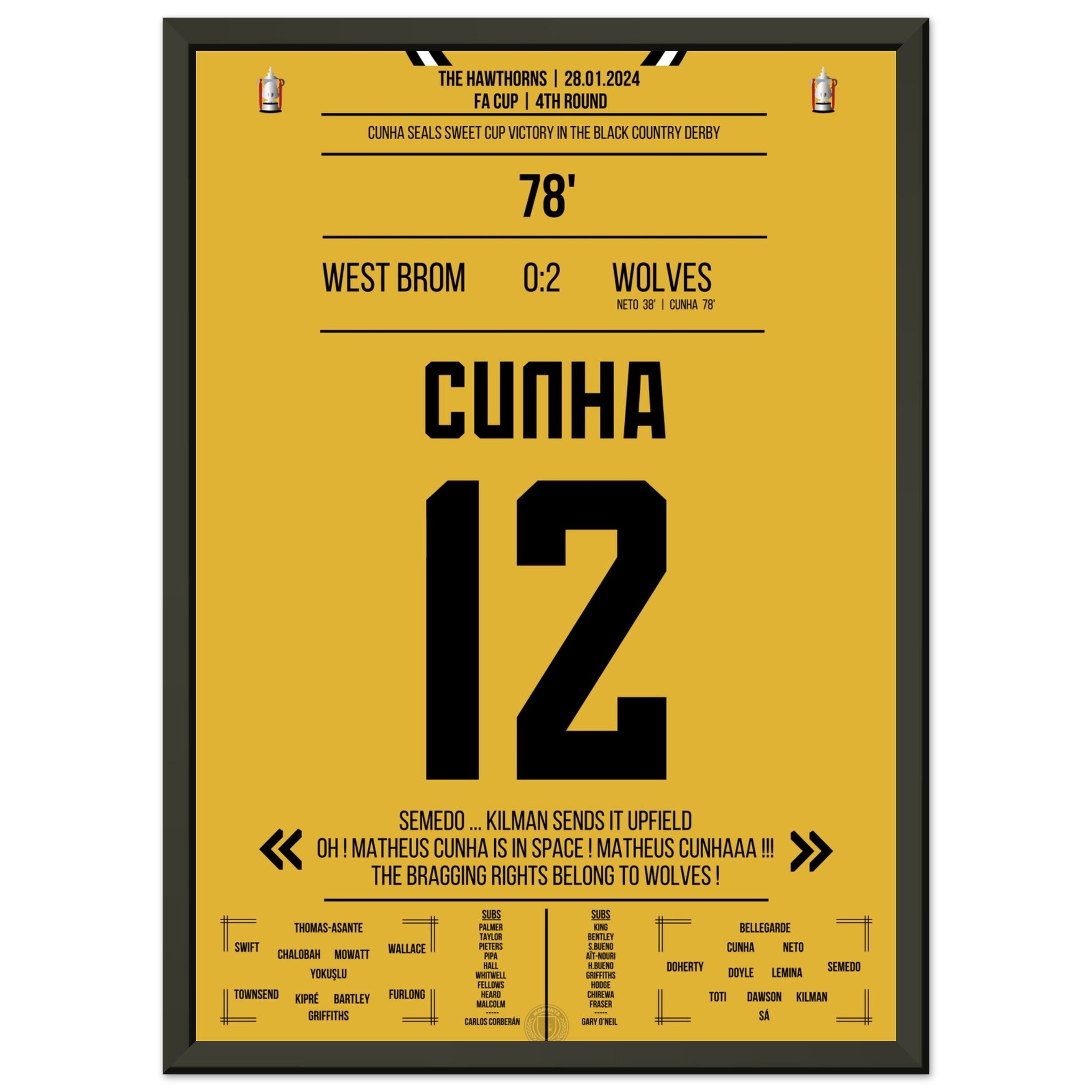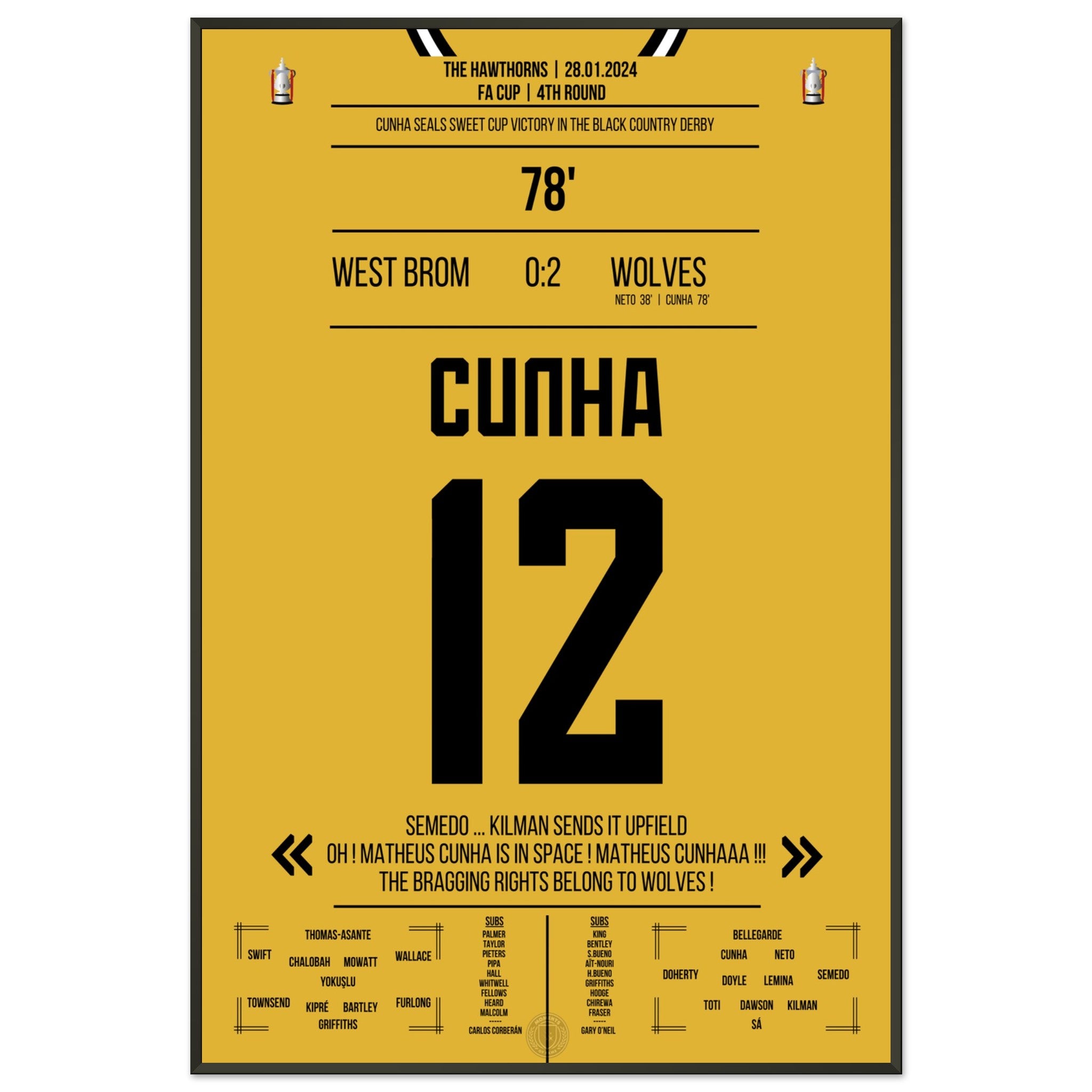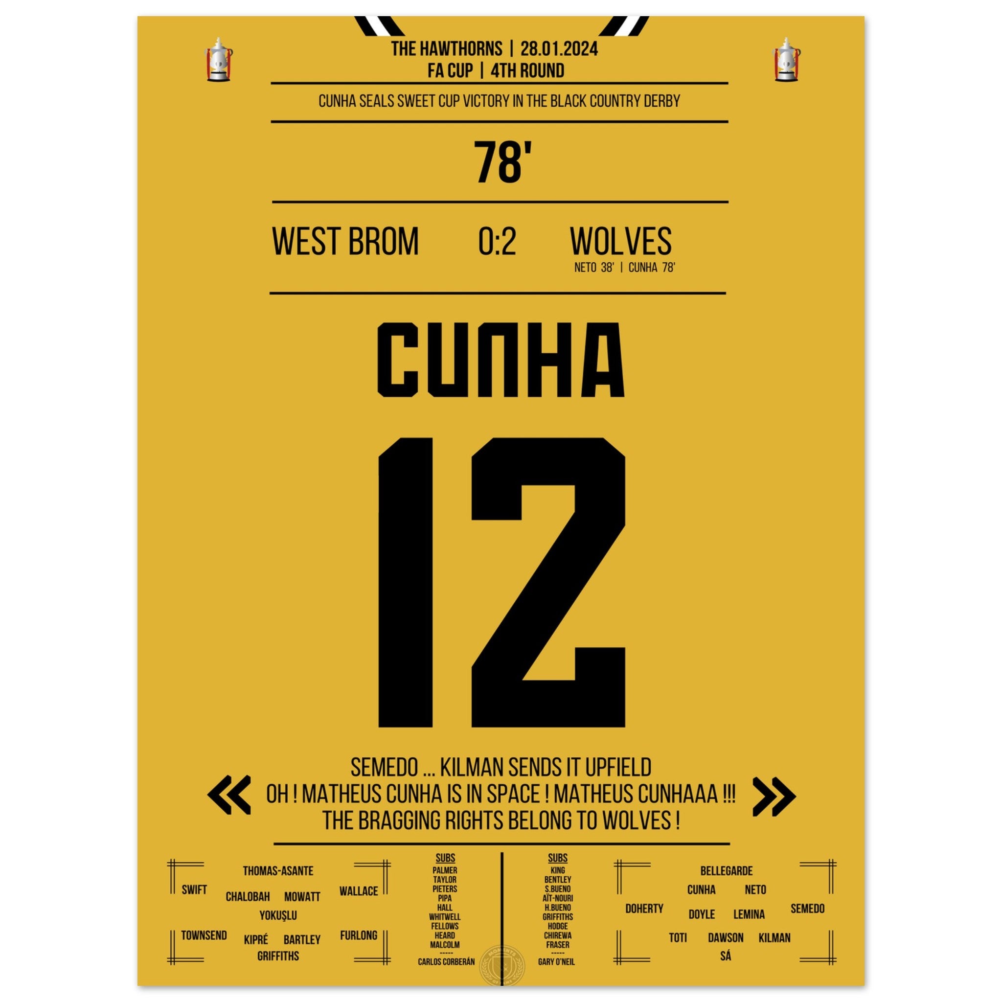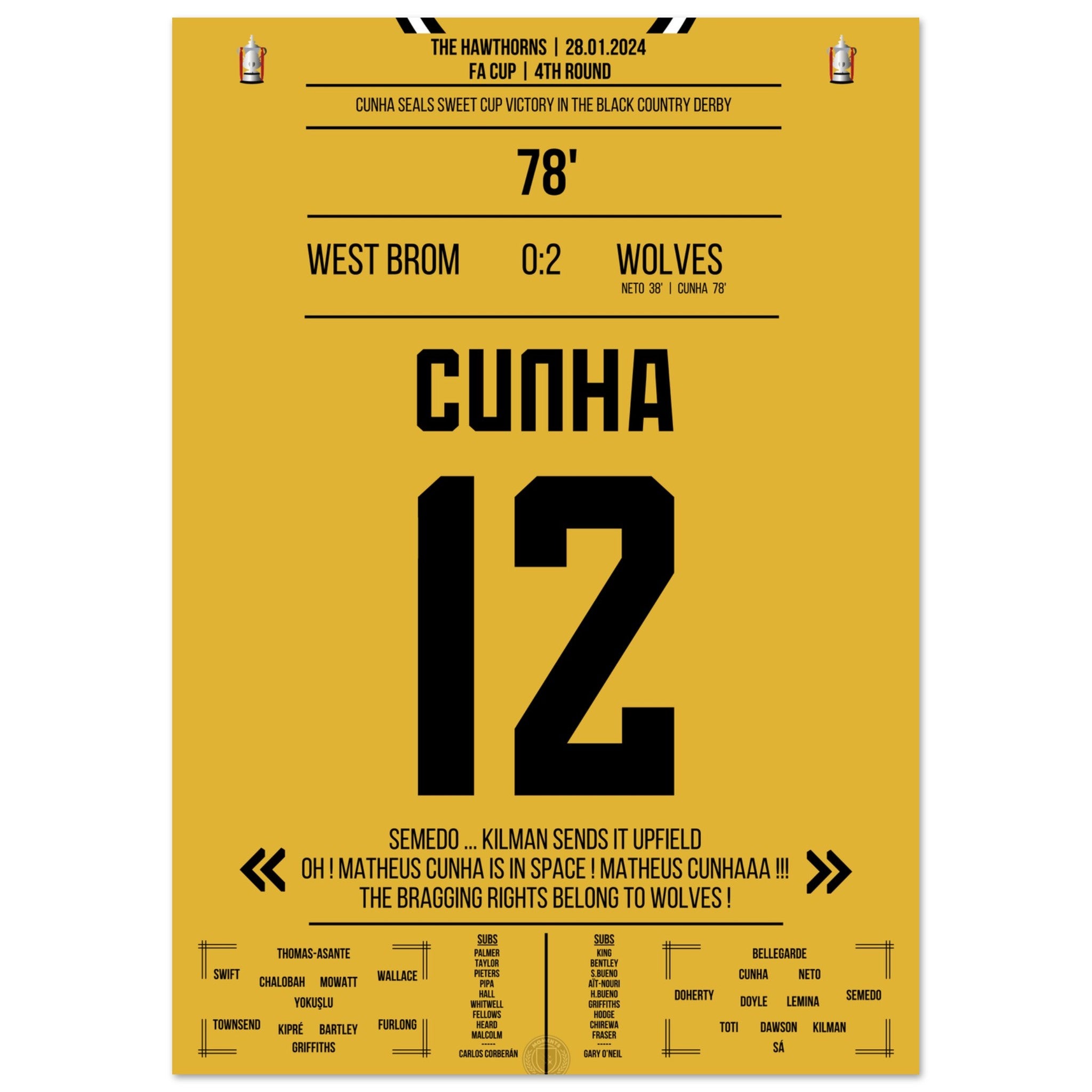 Cunha scores for the Black Country Derby victory in the cup.