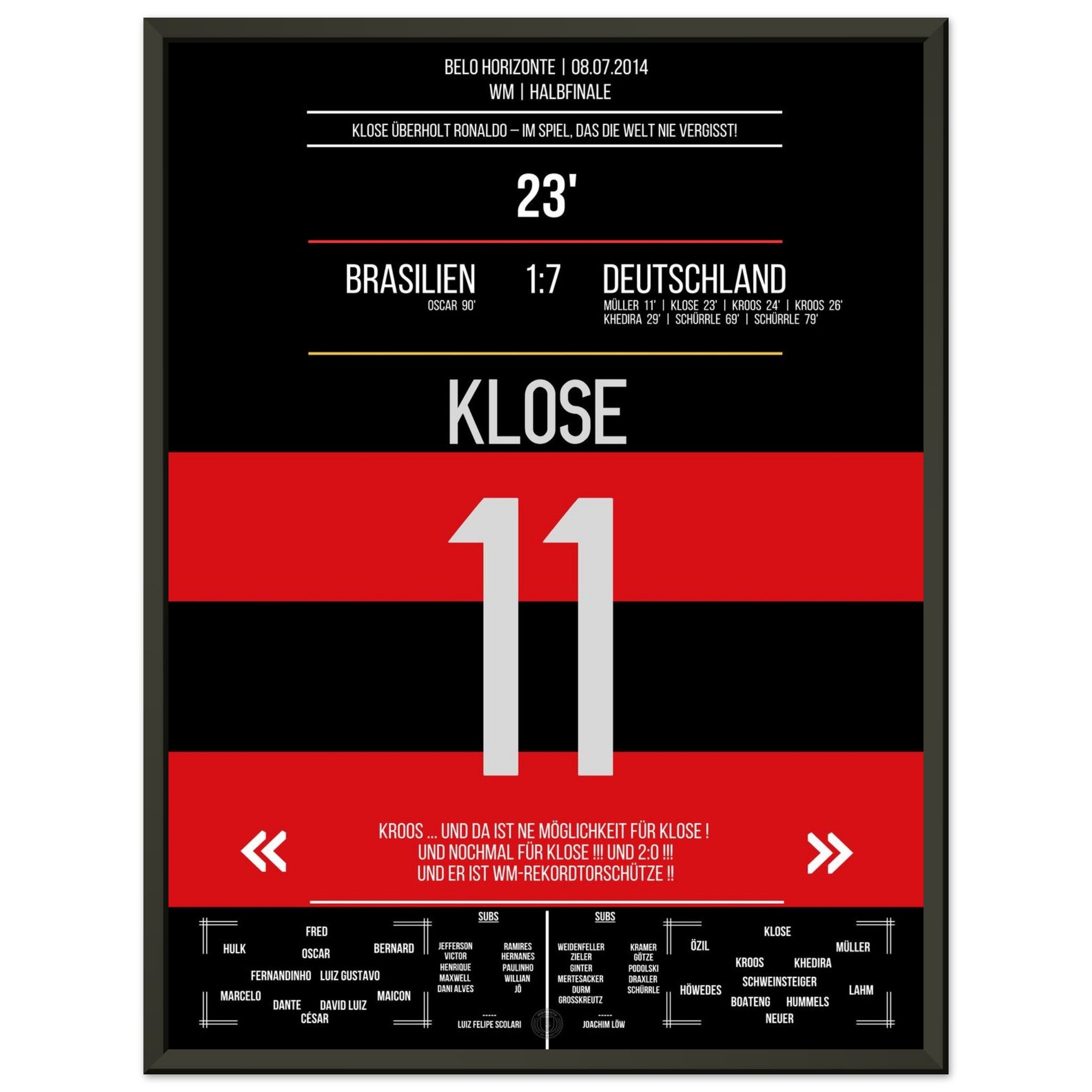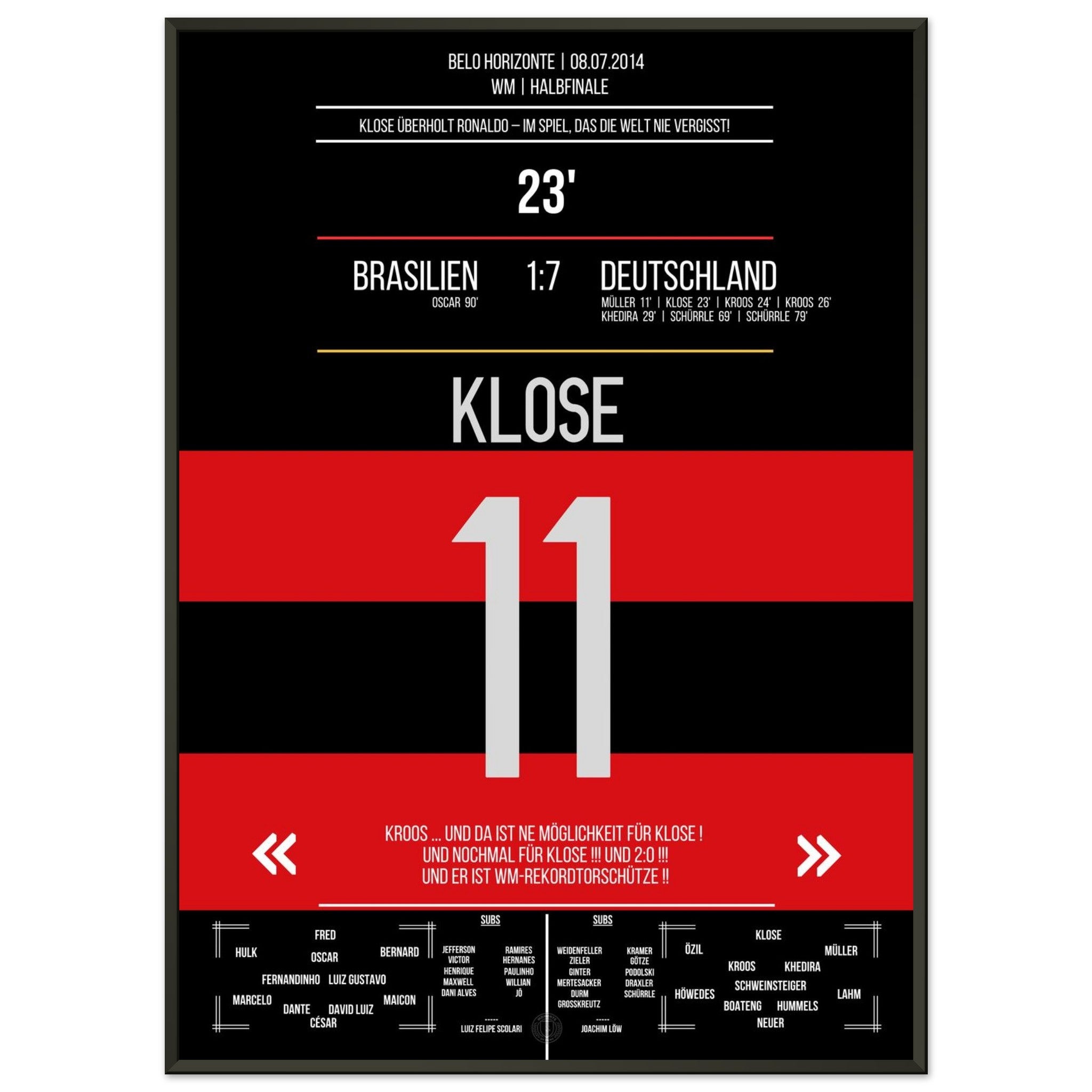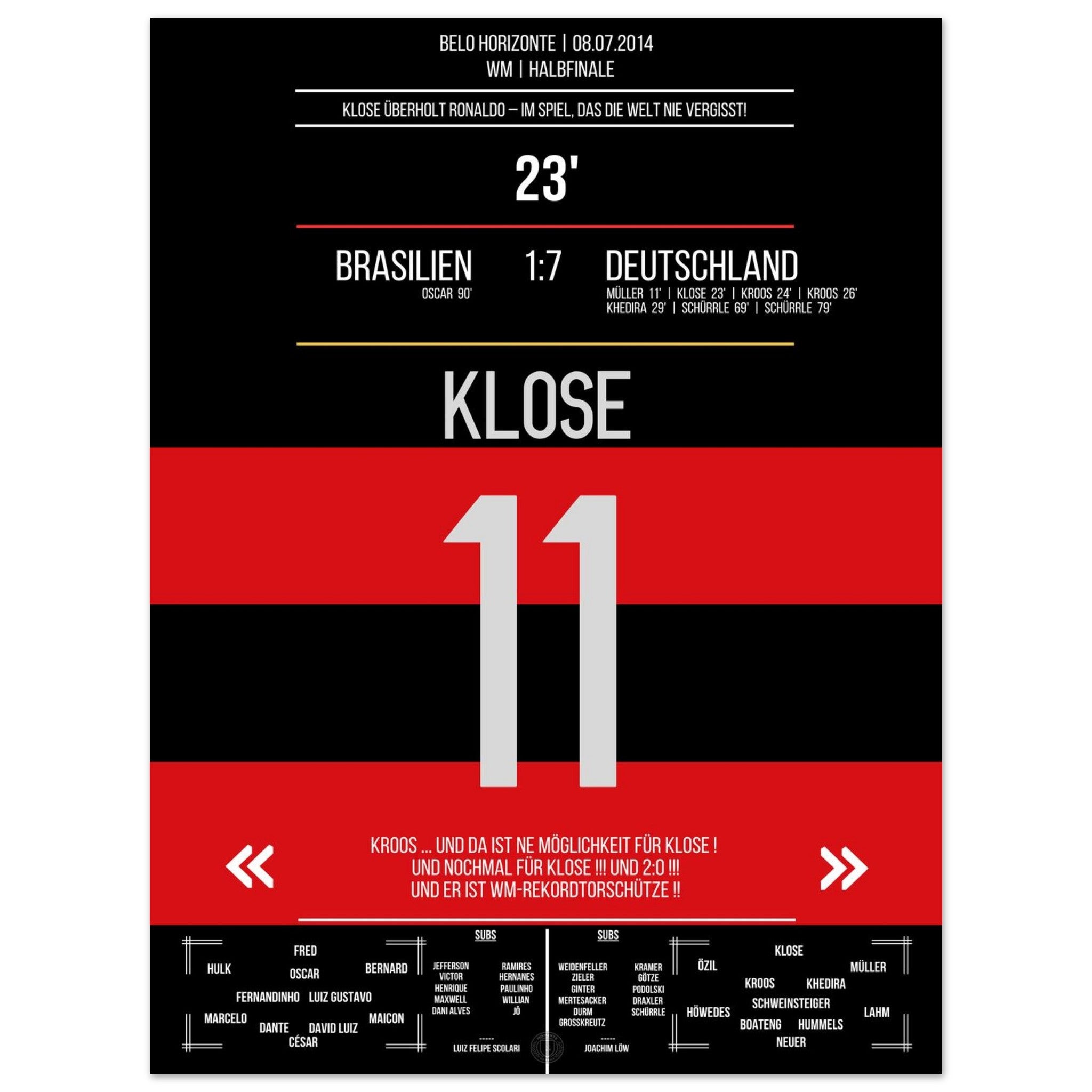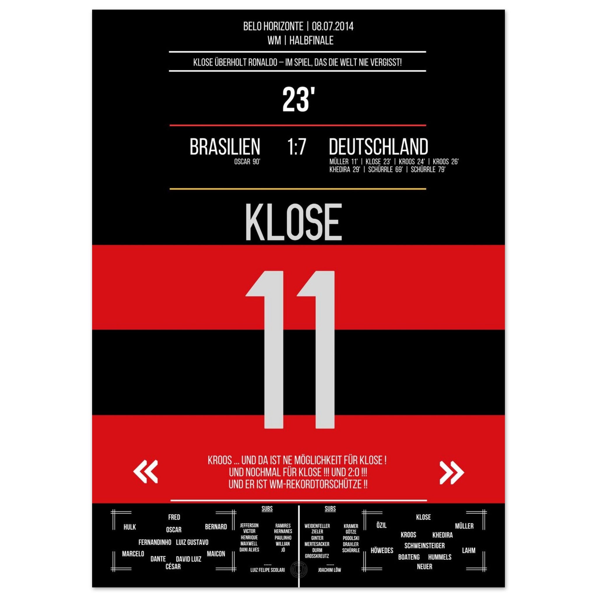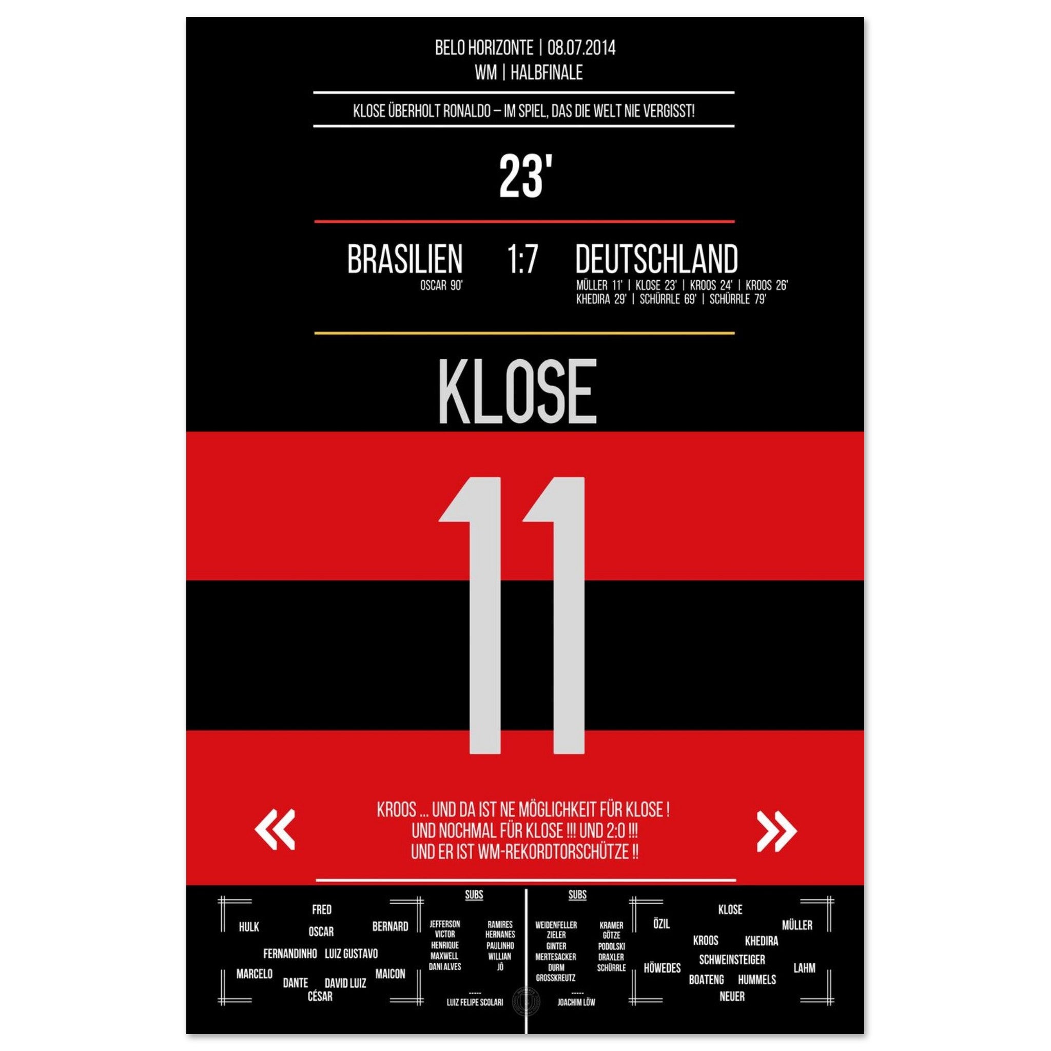 Klose's World Cup record goal in the 7-1 victory Germany - Brazil 2014