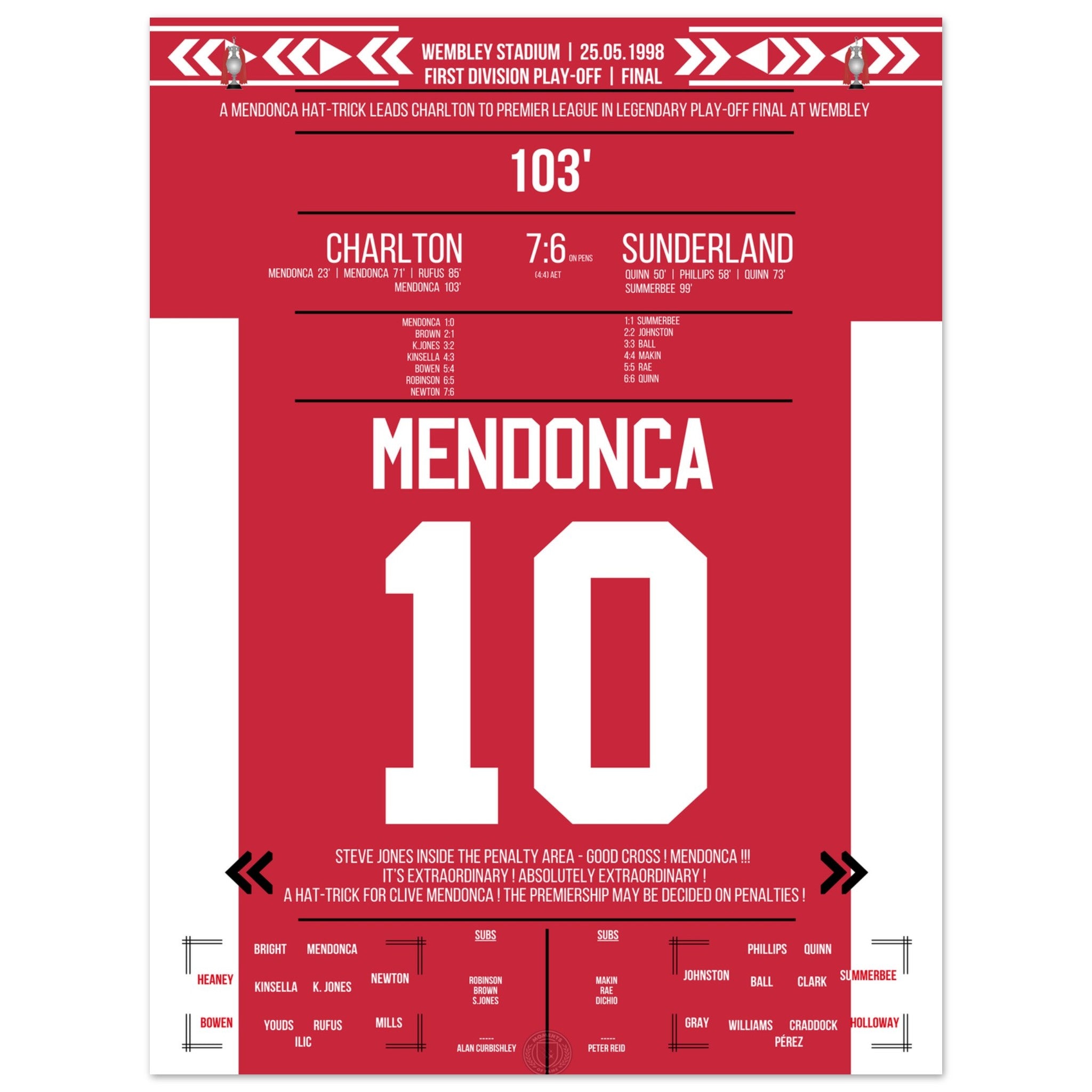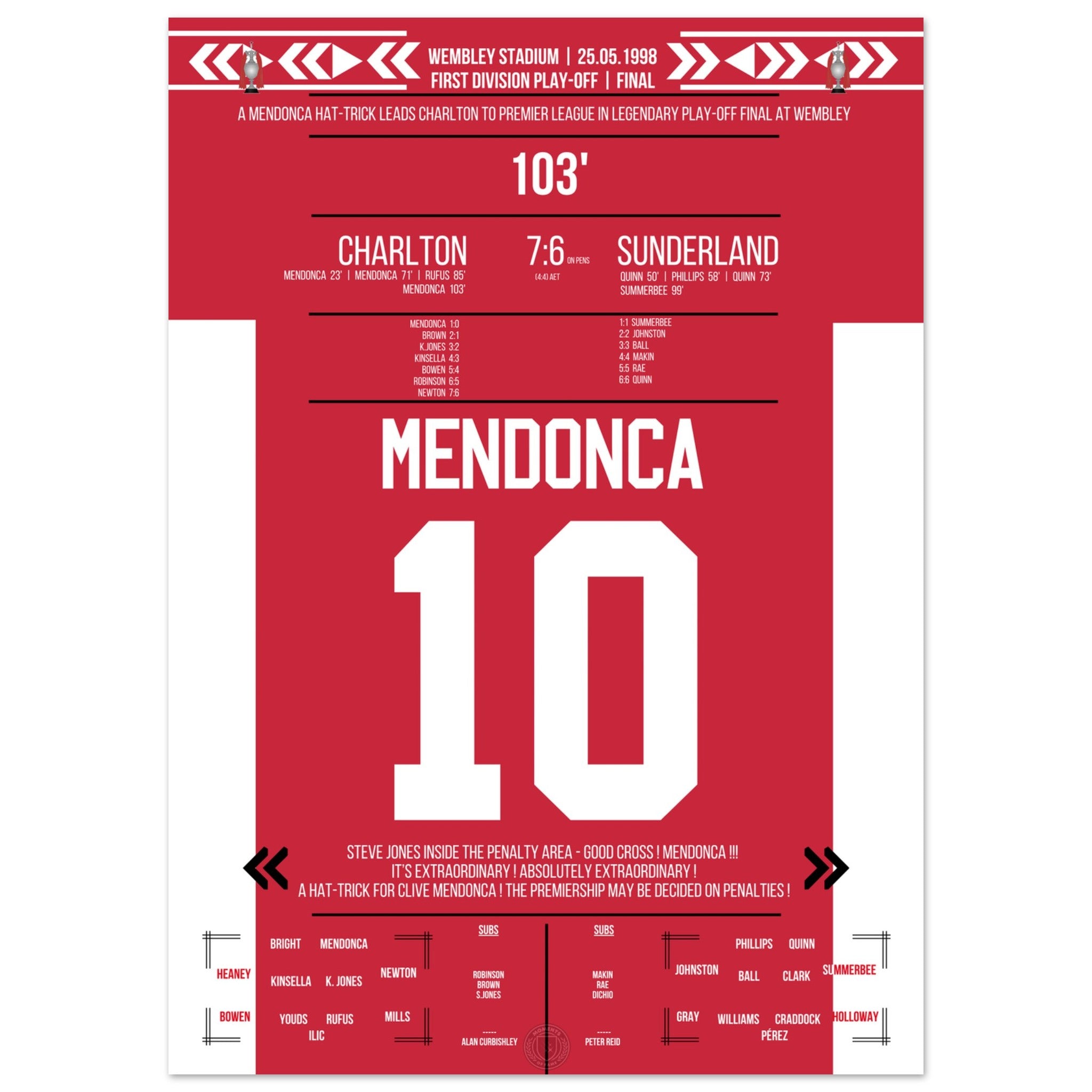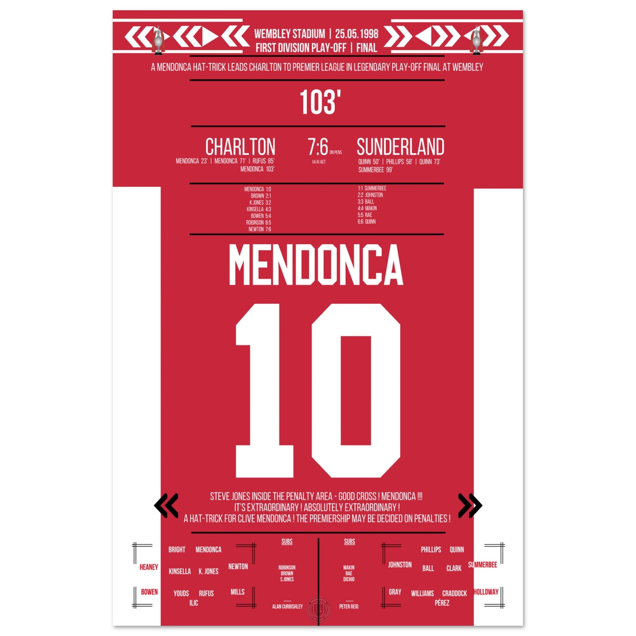 Mendonca's hat trick on the way to the Premier League
