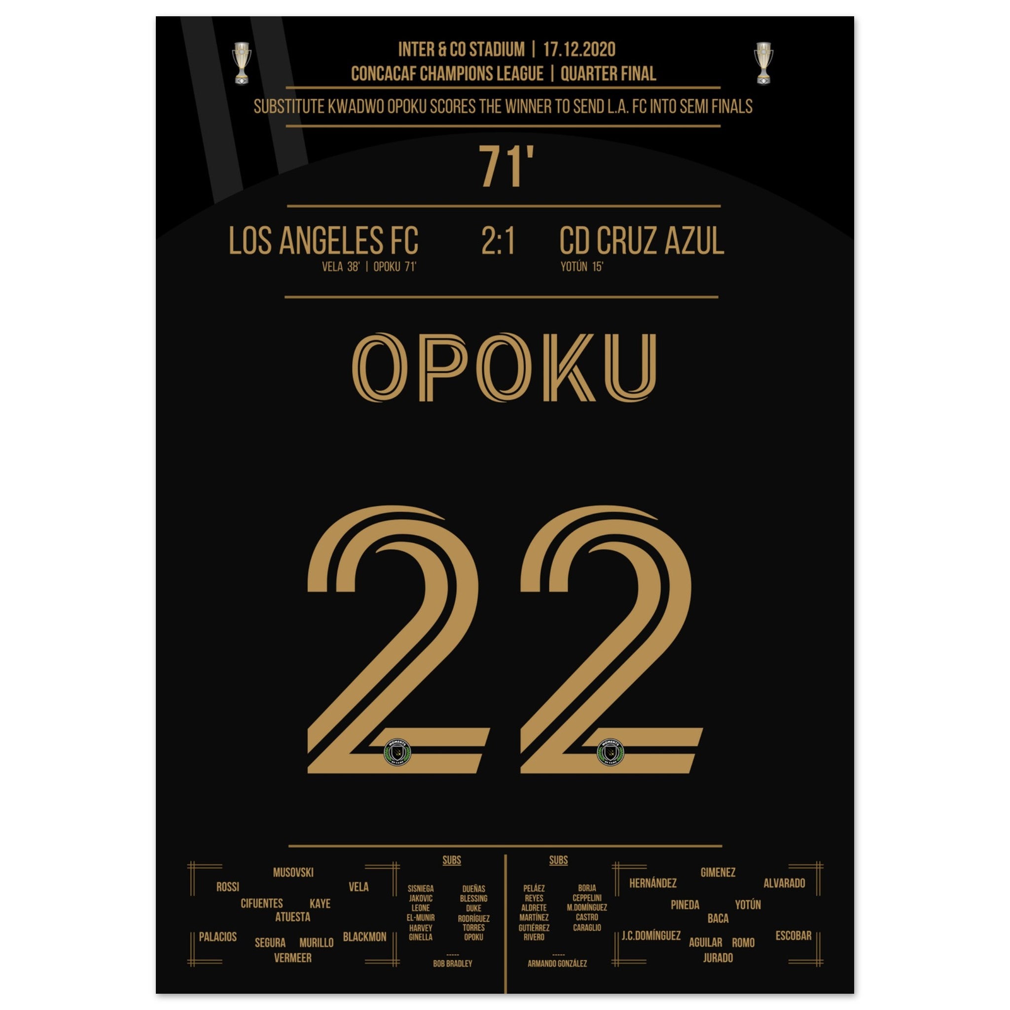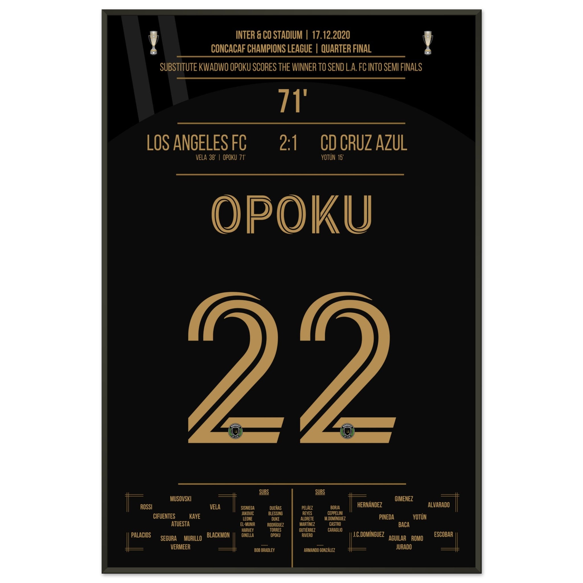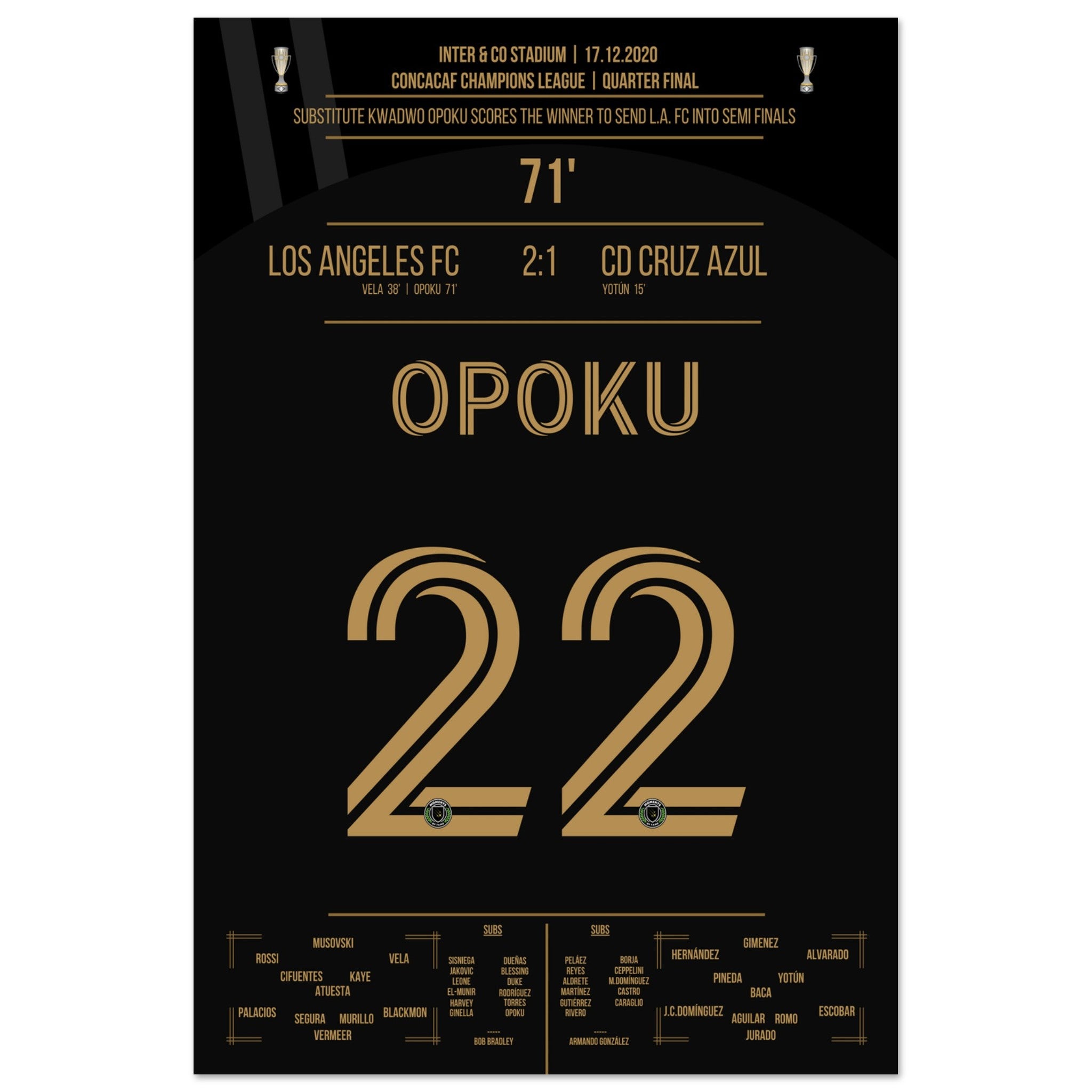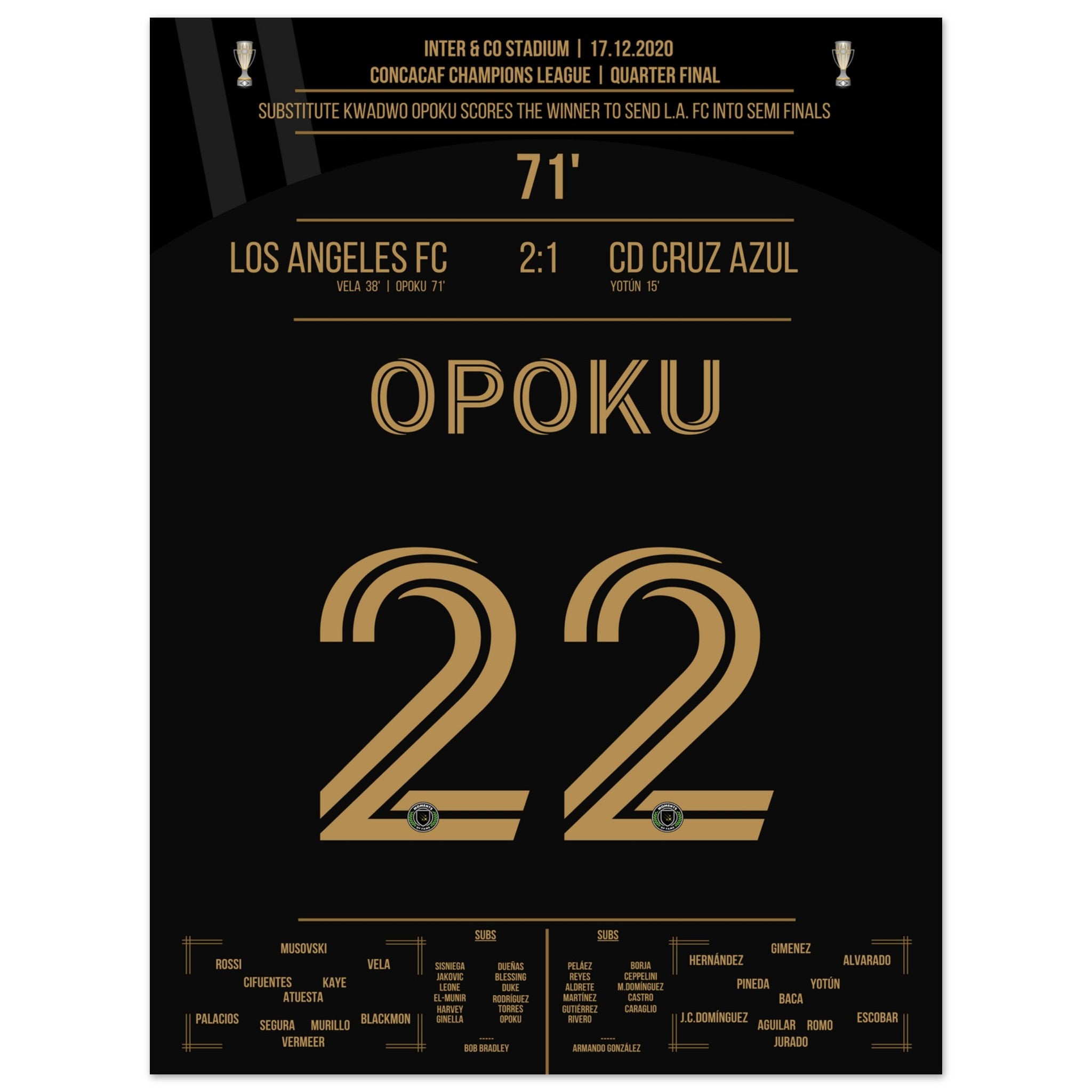 Opoku shoots Los Angeles FC into the semifinals against Cruz Azul.