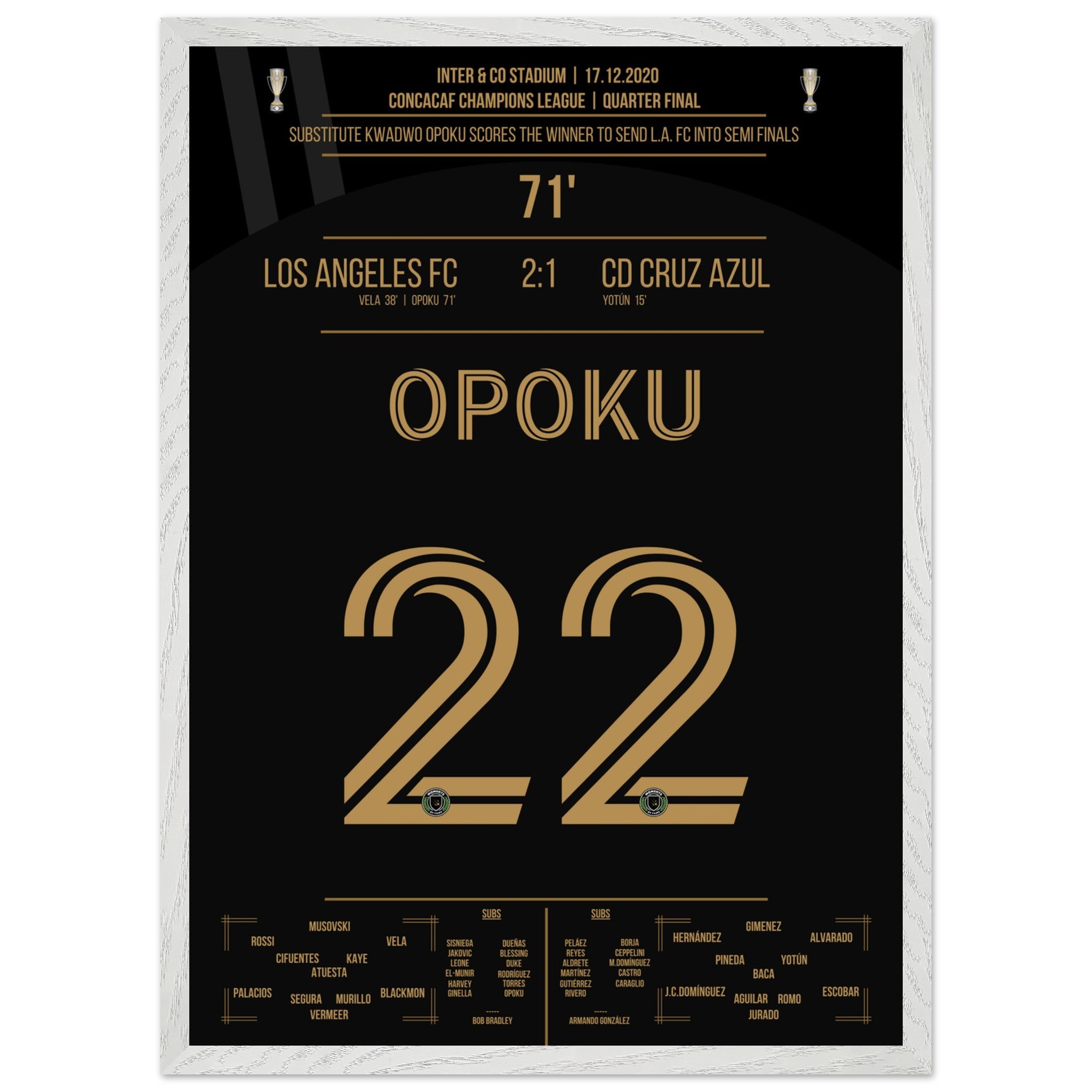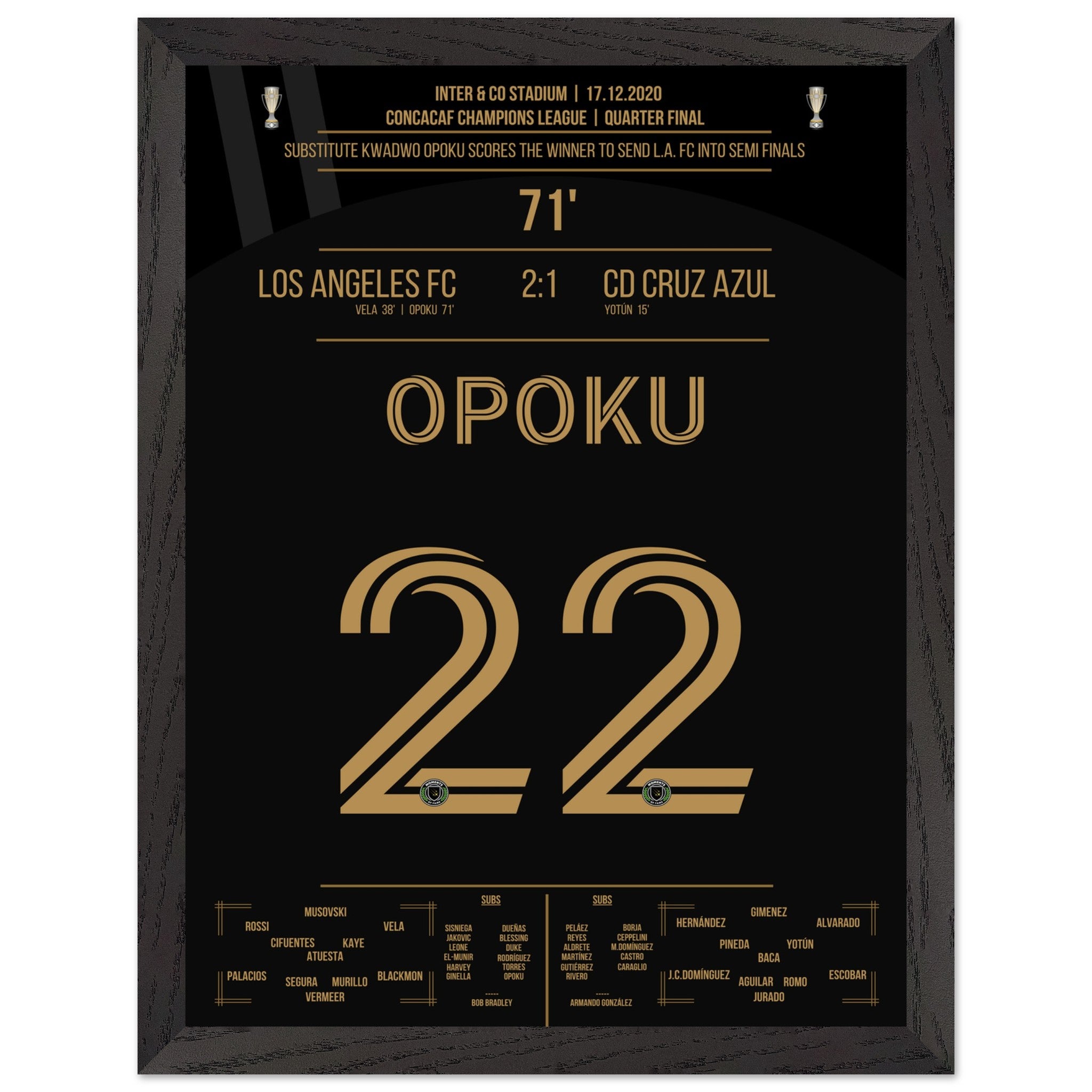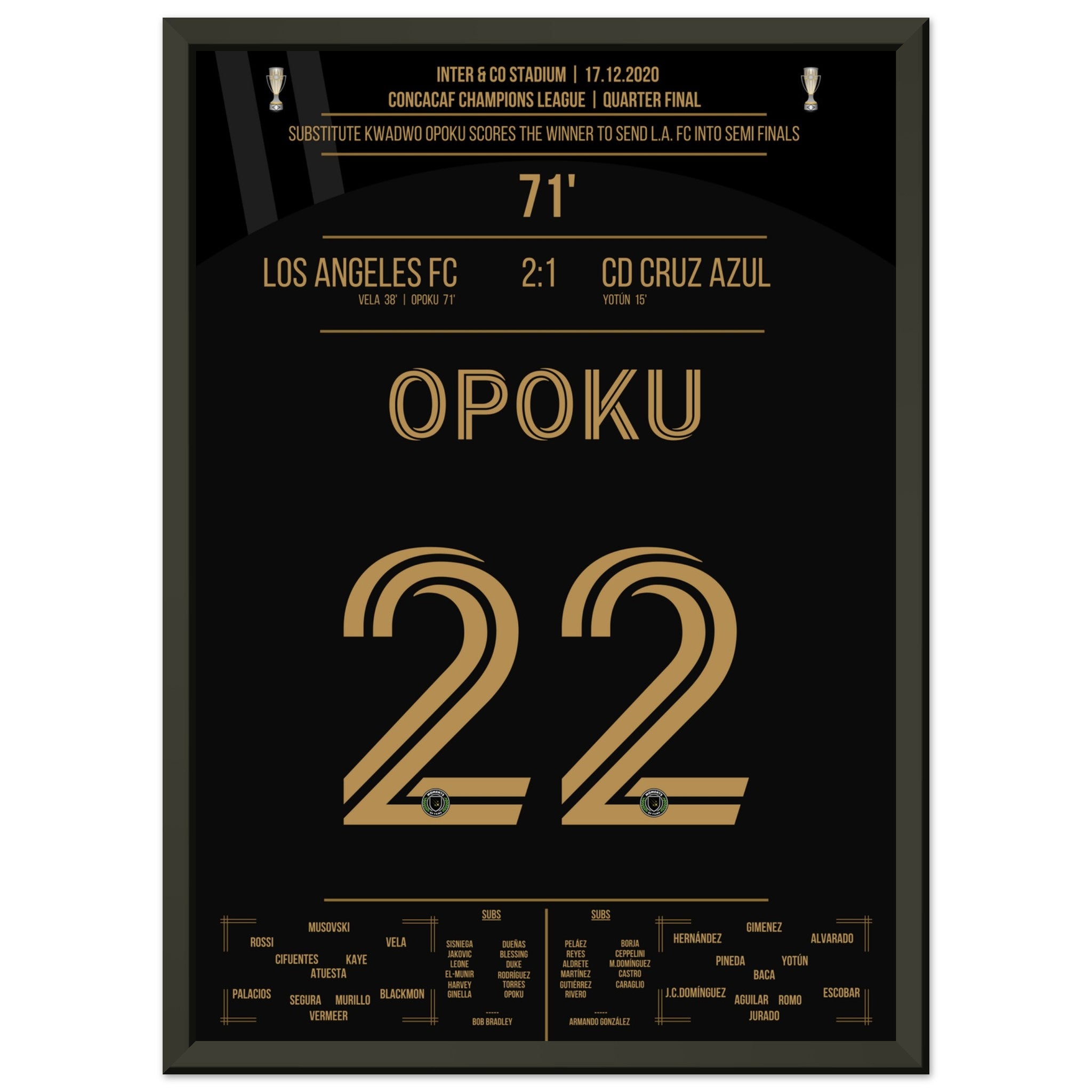 Opoku shoots Los Angeles FC into the semifinals against Cruz Azul.
