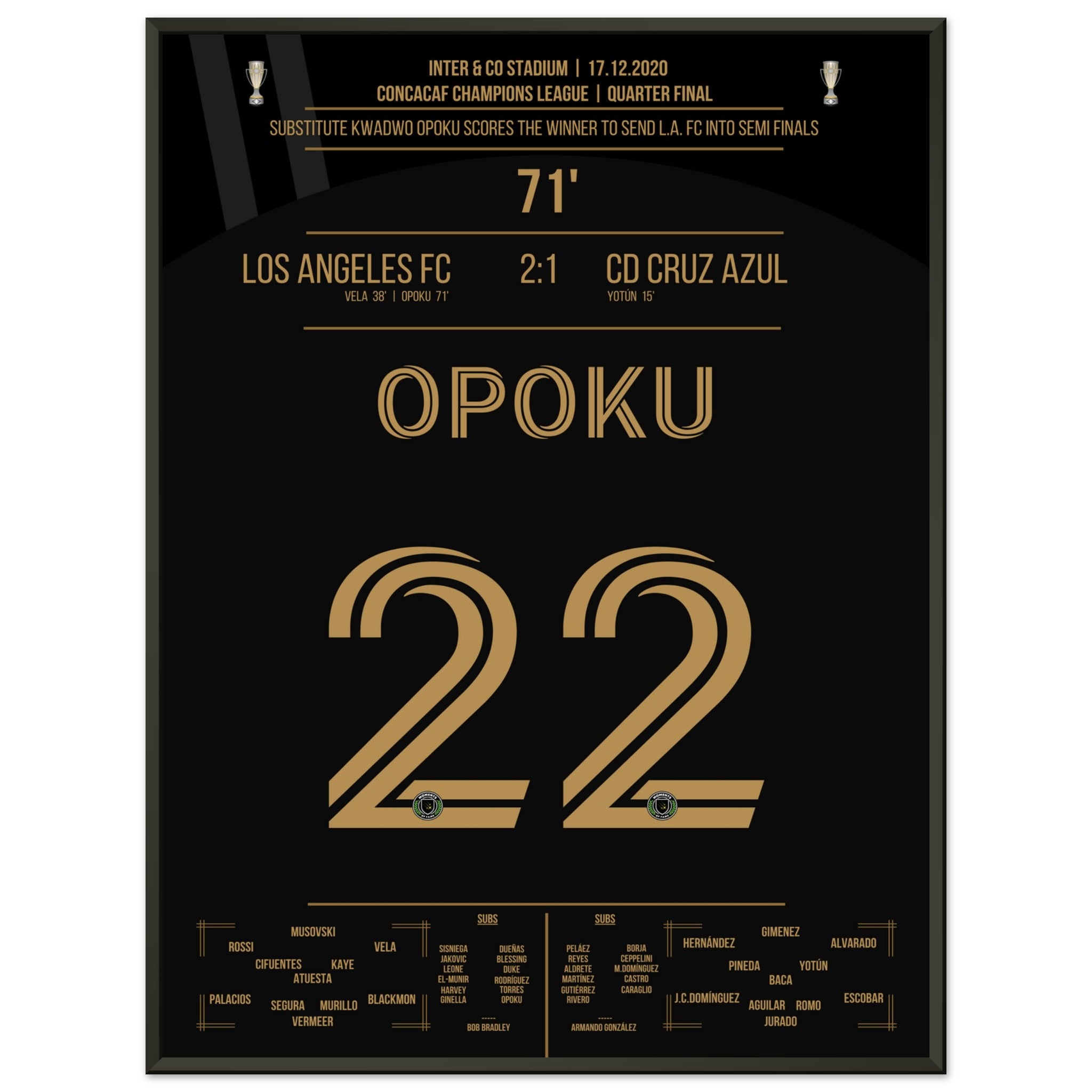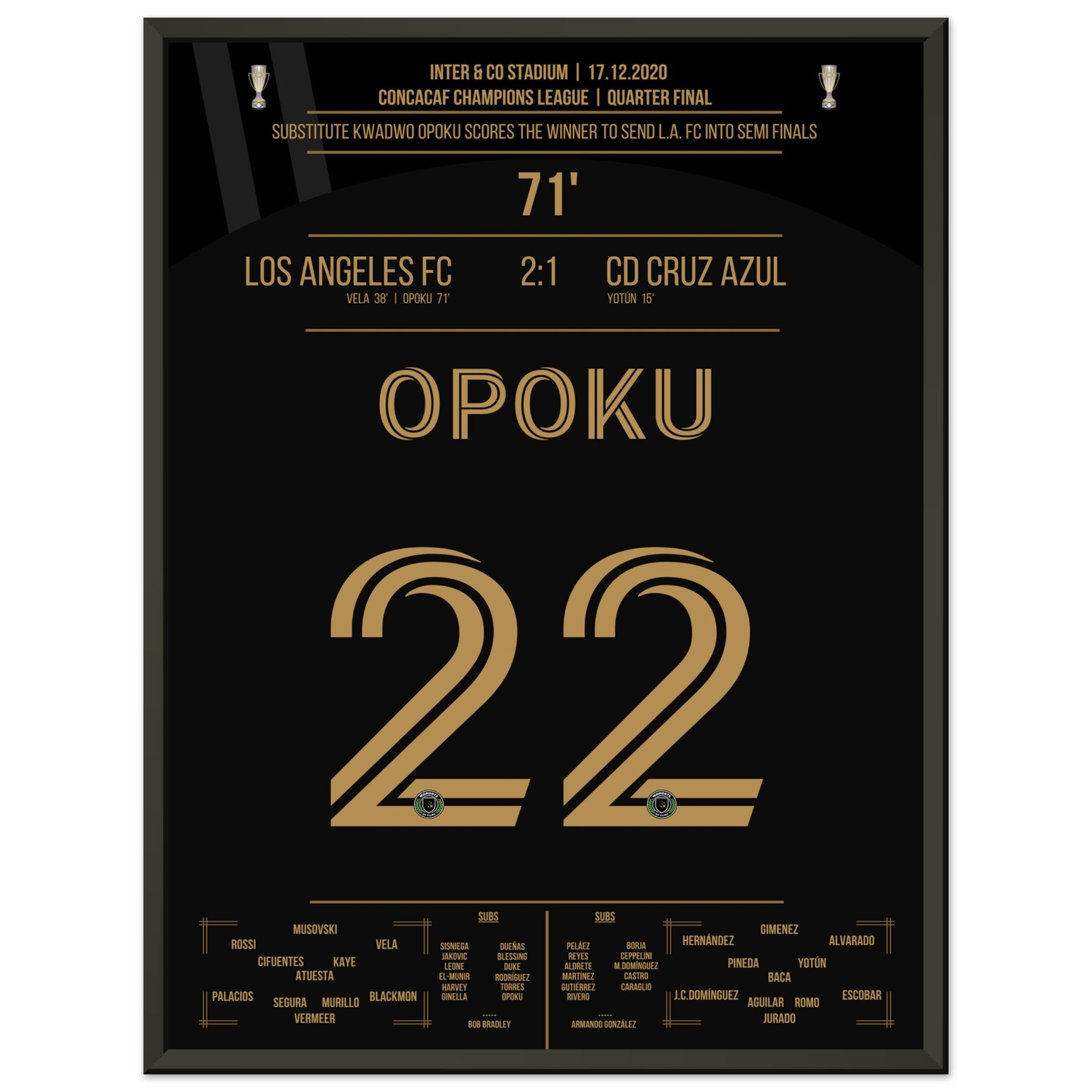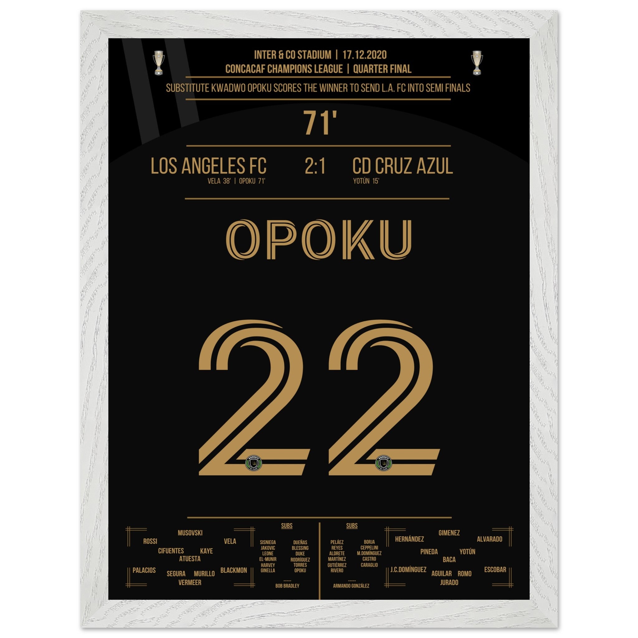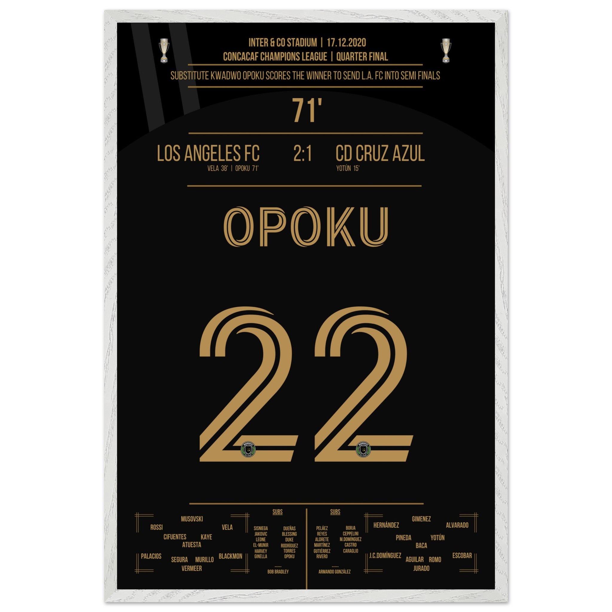 Opoku shoots Los Angeles FC into the semifinals against Cruz Azul.