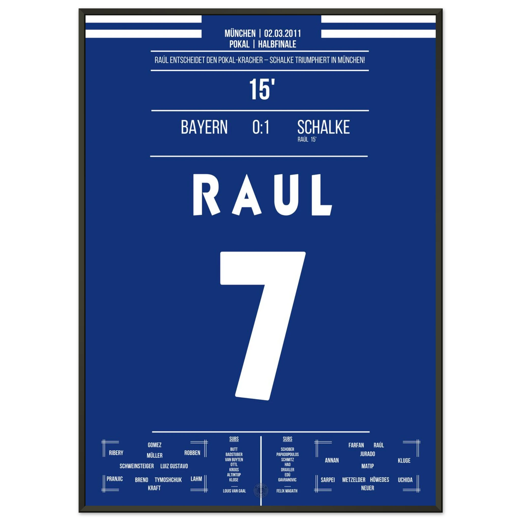 Im Pokal-Halbfinale in München schlägt die Stunde von Raúl. Der spanische Weltstar nutzt eine Unaufmerksamkeit der Bayern und trifft in der 15. Minute eiskalt – das einzige Tor des Abends. Schalke wirft den Favoriten raus und steht im Endspiel!