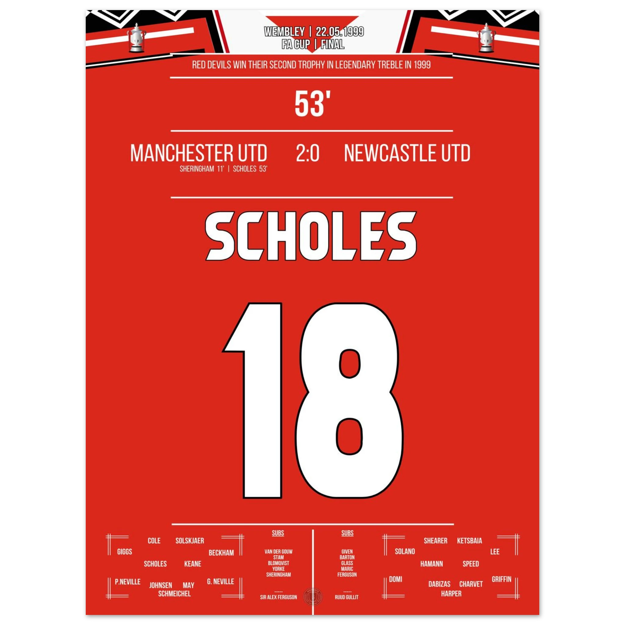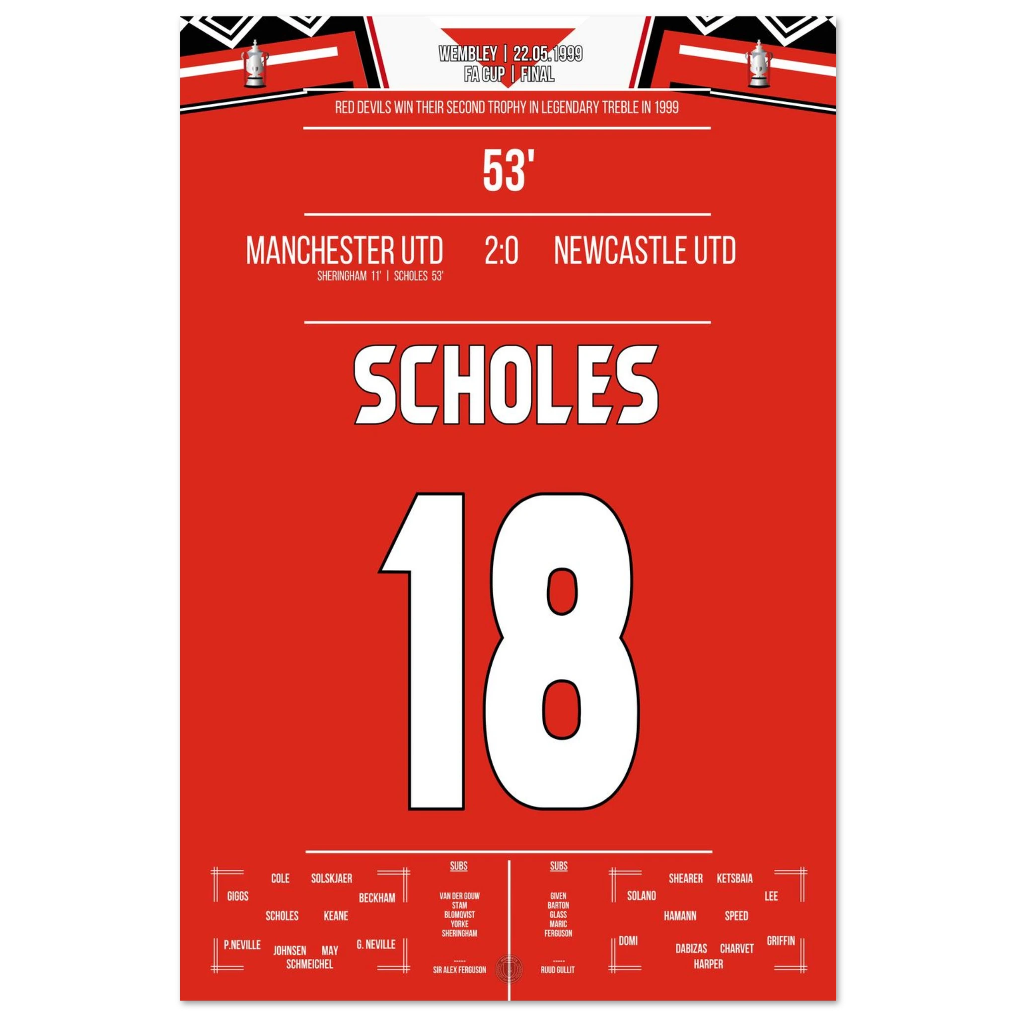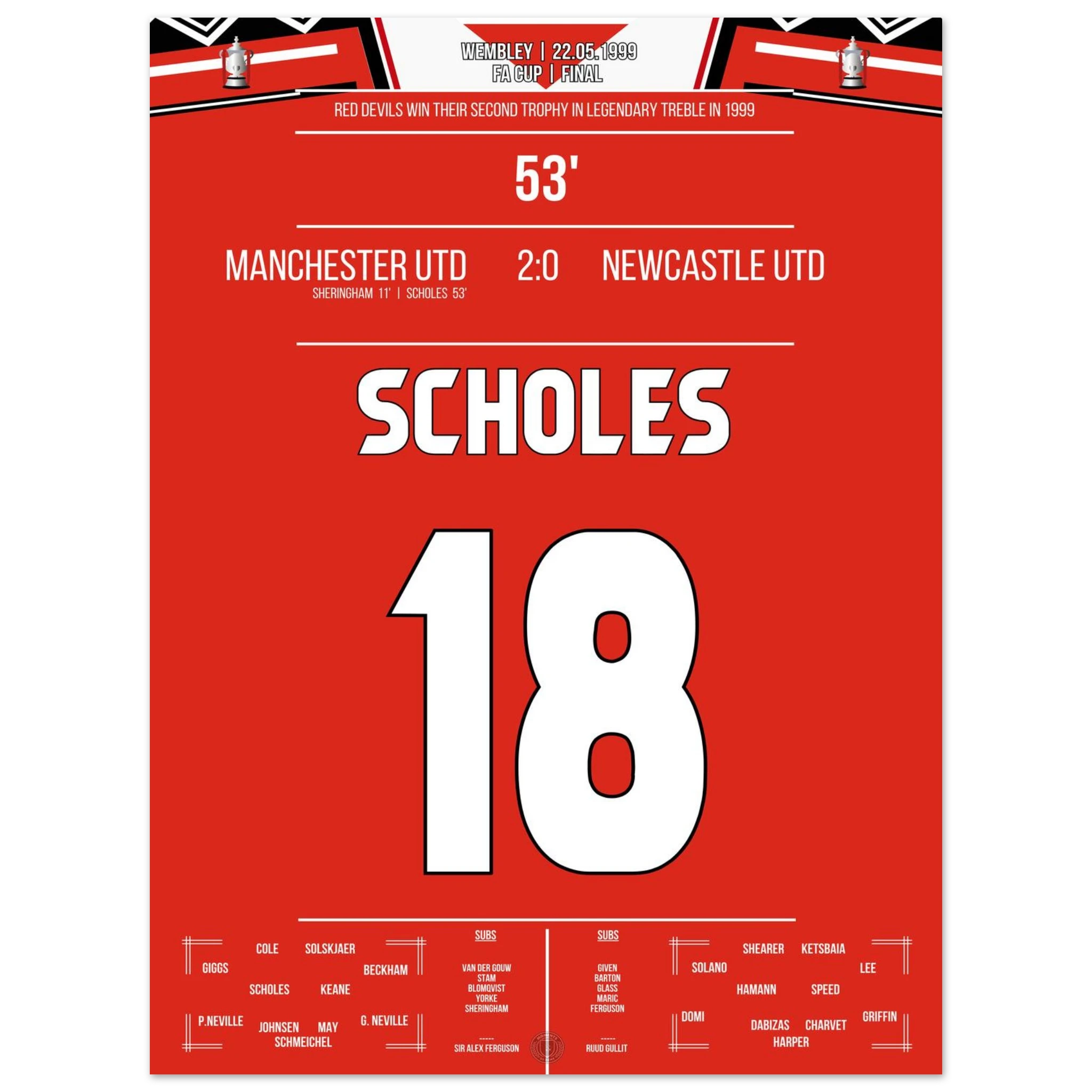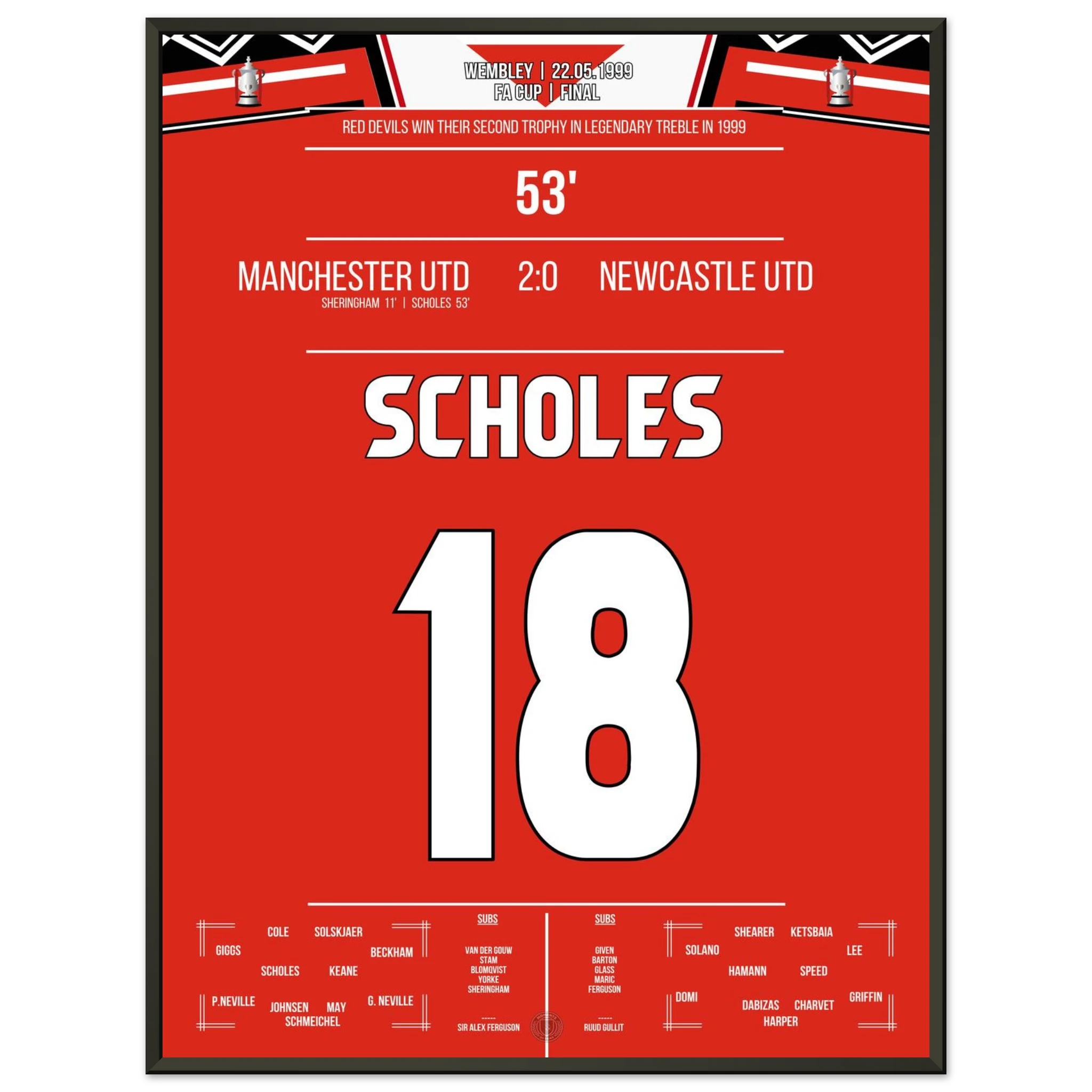 Scholes scores in United's cup triumph at Wembley in the treble season.