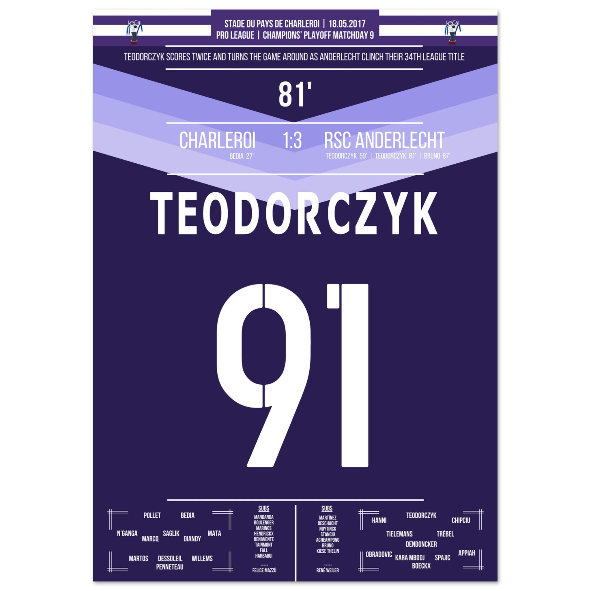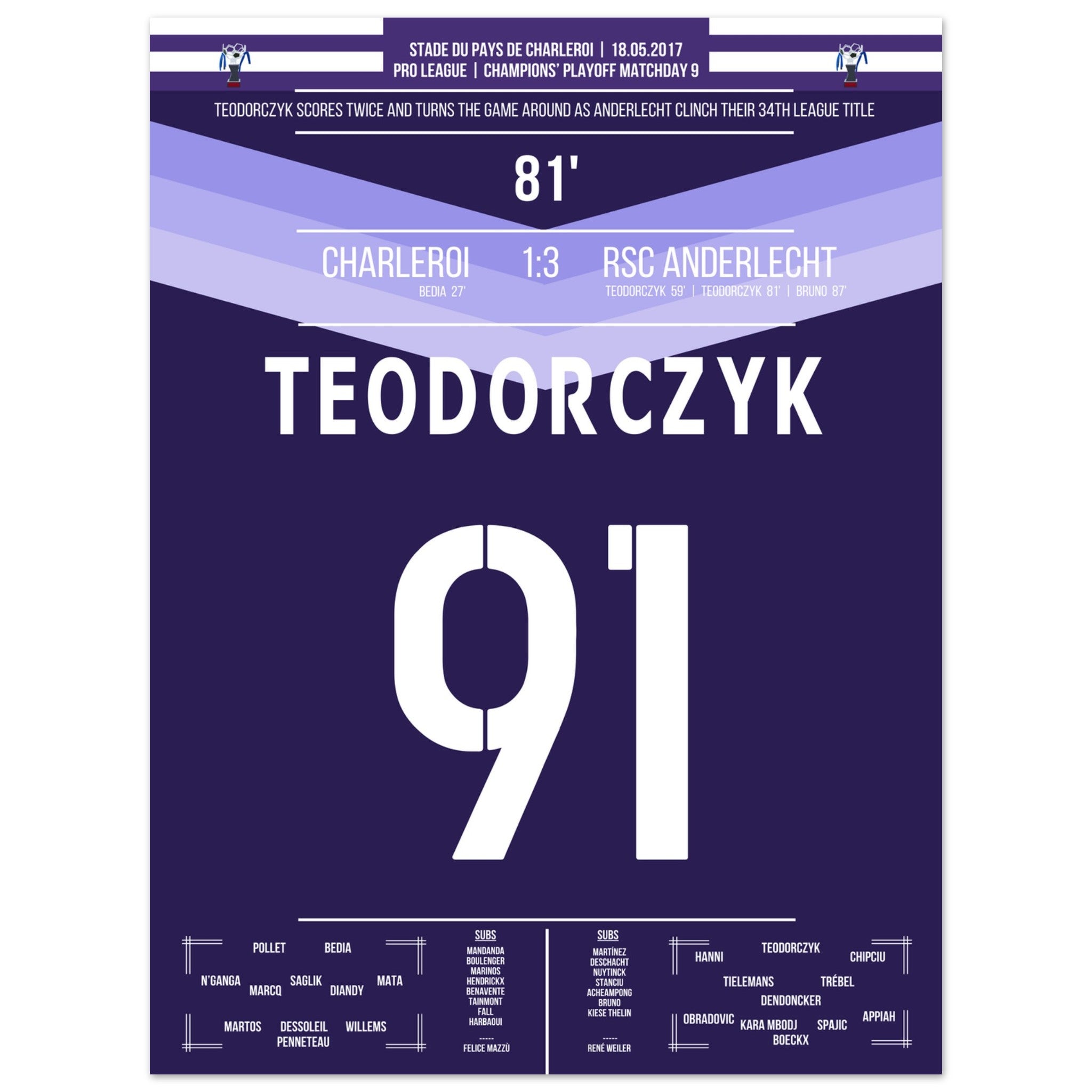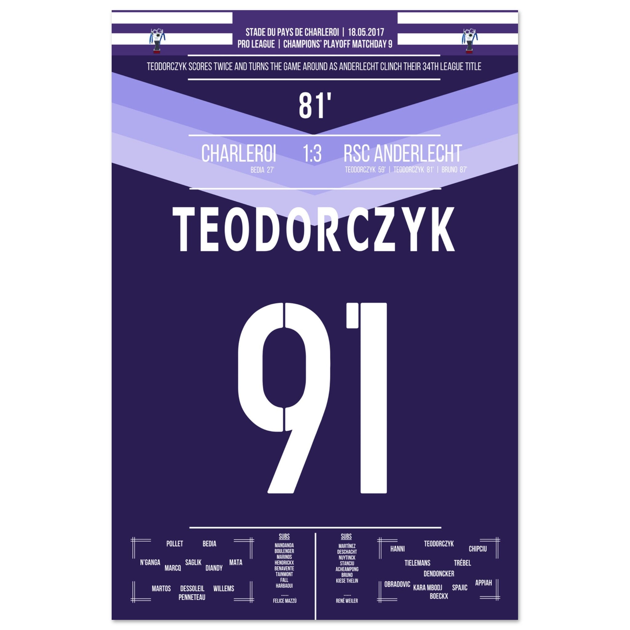 Teodorczyk shoots Anderlecht to the 34th championship.