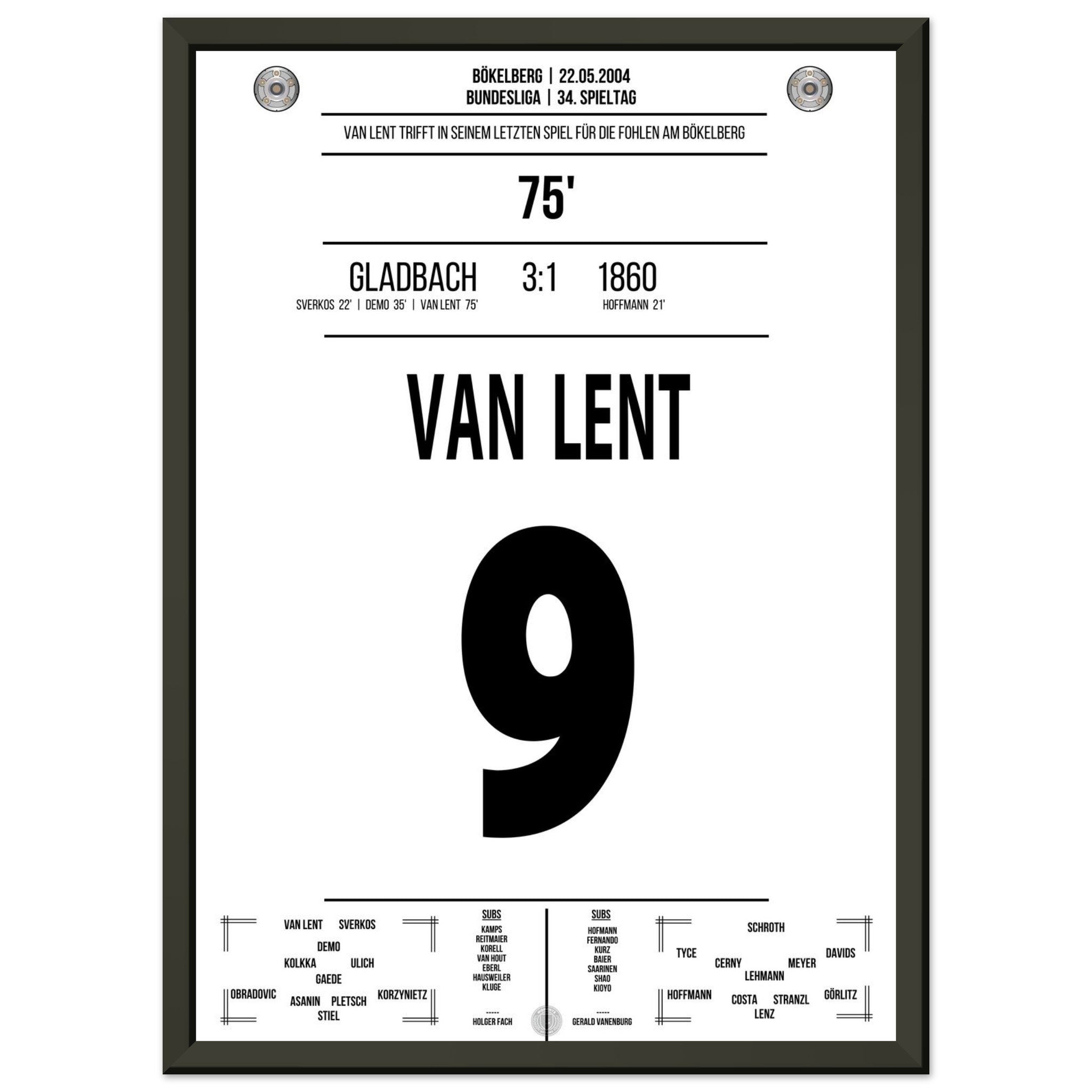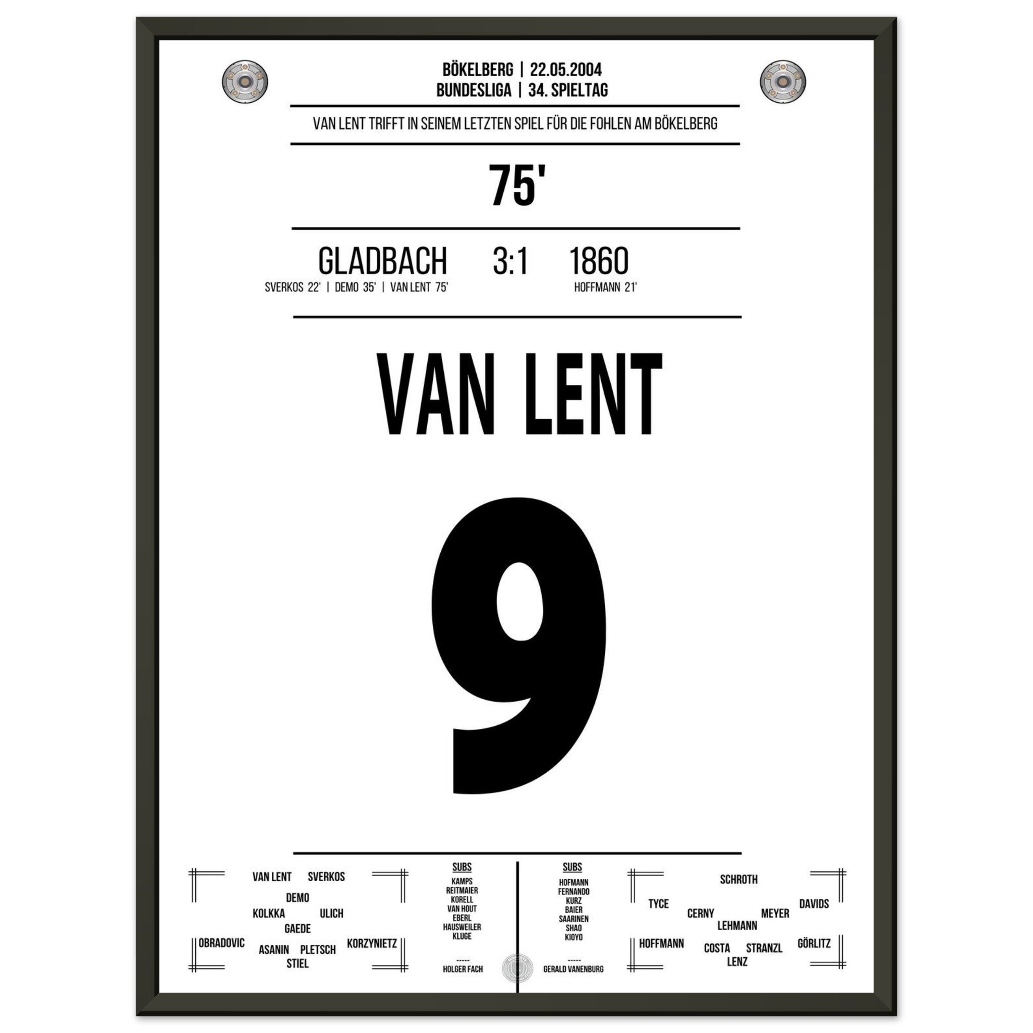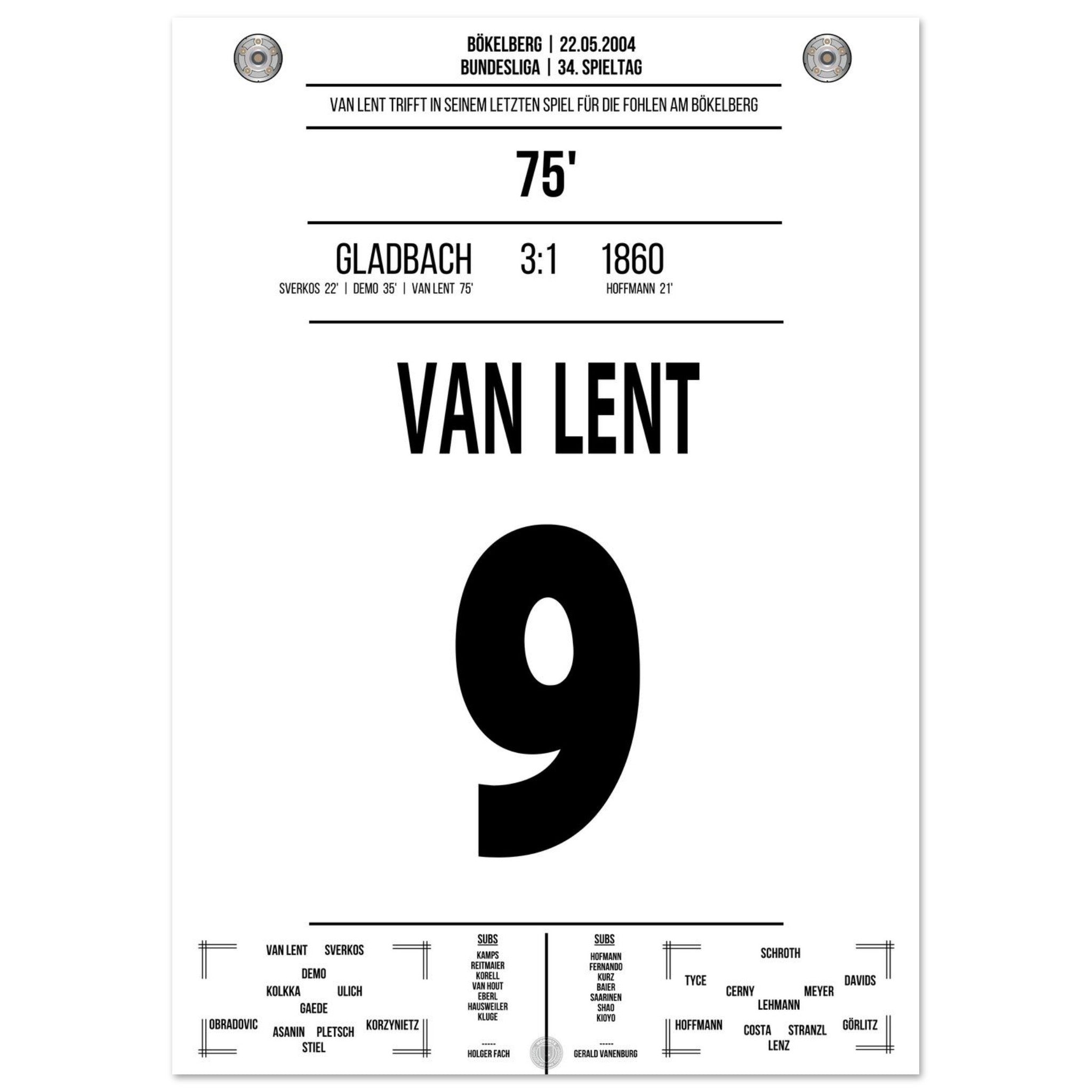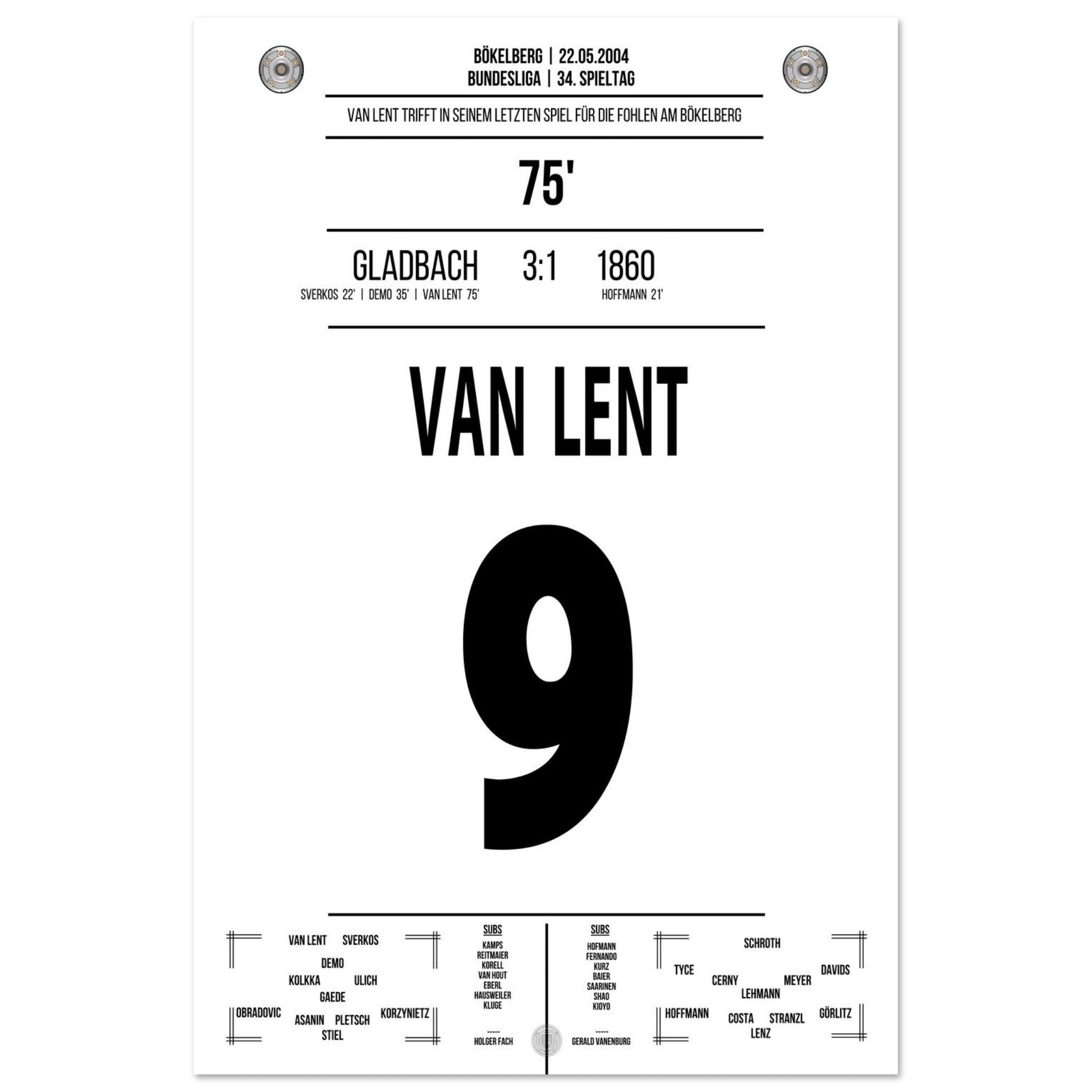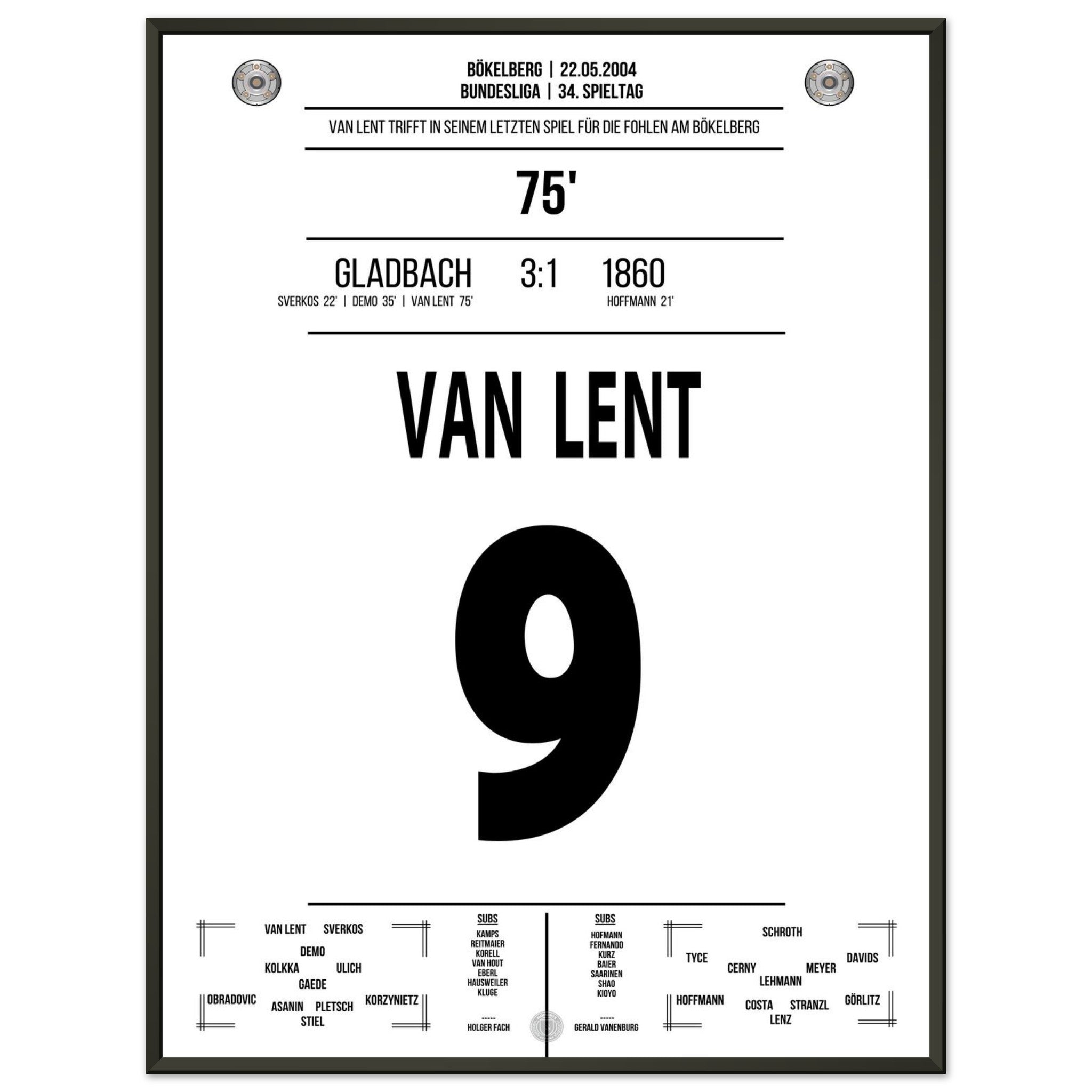 Van Lent scores in his last game for the Foals at Bökelberg.