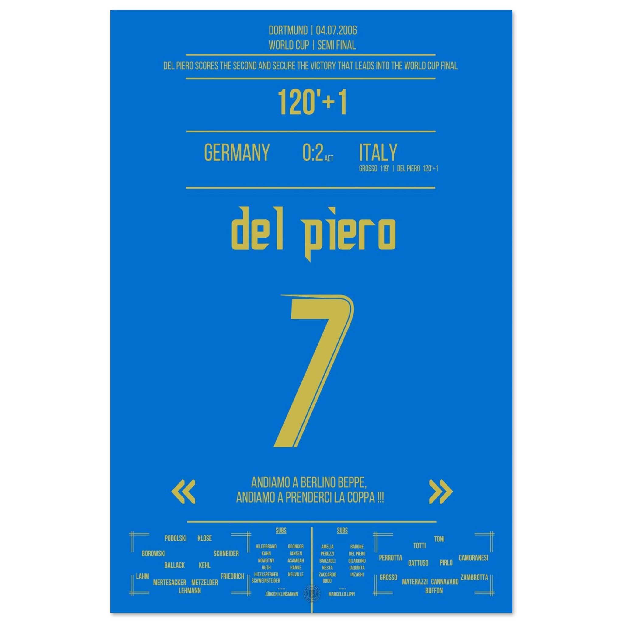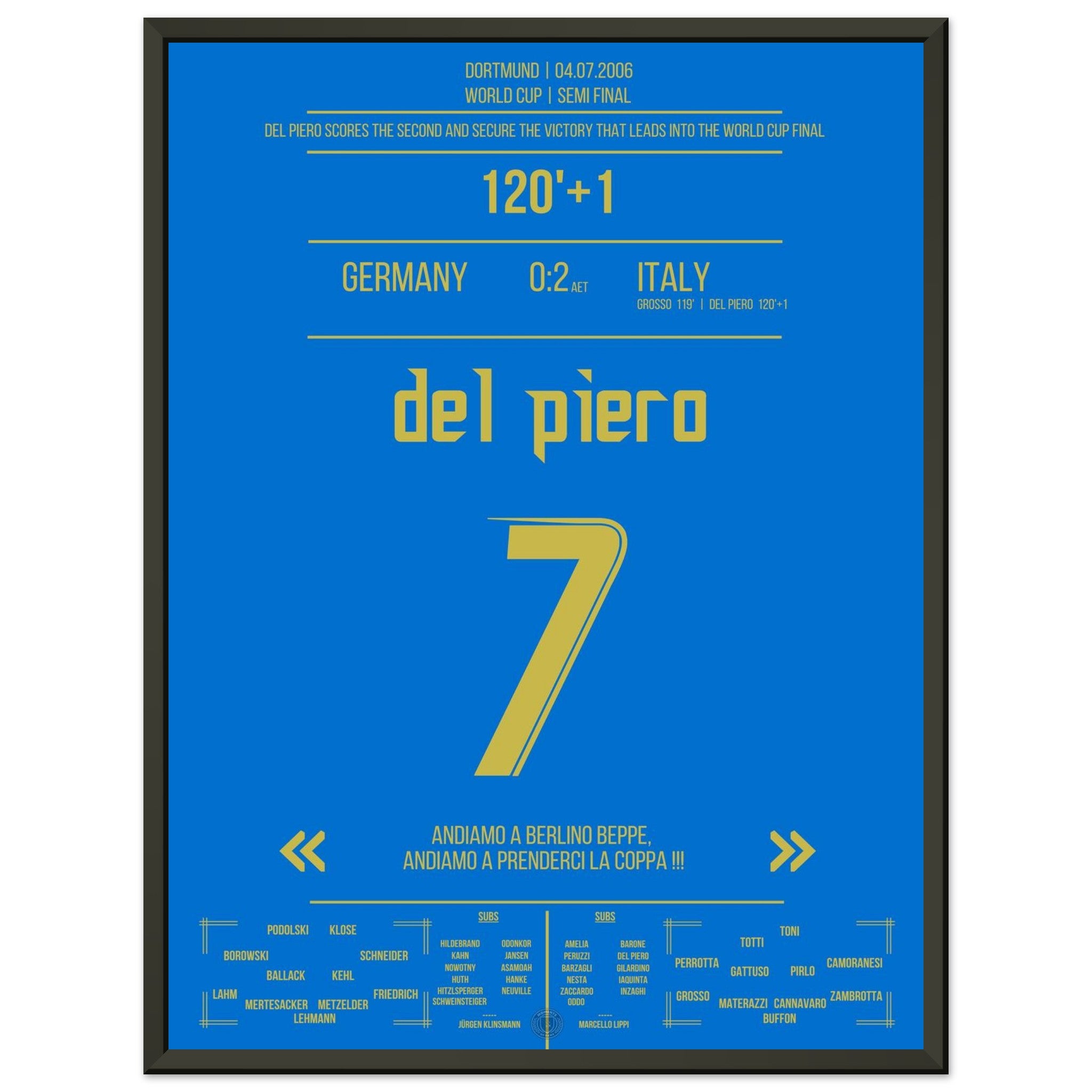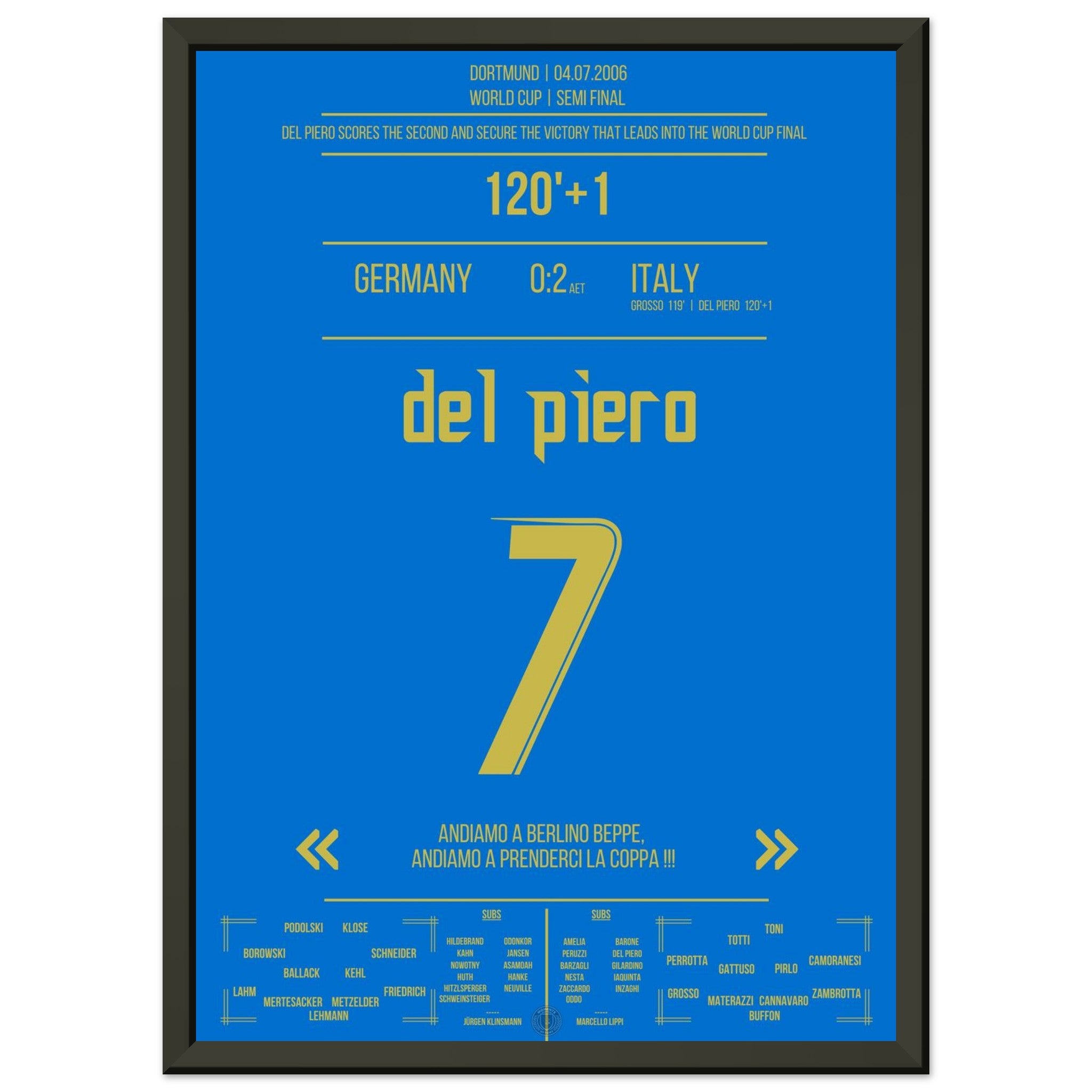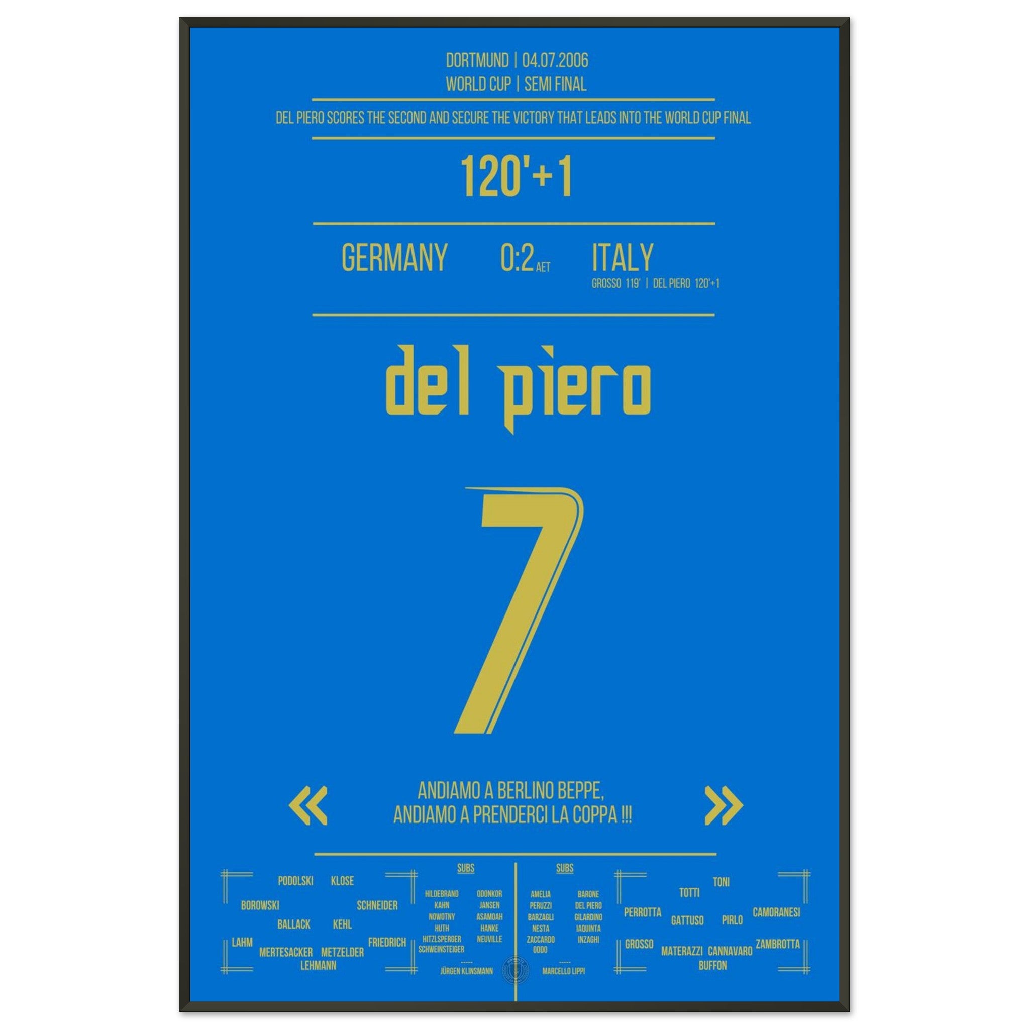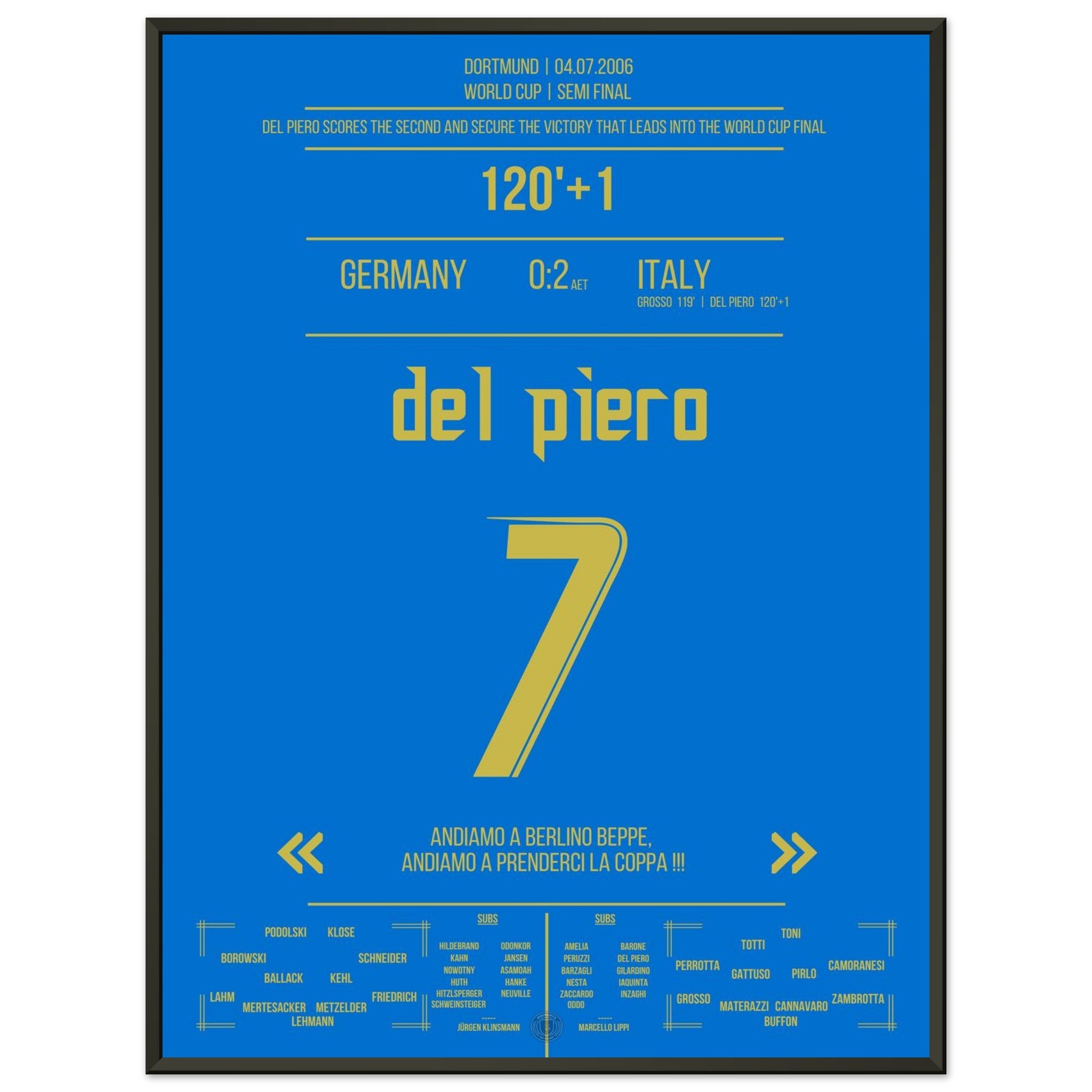 Voici notre impression premium de ce moment de football inoubliable pour une expérience de fan ultime. Imprimée sur du papier de qualité supérieure semi-brillant et épais, cette œuvre d'art brille par ses couleurs rehaussées et son éclat subtil qui fait ressortir chaque détail.