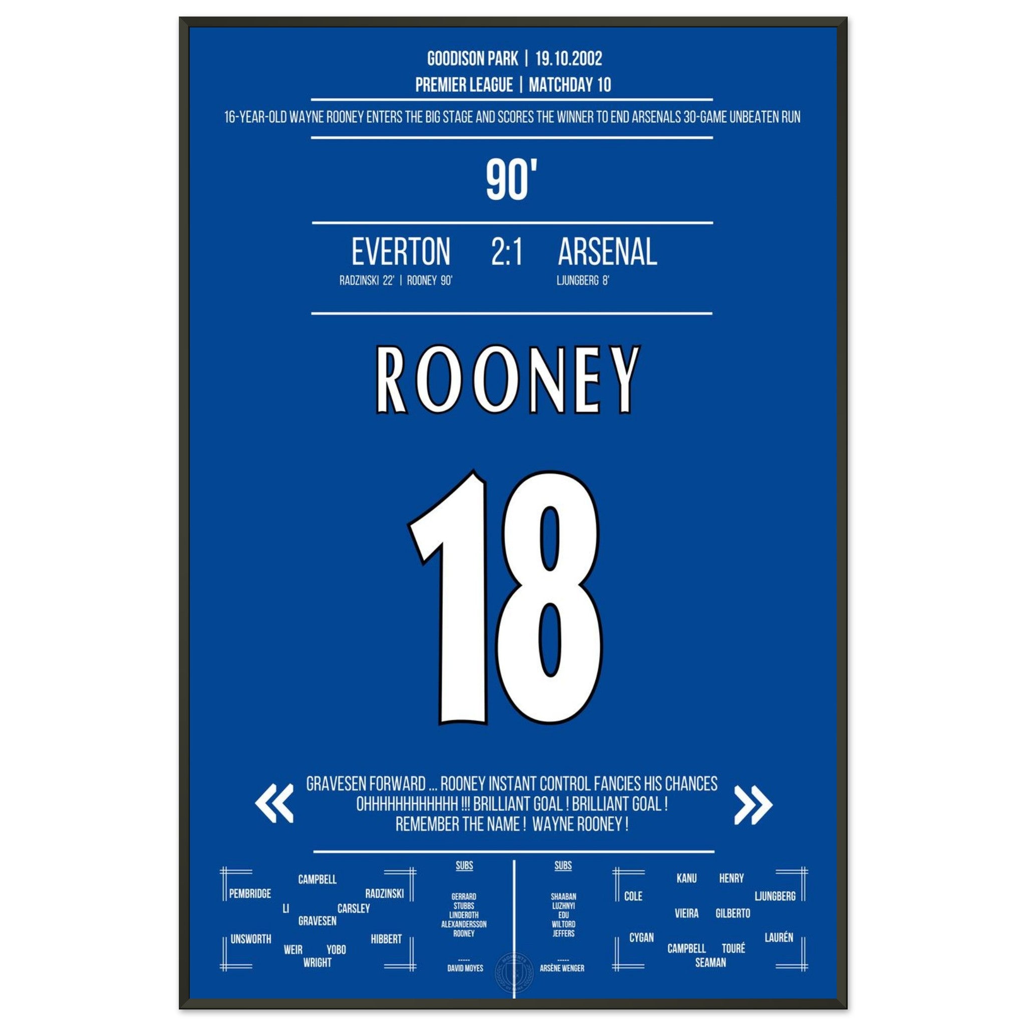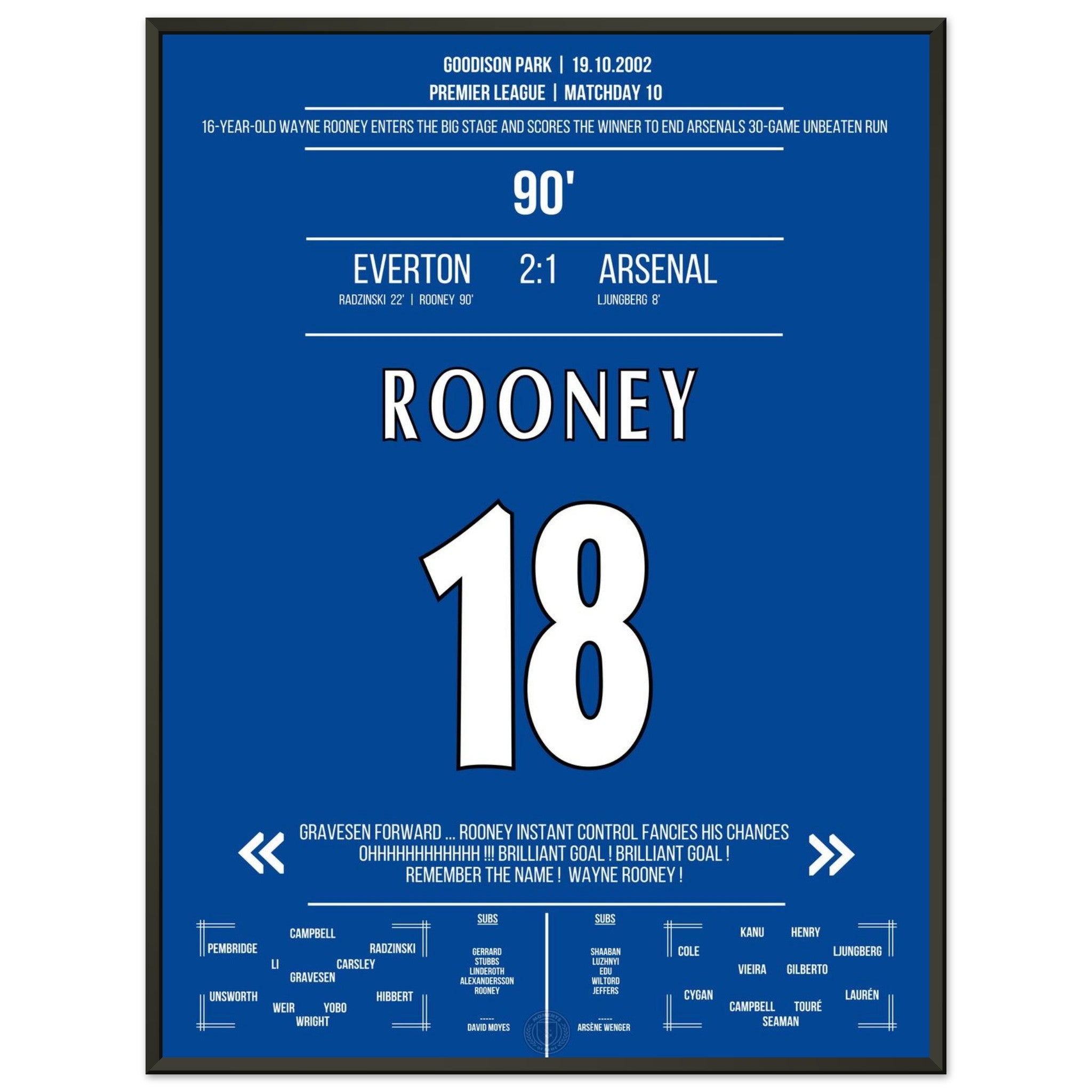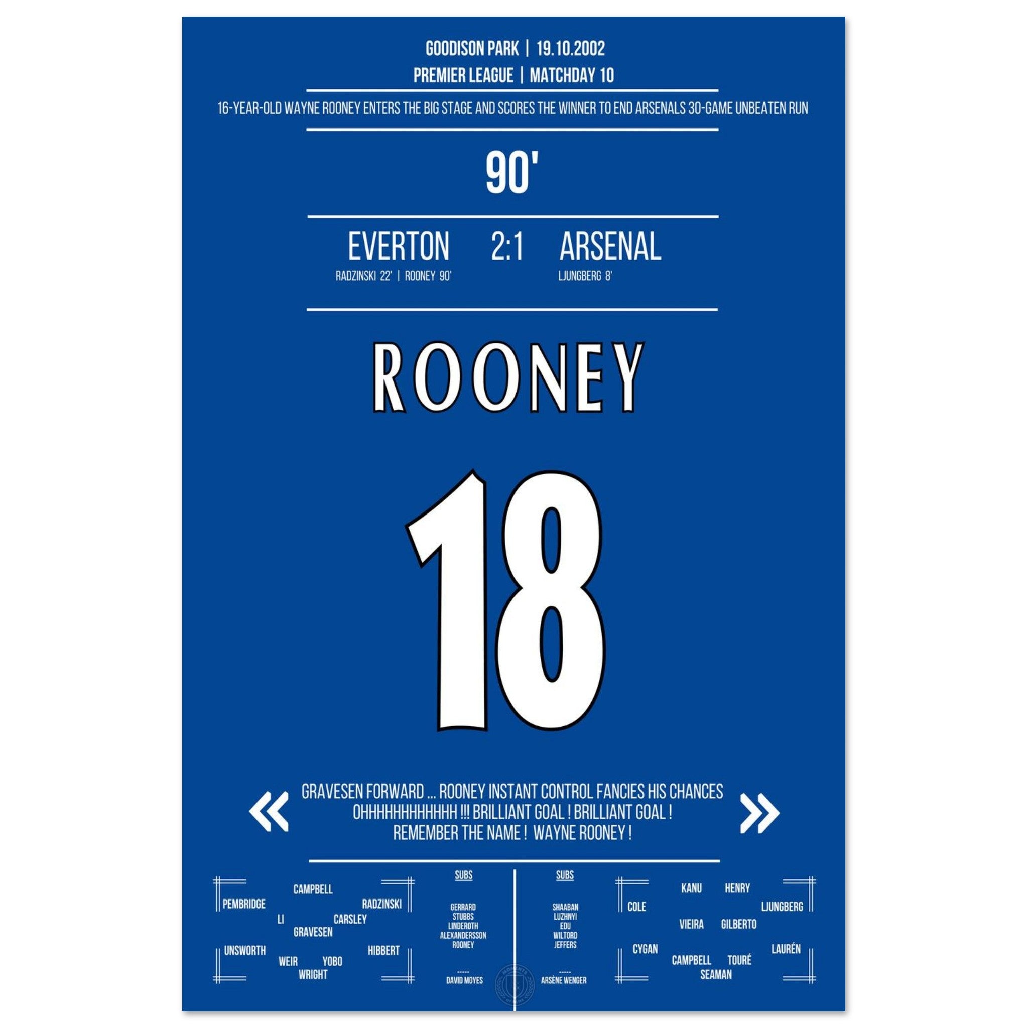Wayne Rooney zündet in der 90. Minute einen Geniestreich aus der Distanz – und beendet Arsenals 30-Spiele-Serie ohne Niederlage. „Remember the name!“ – der Beginn einer legendären Karriere.