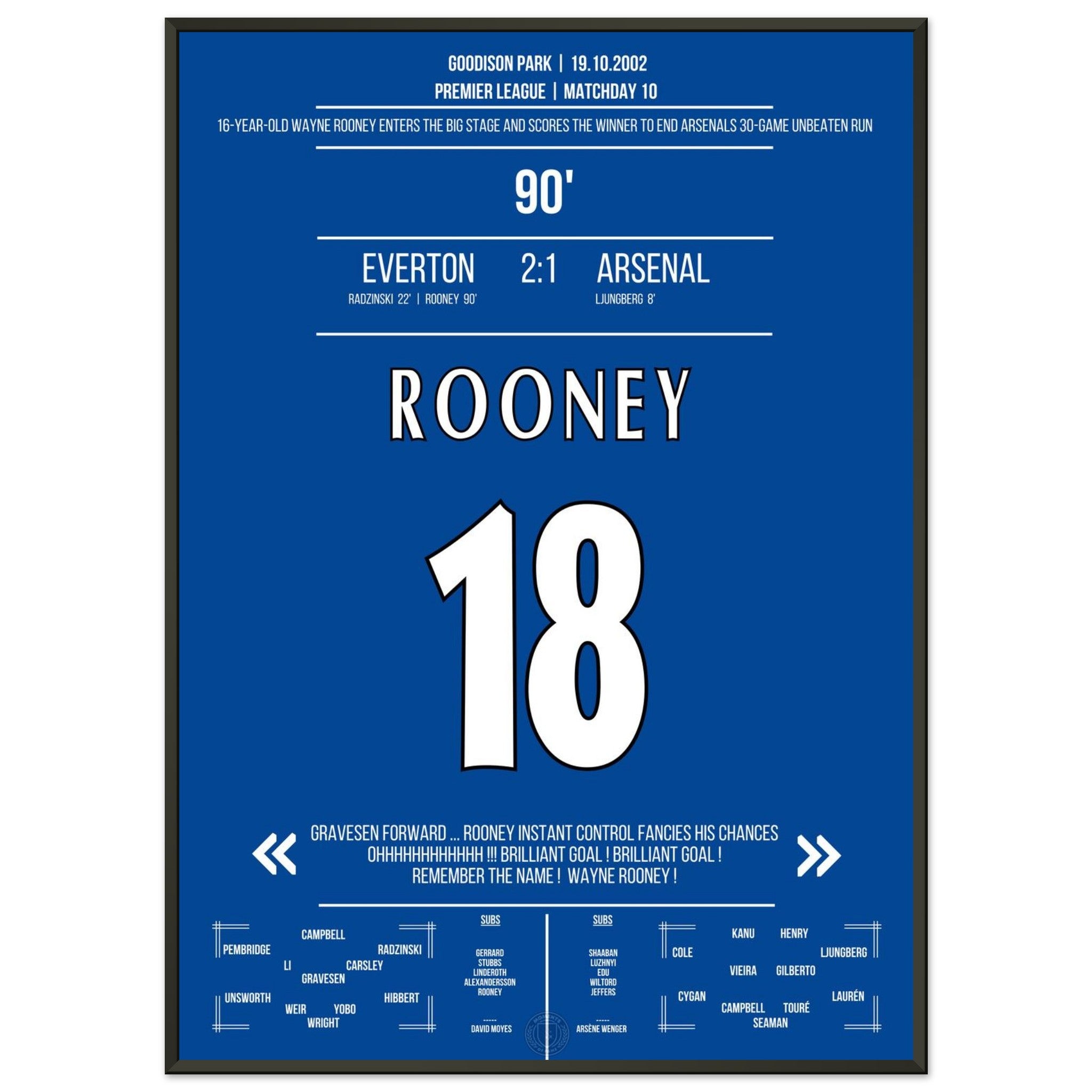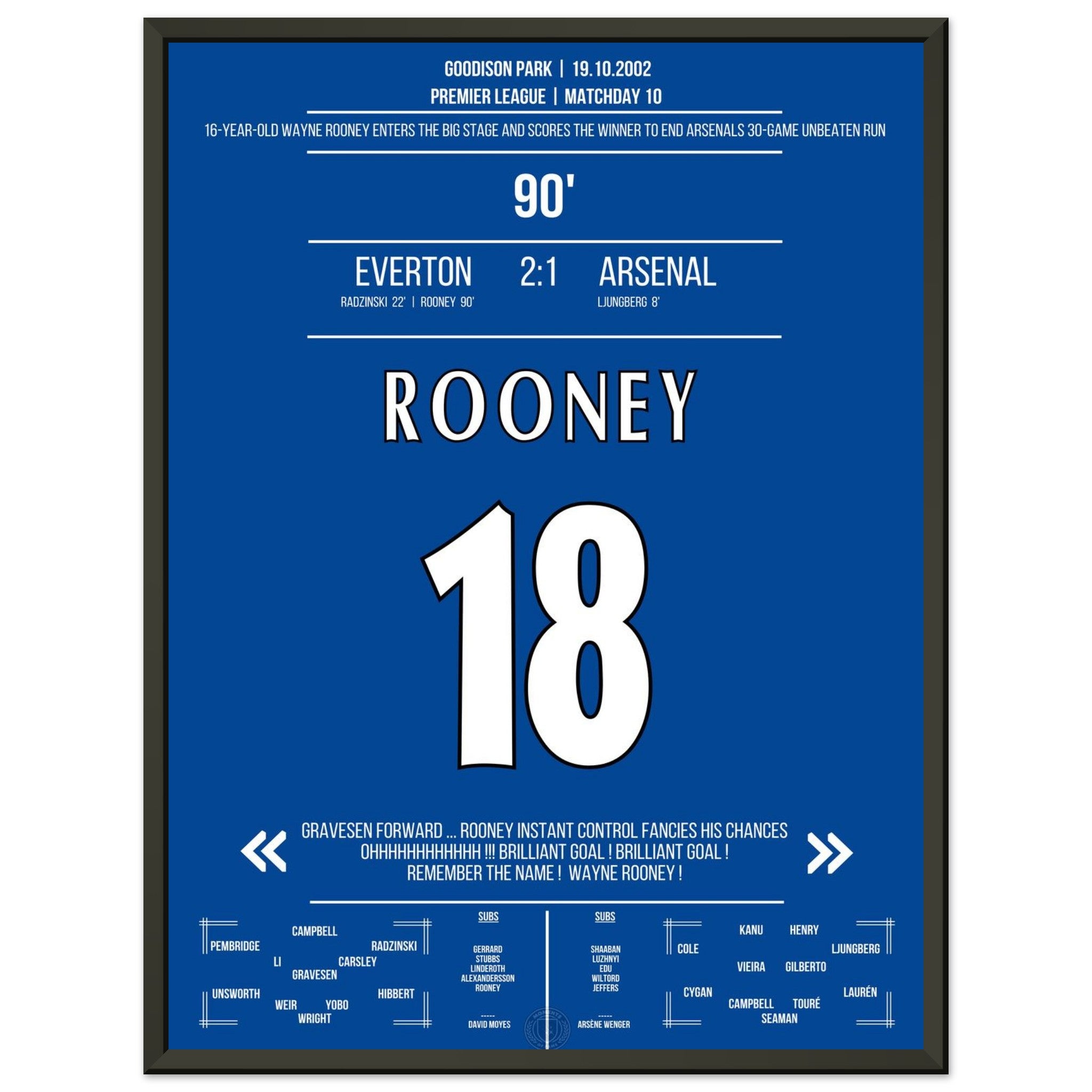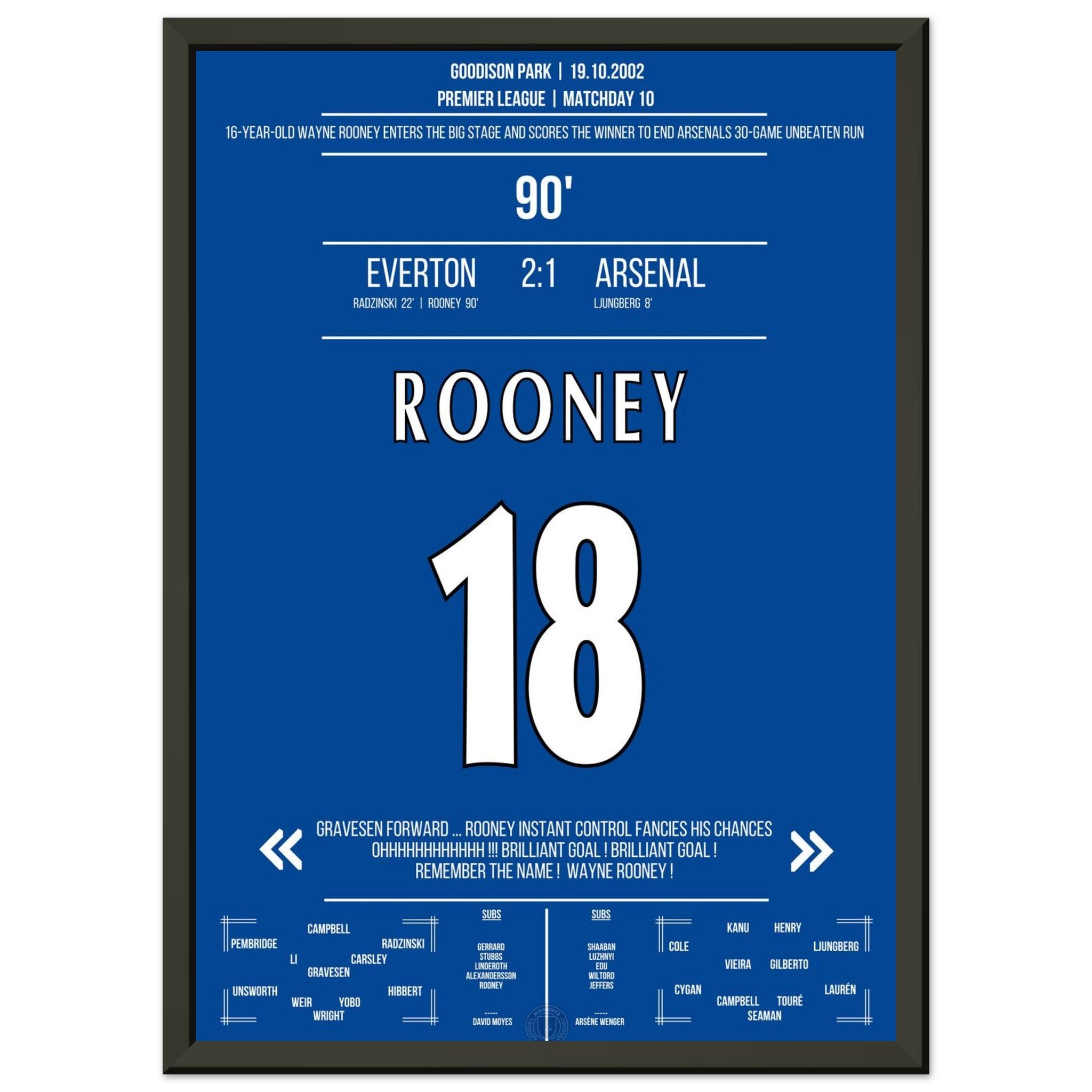 Wayne Rooney zündet in der 90. Minute einen Geniestreich aus der Distanz – und beendet Arsenals 30-Spiele-Serie ohne Niederlage. „Remember the name!“ – der Beginn einer legendären Karriere.