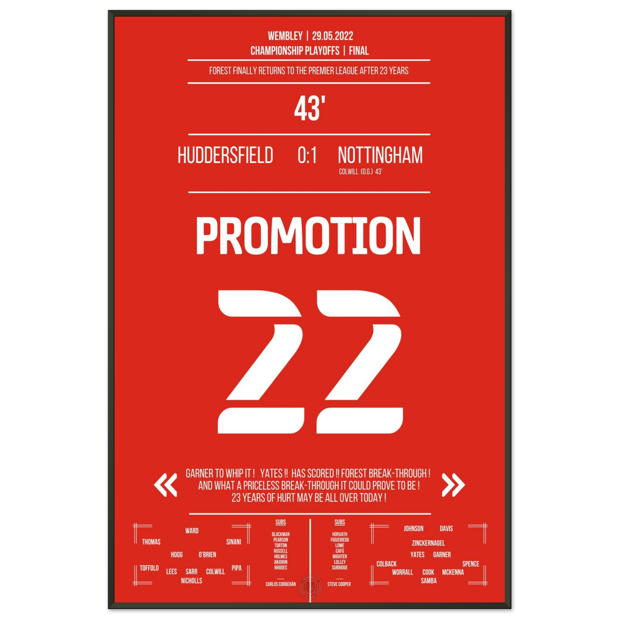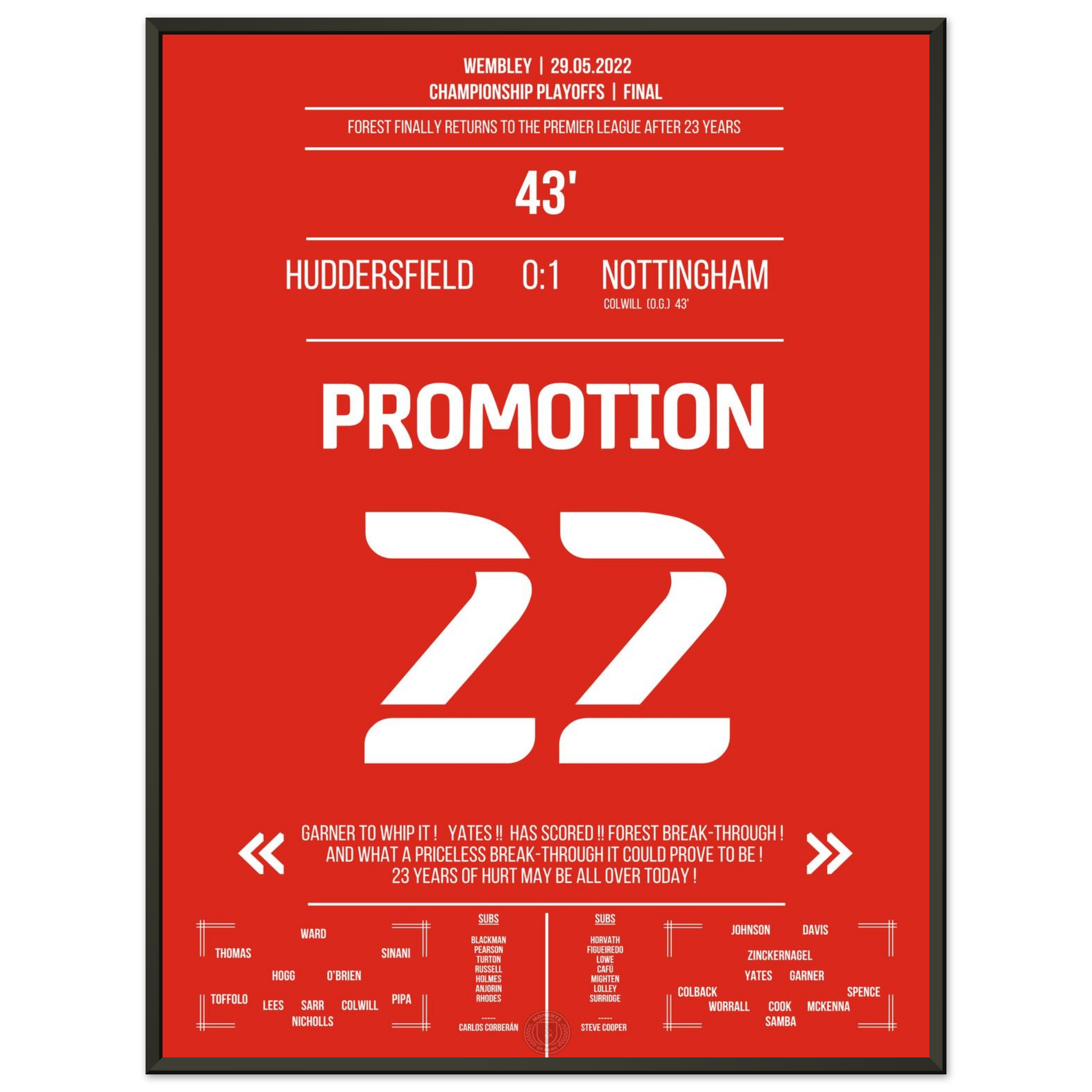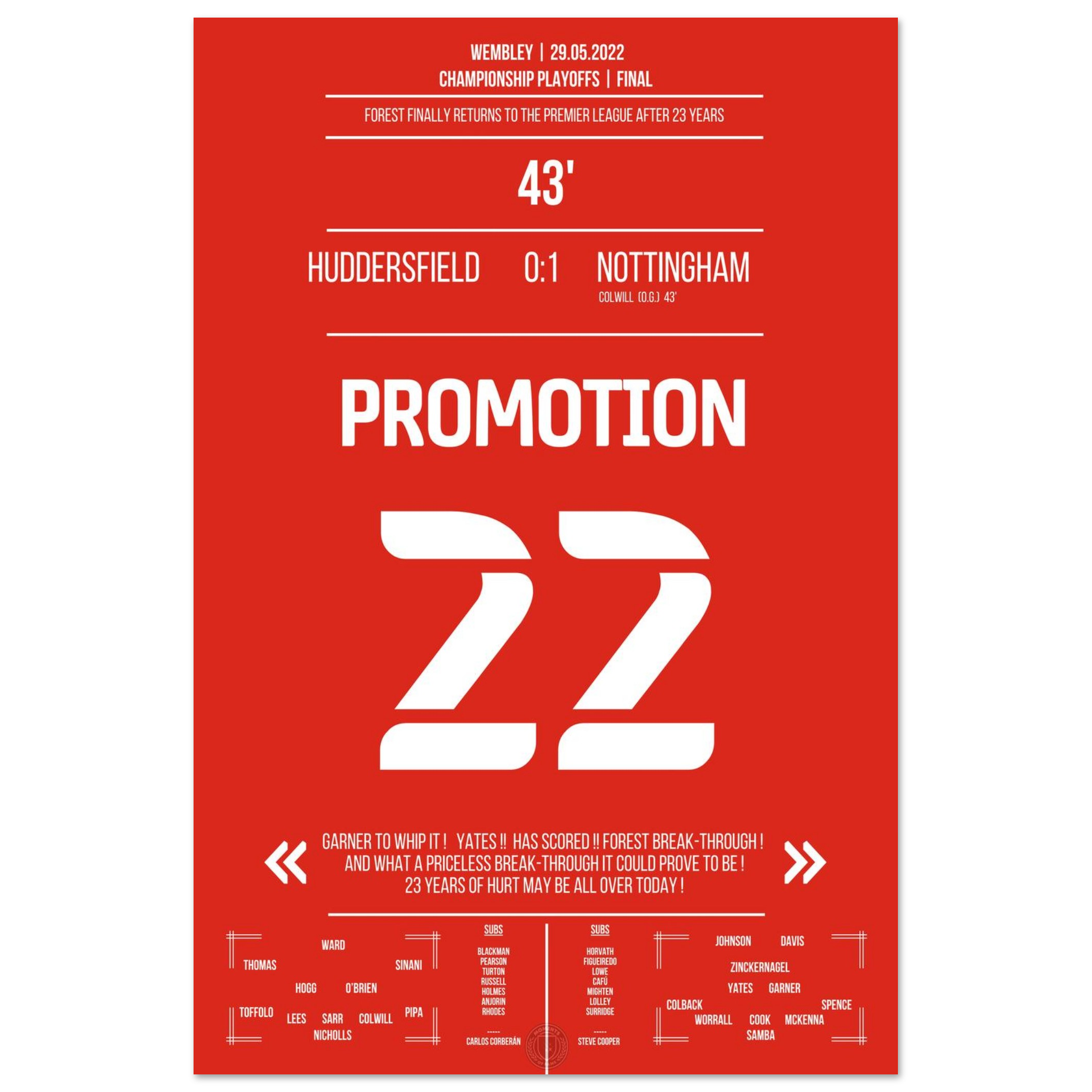29. Mai 2022 – Huddersfield vs. Nottingham 0:1 – Rückkehr auf die große Bühne! ⚽