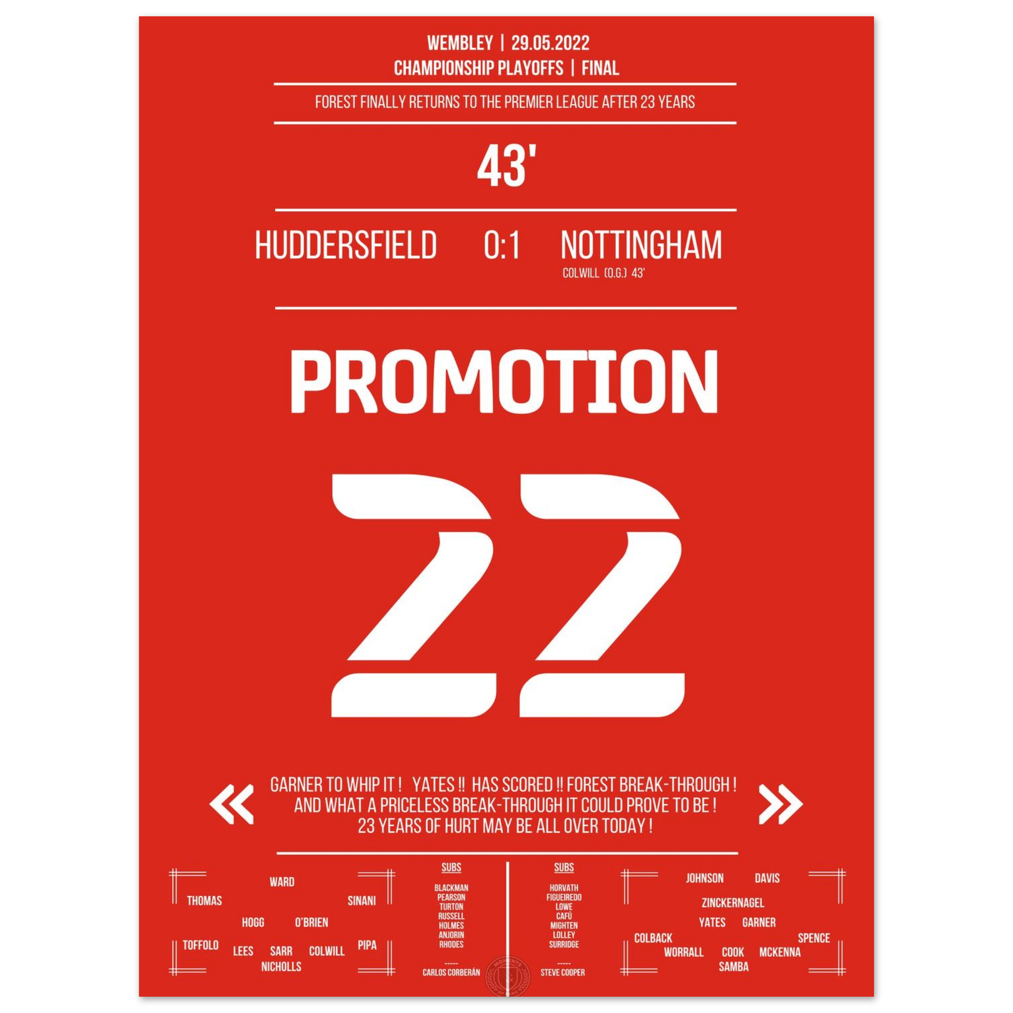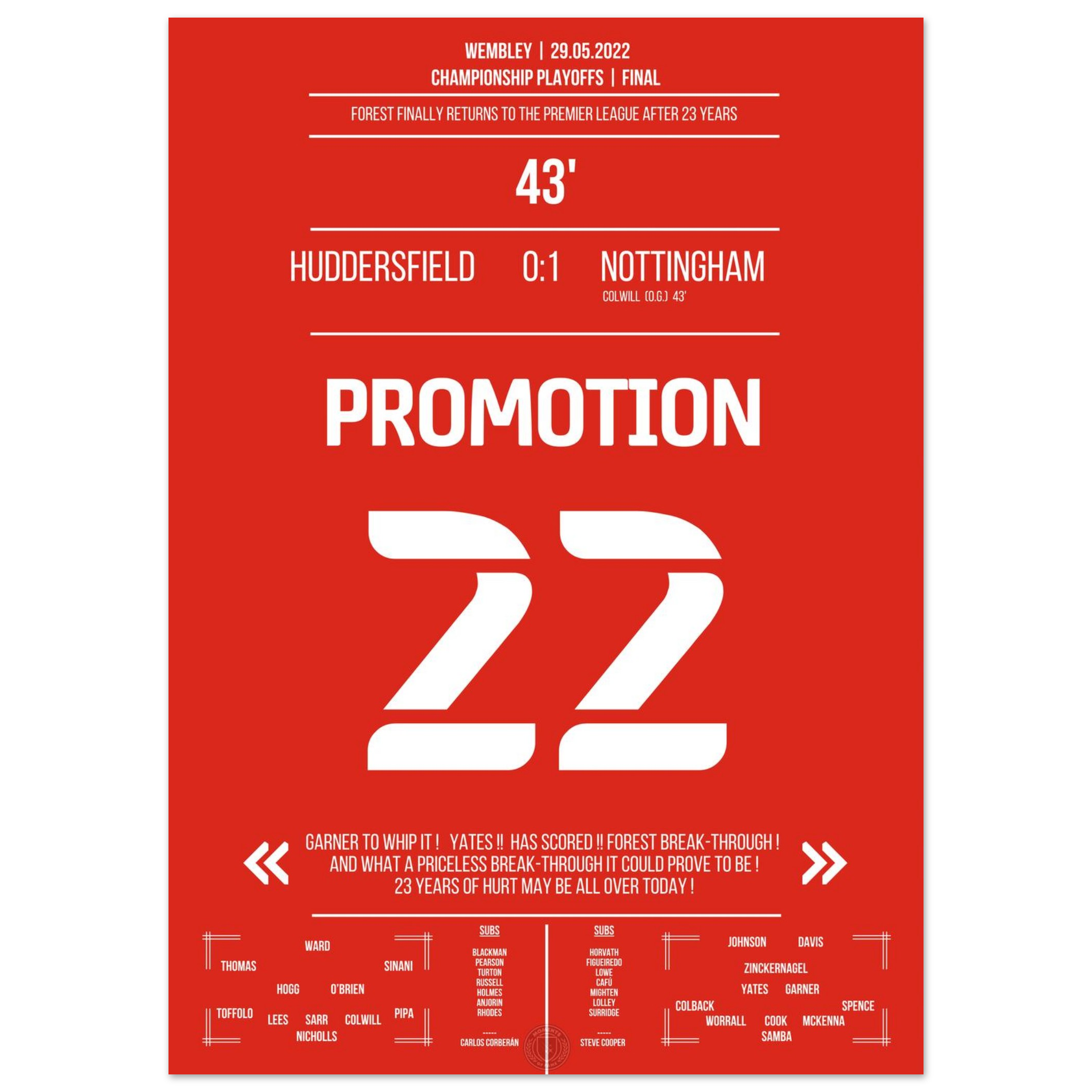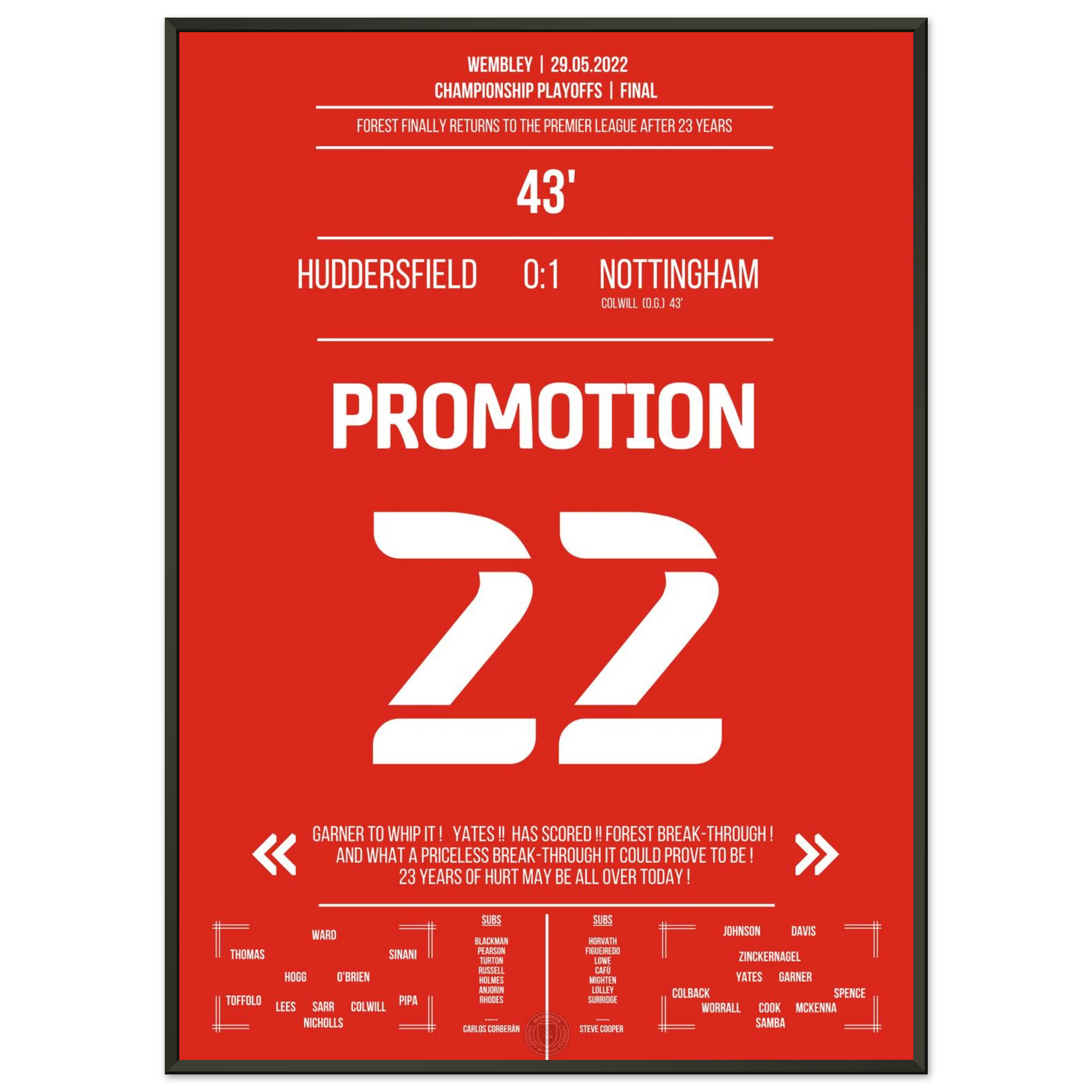 29. Mai 2022 – Huddersfield vs. Nottingham 0:1 – Rückkehr auf die große Bühne! ⚽