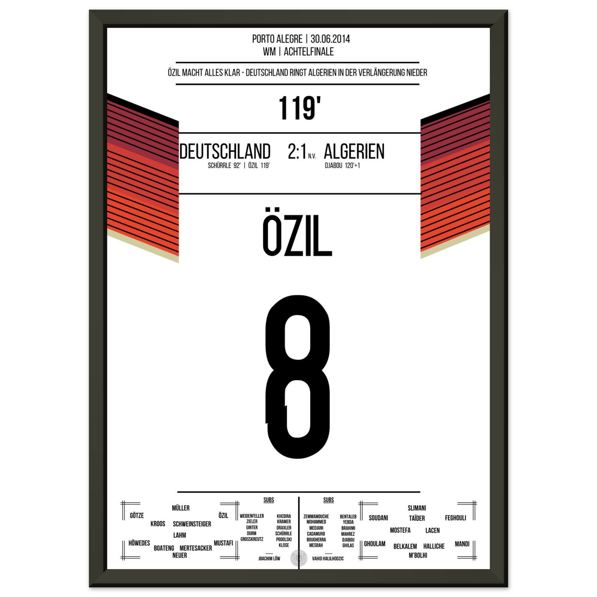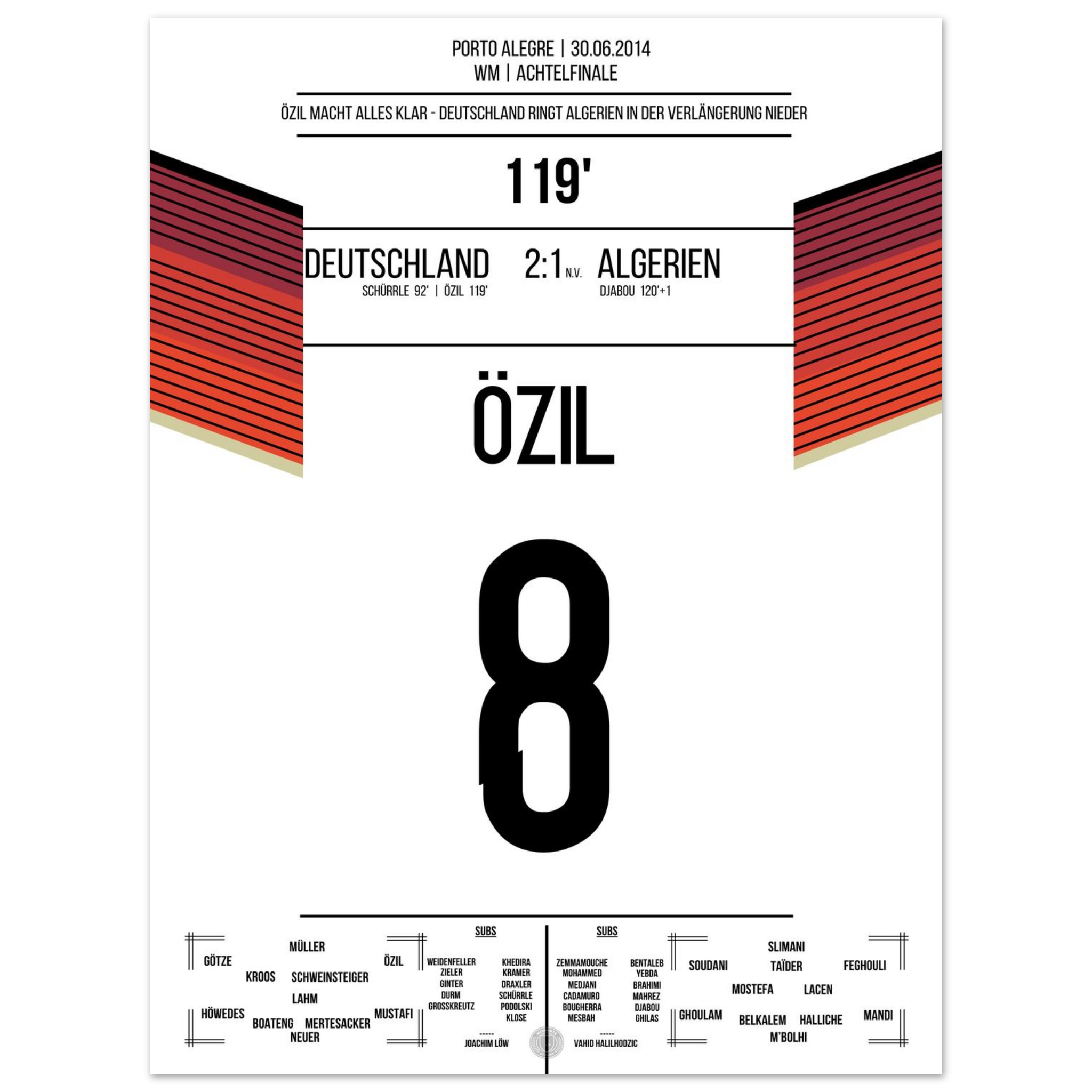 Ein Spiel voller Drama und unerwarteter Wendungen: Algerien fordert Deutschland mit mutigem Offensivspiel und bringt die Defensive immer wieder in Bedrängnis. Torhüter Manuel Neuer glänzt als „Libero“ und verhindert mehrfach den Rückstand. Erst in der Verlängerung bricht André Schürrle den Bann (92.), Mesut Özil legt nach (119.), ehe Algerien noch verkürzt. Deutschland zittert sich ins Viertelfinale.
