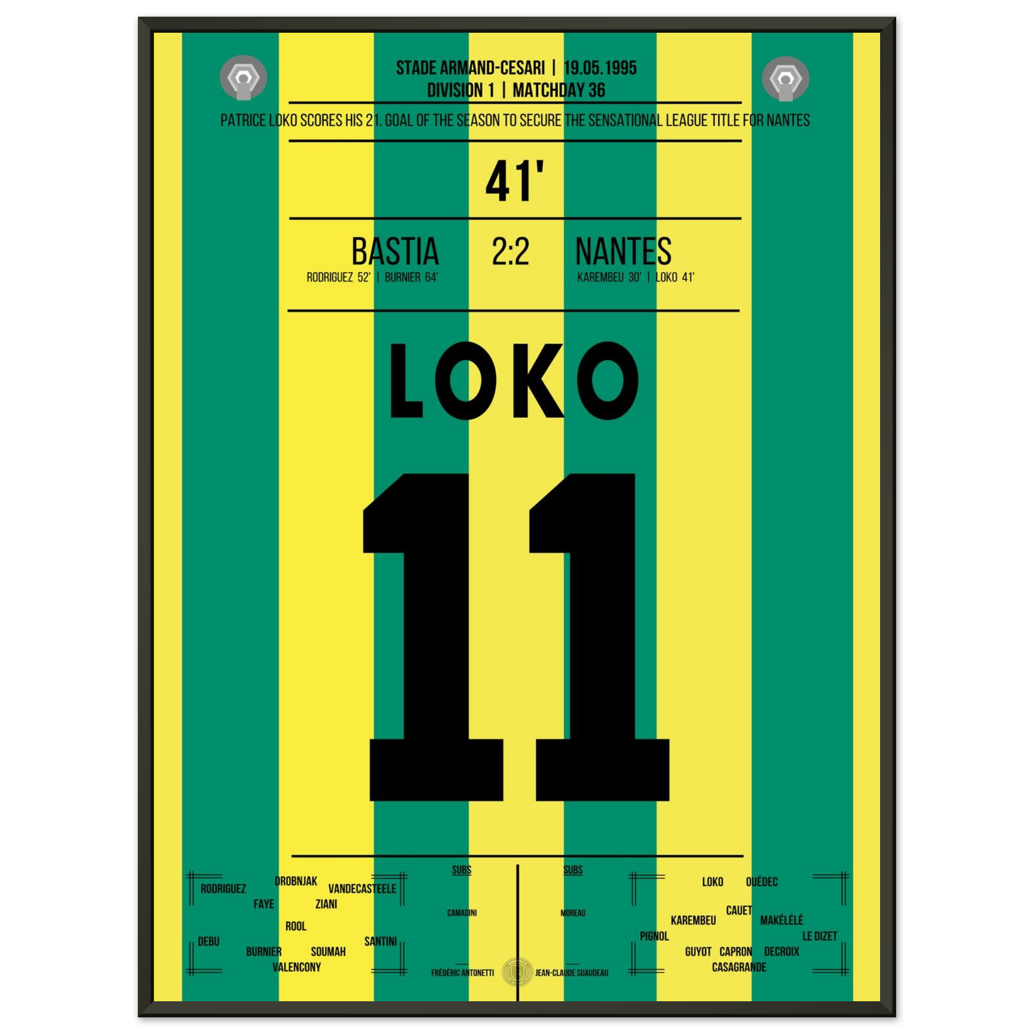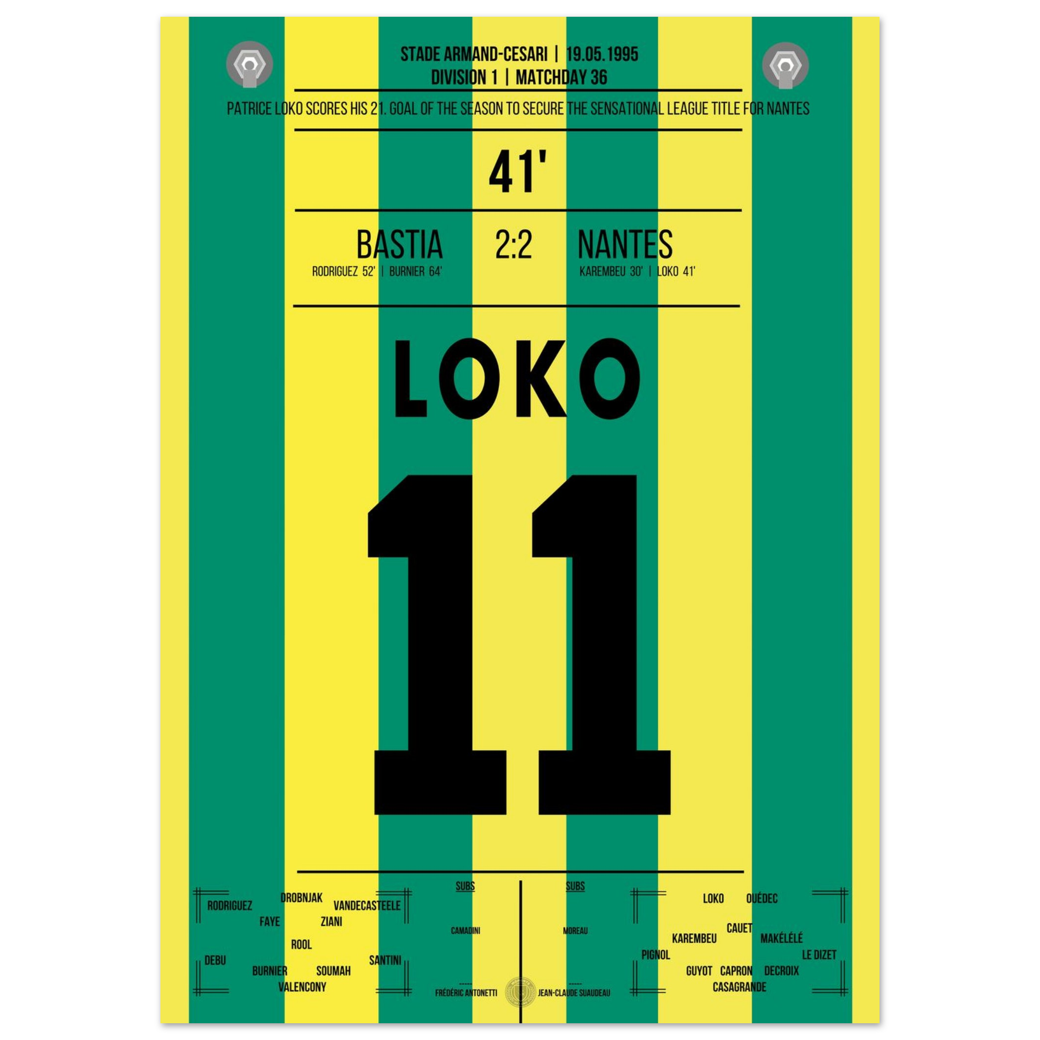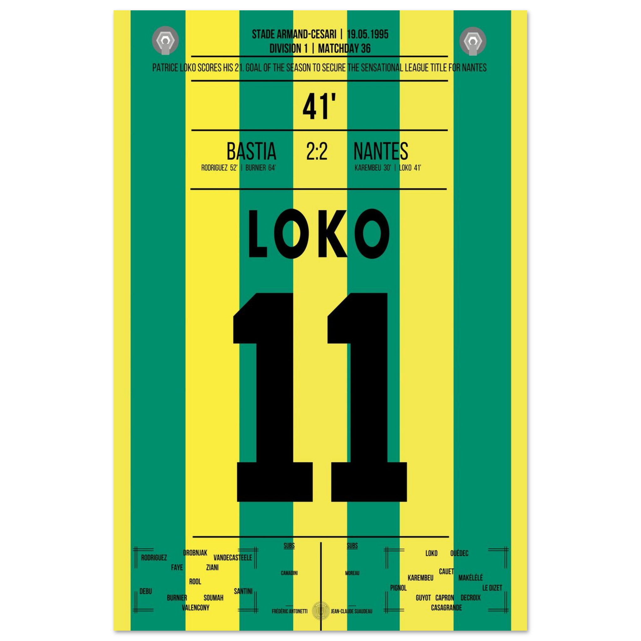 Patrice Loko trifft und Nantes feiert die Meisterschaft 1995 in Bastia