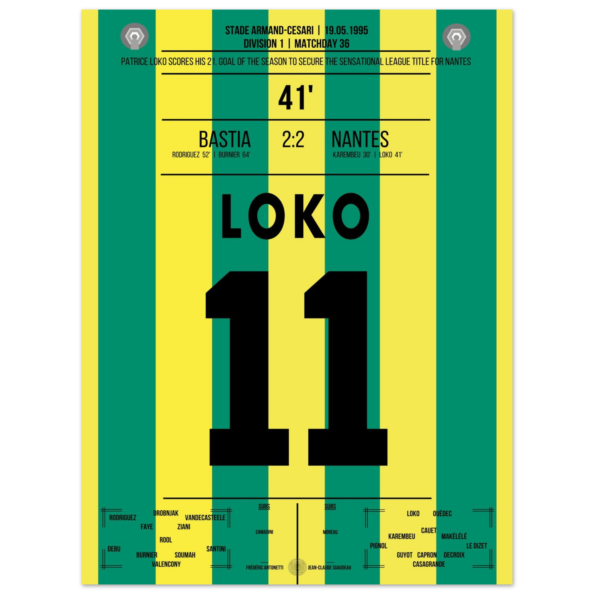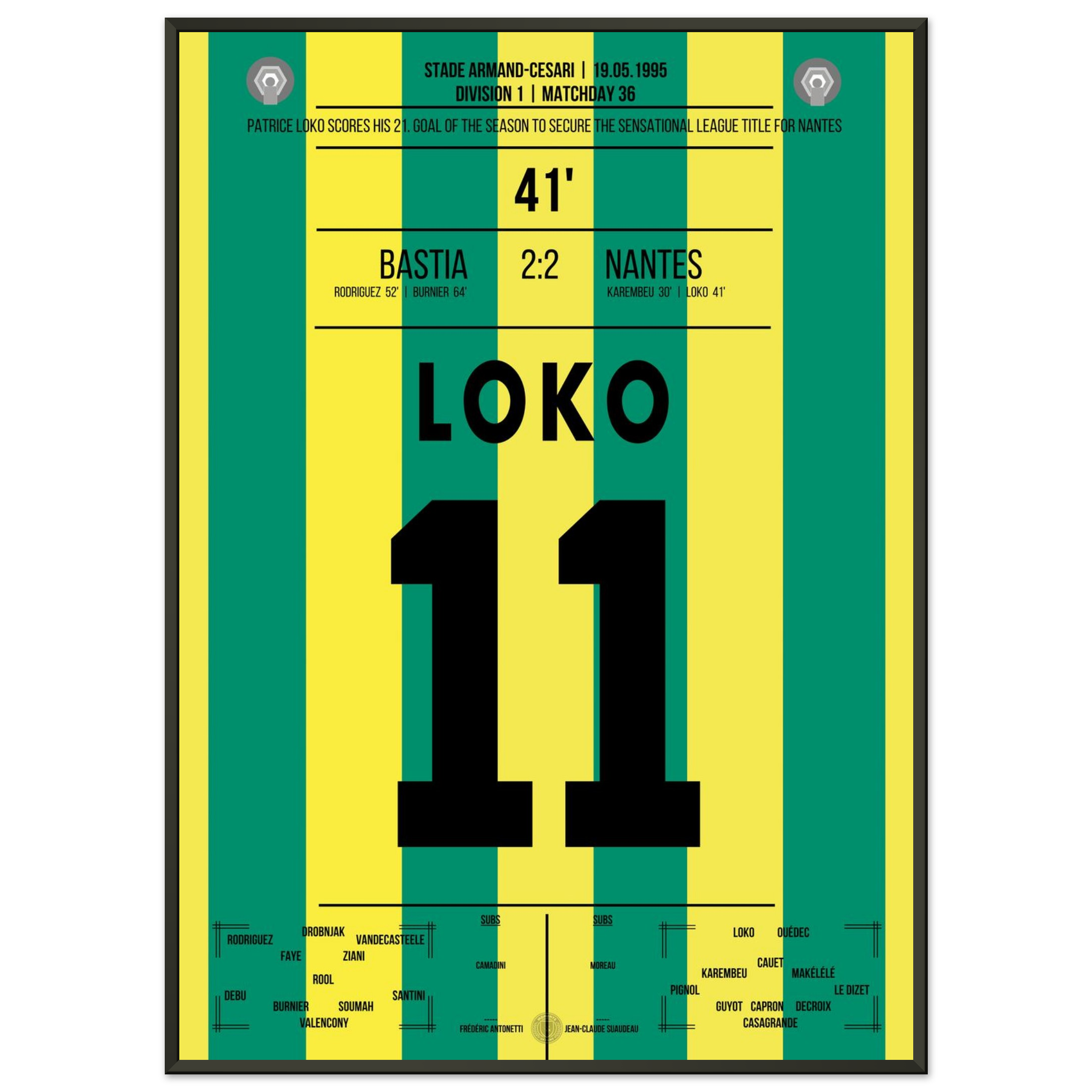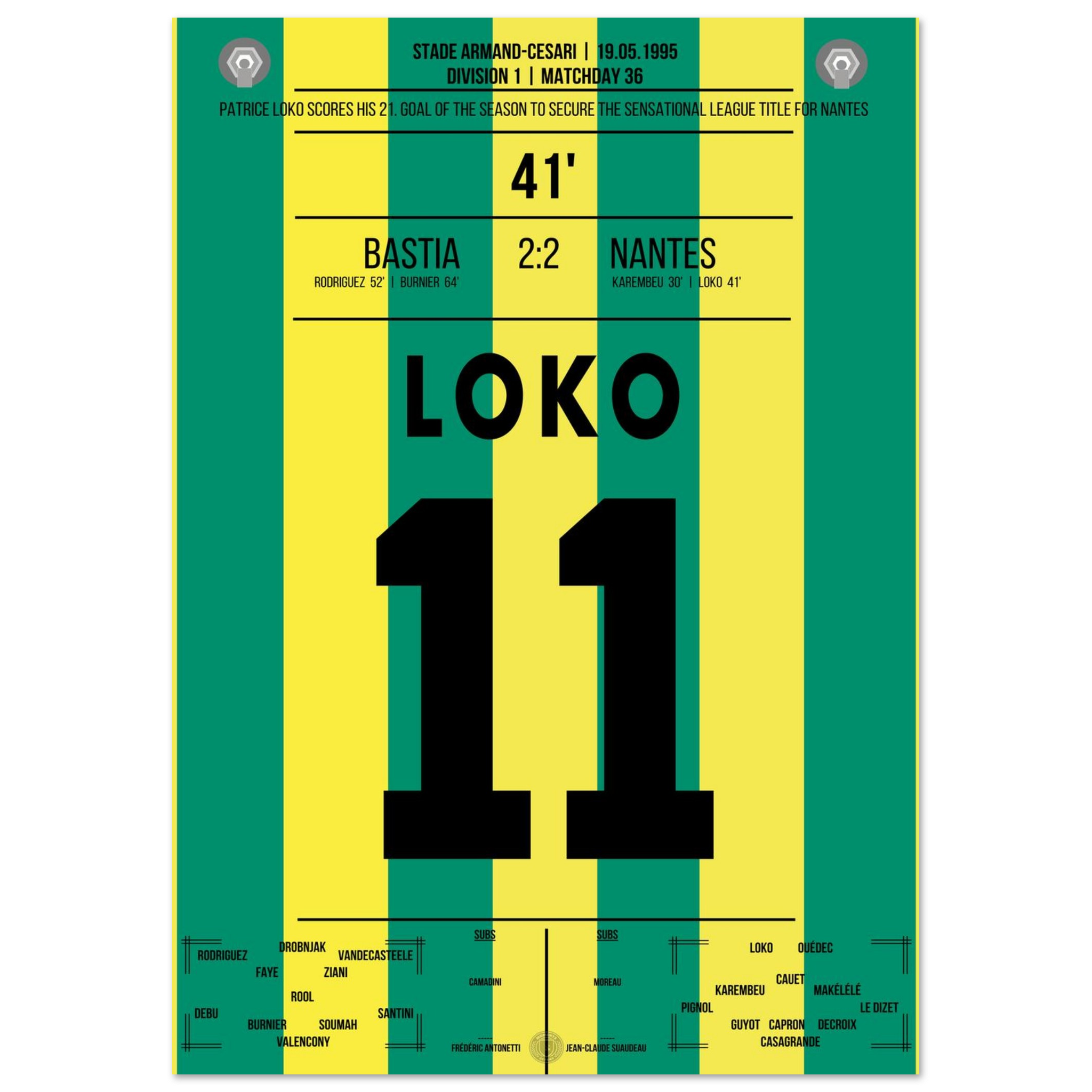 Patrice Loko trifft und Nantes feiert die Meisterschaft 1995 in Bastia