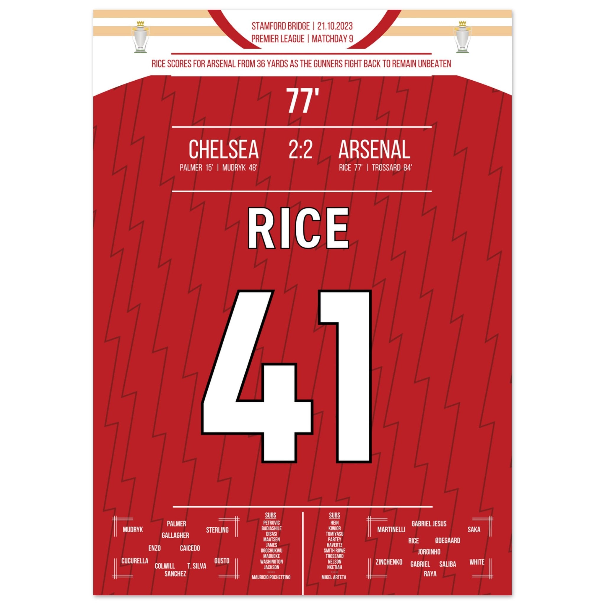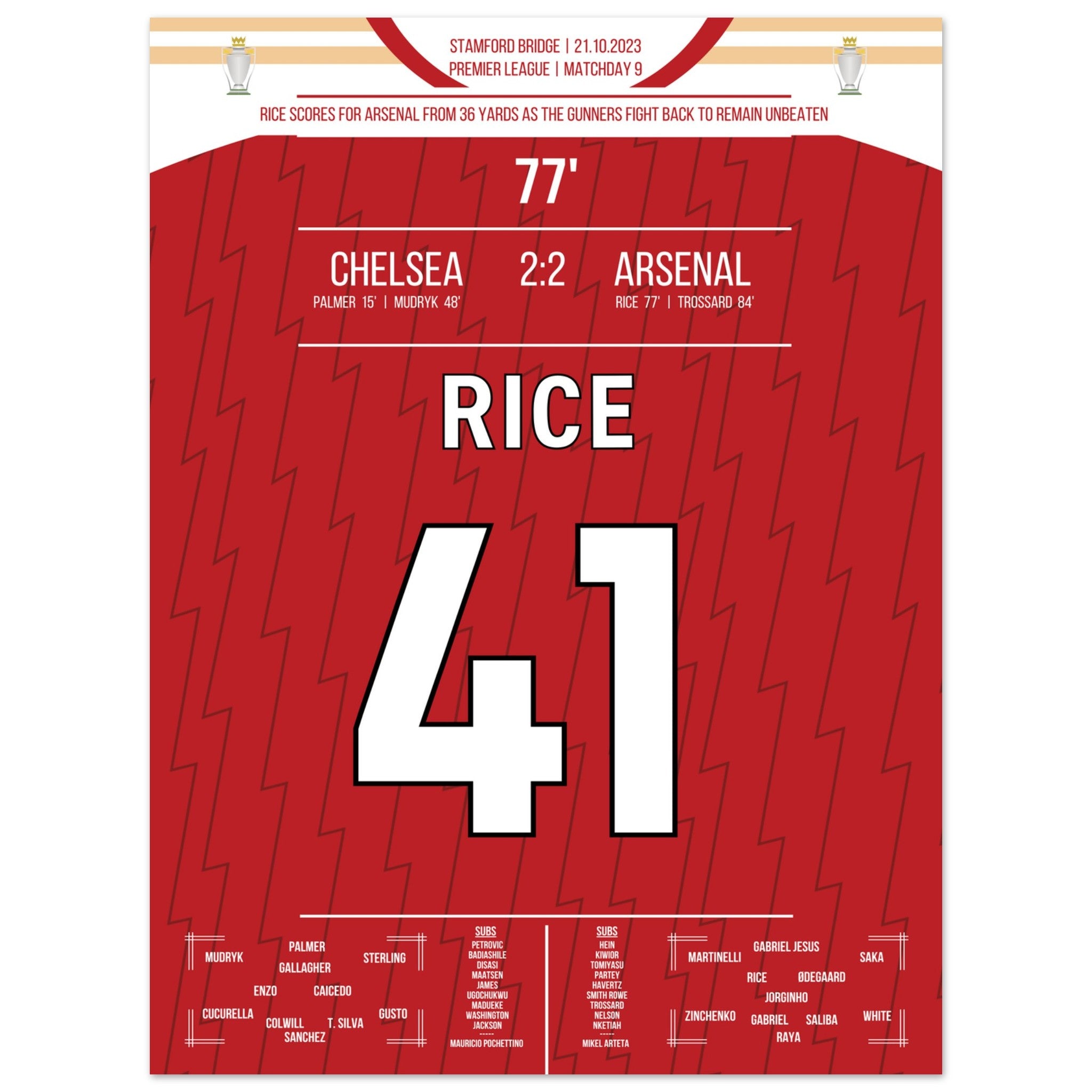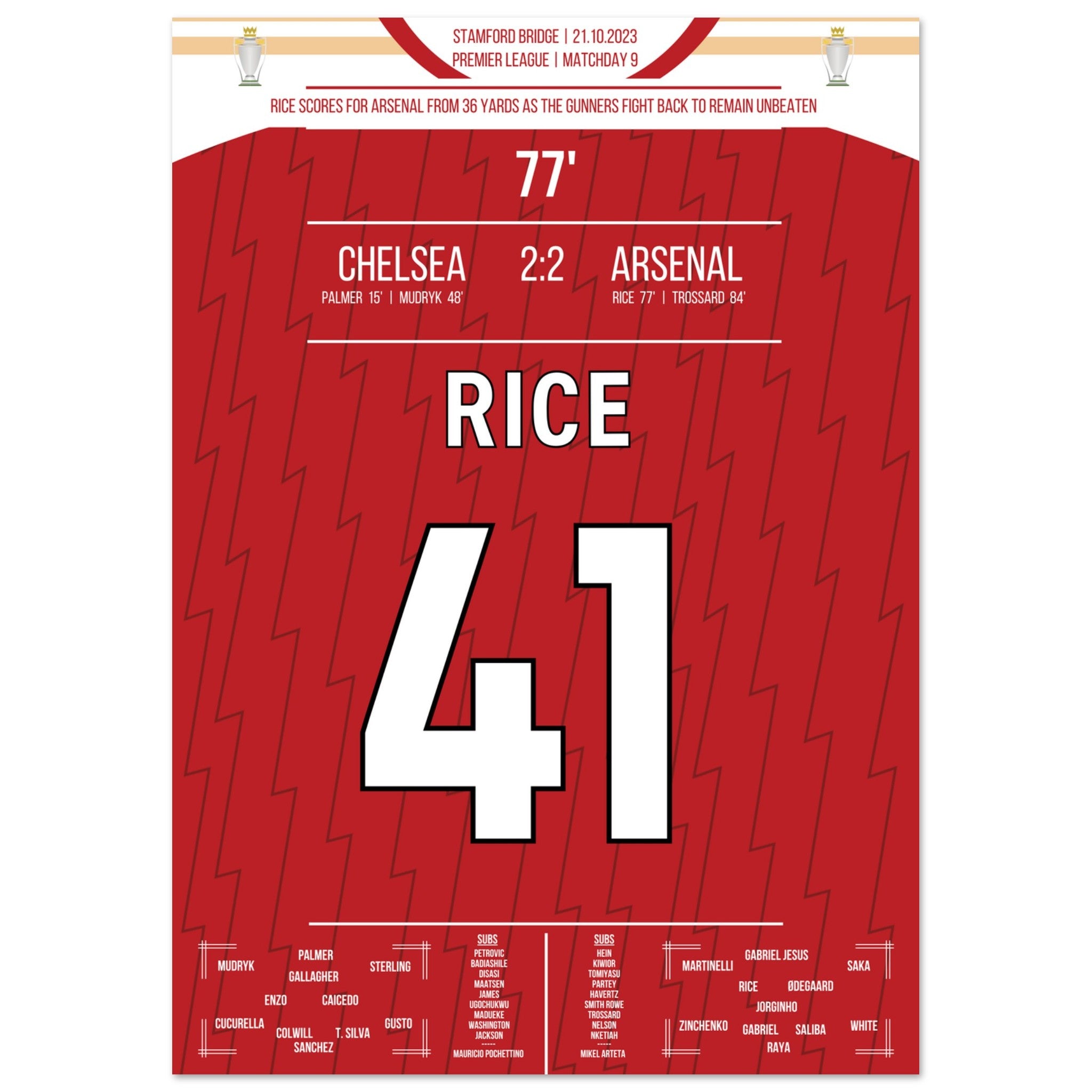 Rice avec un but à distance lors du derby contre Chelsea