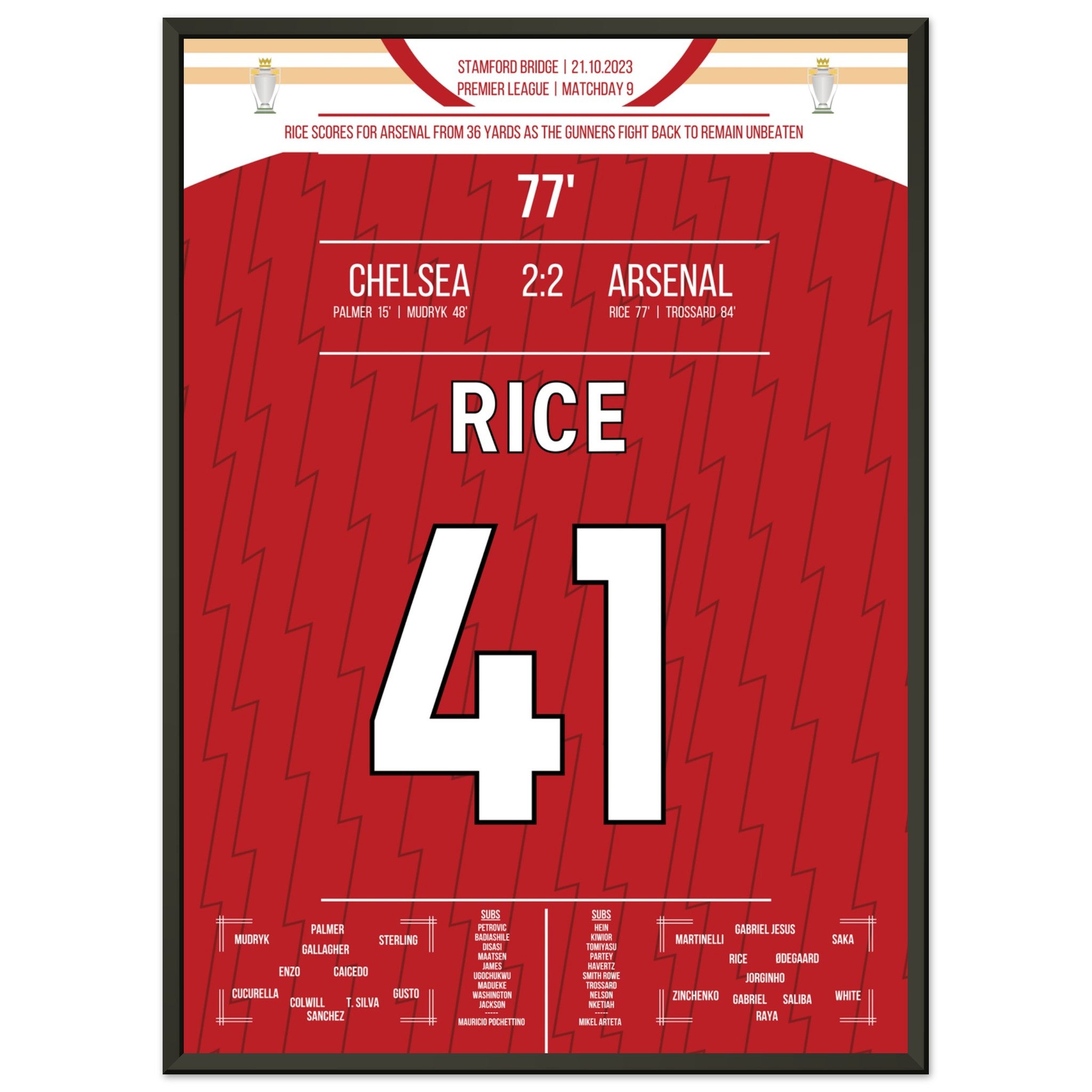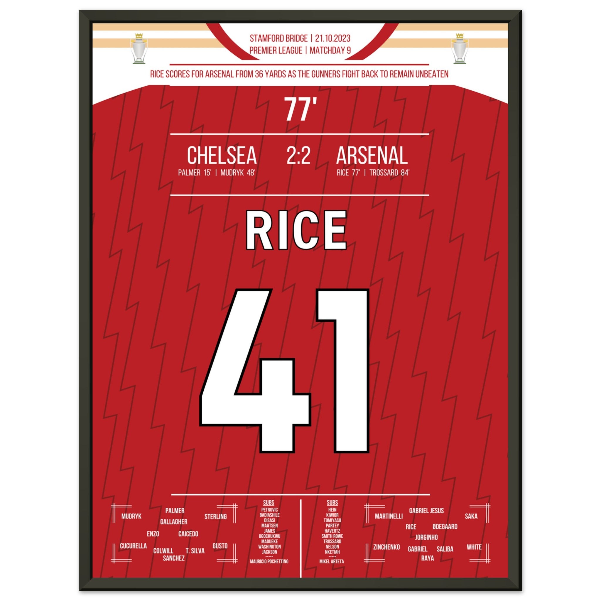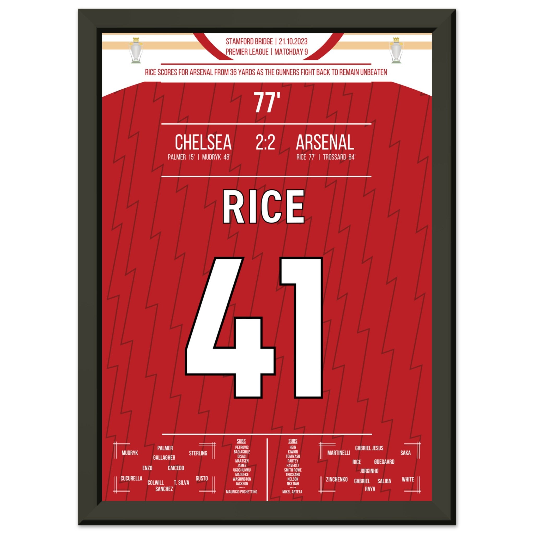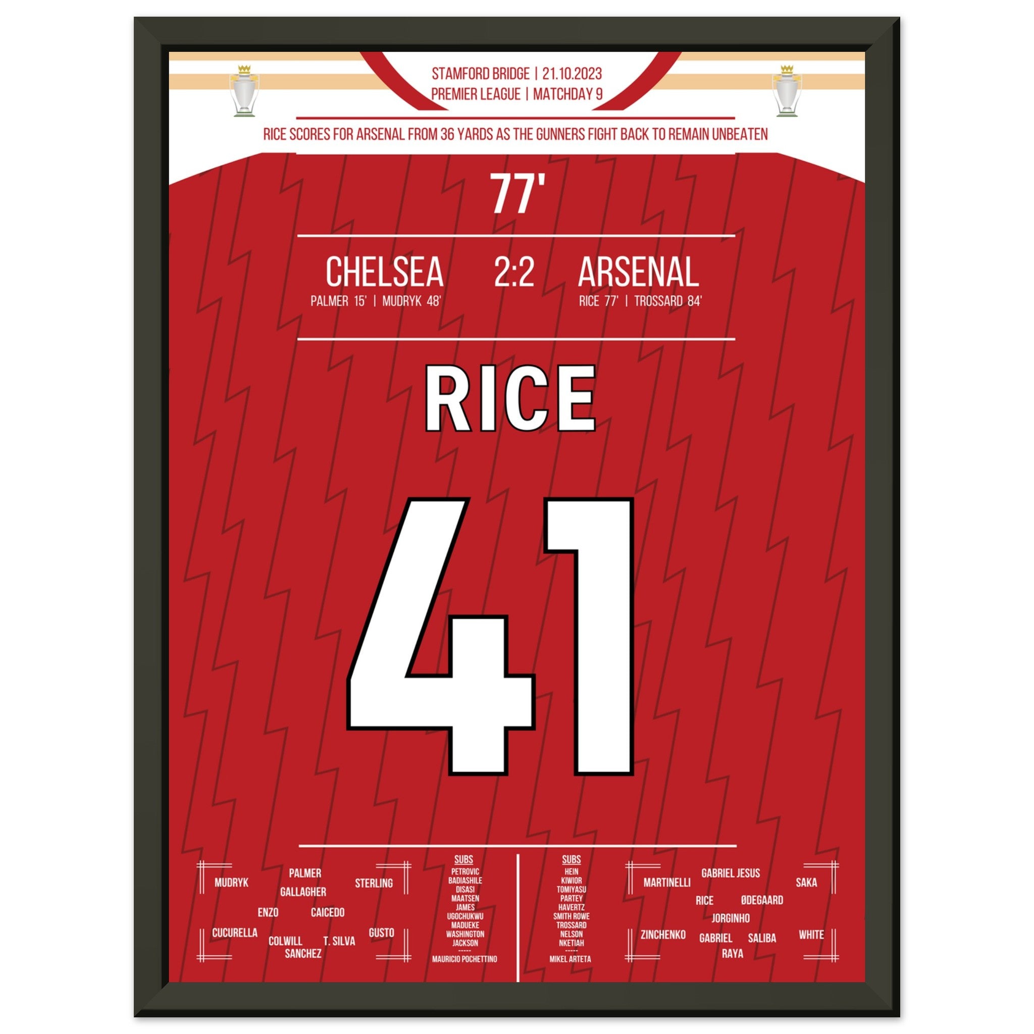 Vous pouvez être assuré que chaque affiche et chaque cadre sont expédiés dans un emballage solide pour garantir qu'ils arrivent en parfait état. C'est le complément parfait à la collection de tout fan de football ou le cadeau parfait pour le fan de football inconditionnel de votre cercle d'amis ou de votre famille.